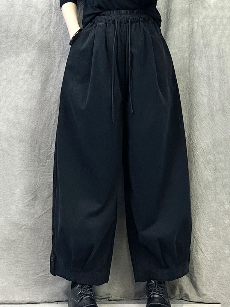 Plus Size Women Autumn Pure Color Cotton Harem Pants