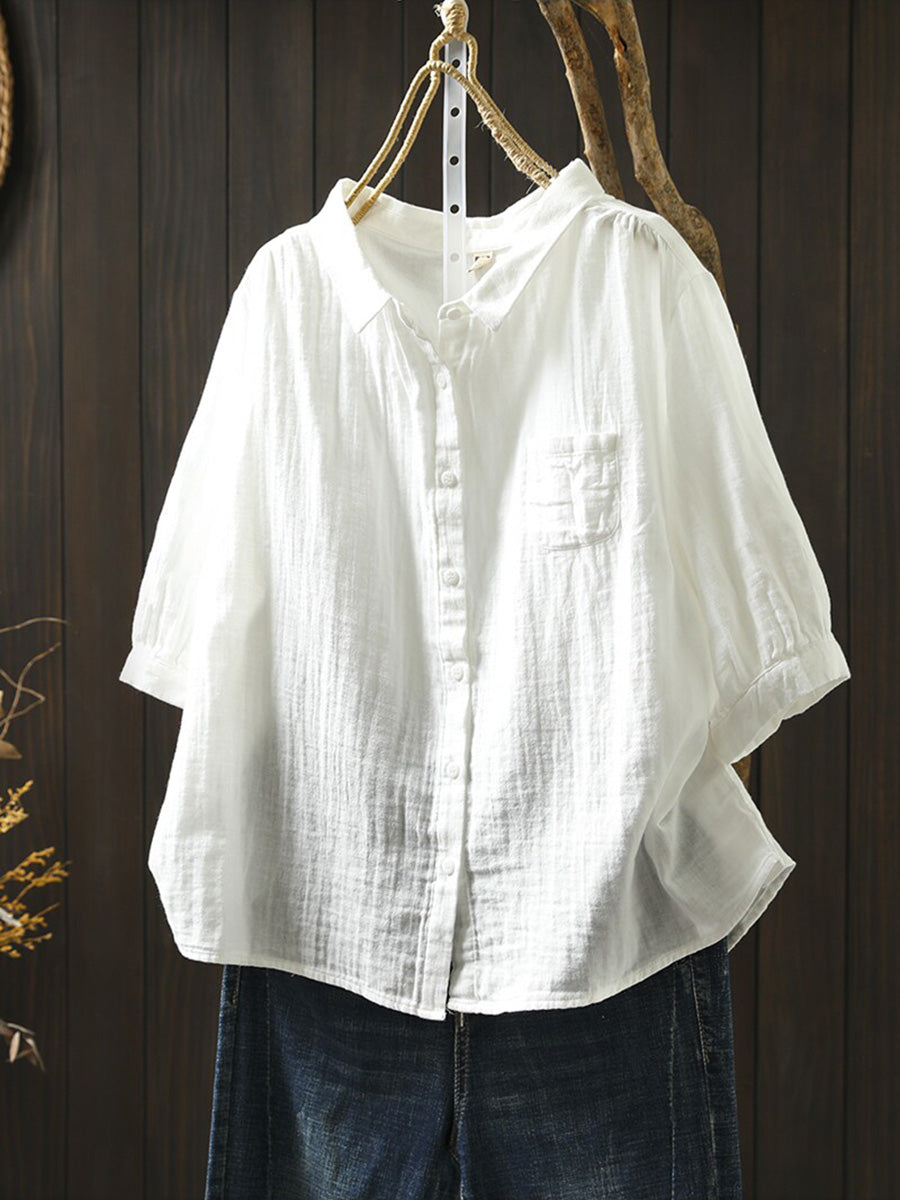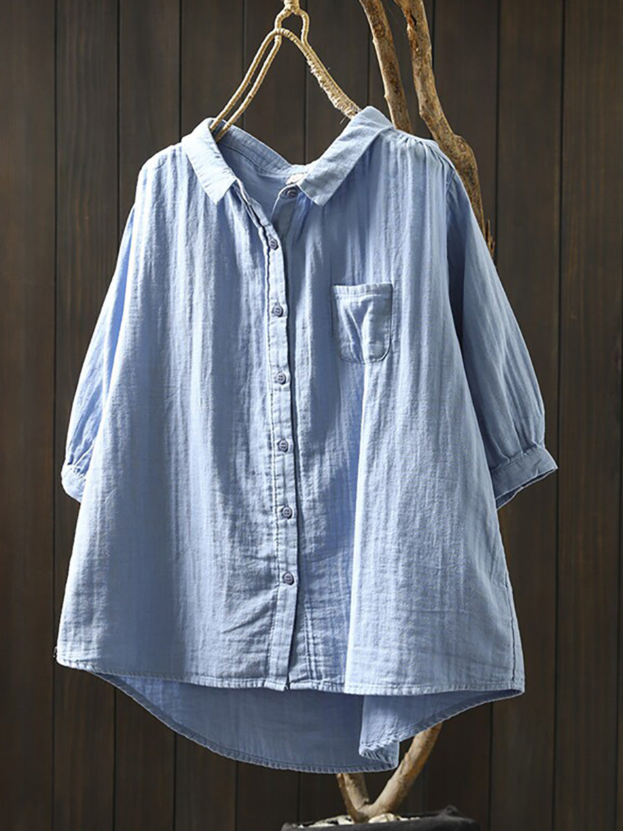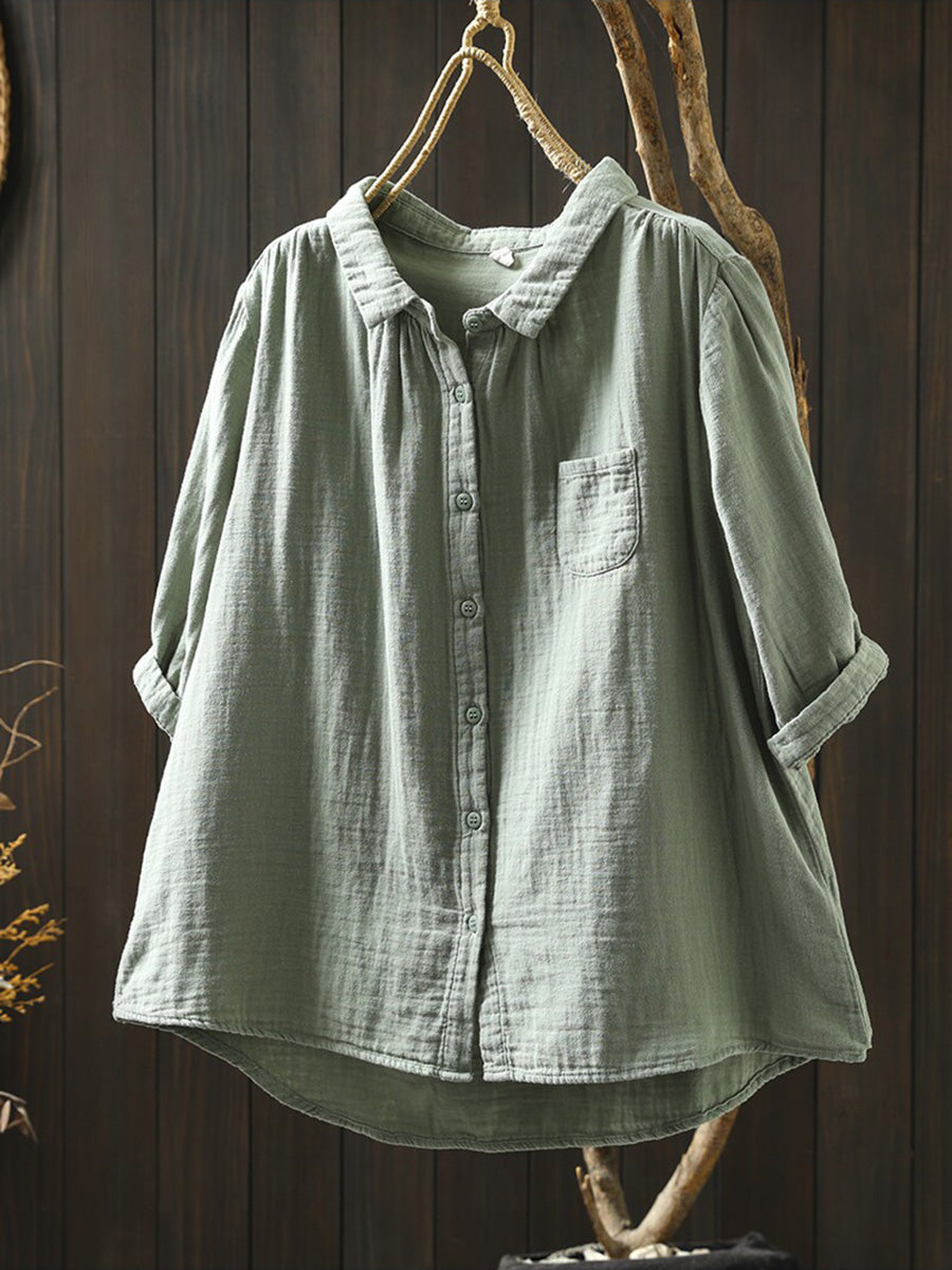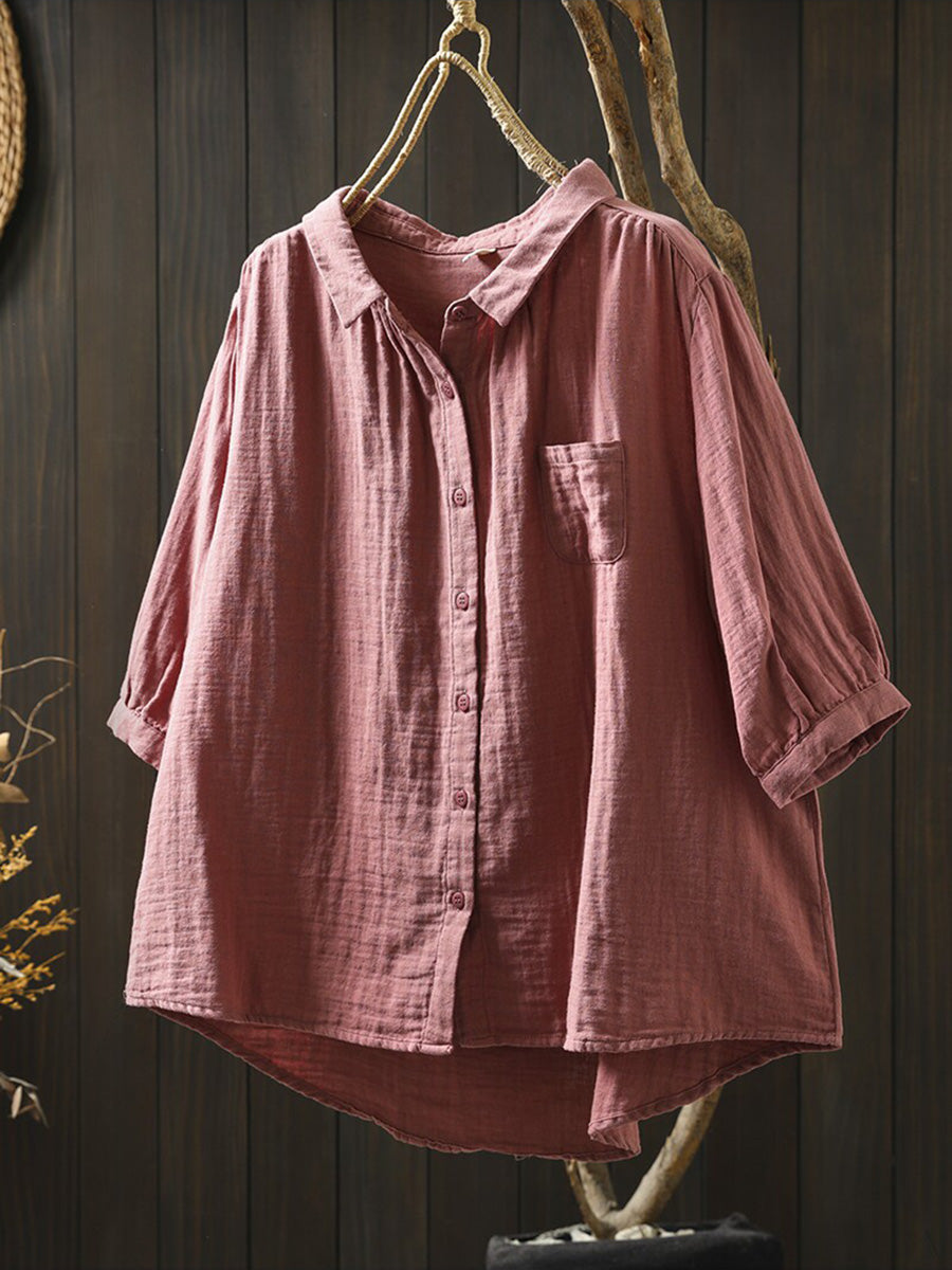 Women Summer Casual Pure Color 100%Cotton Shirt