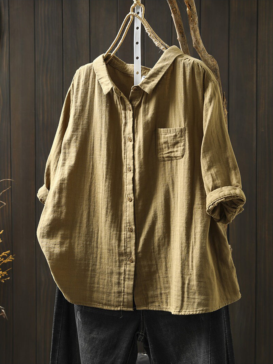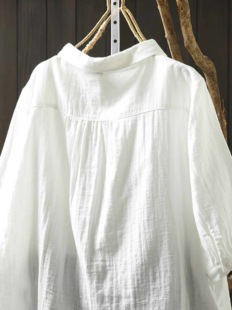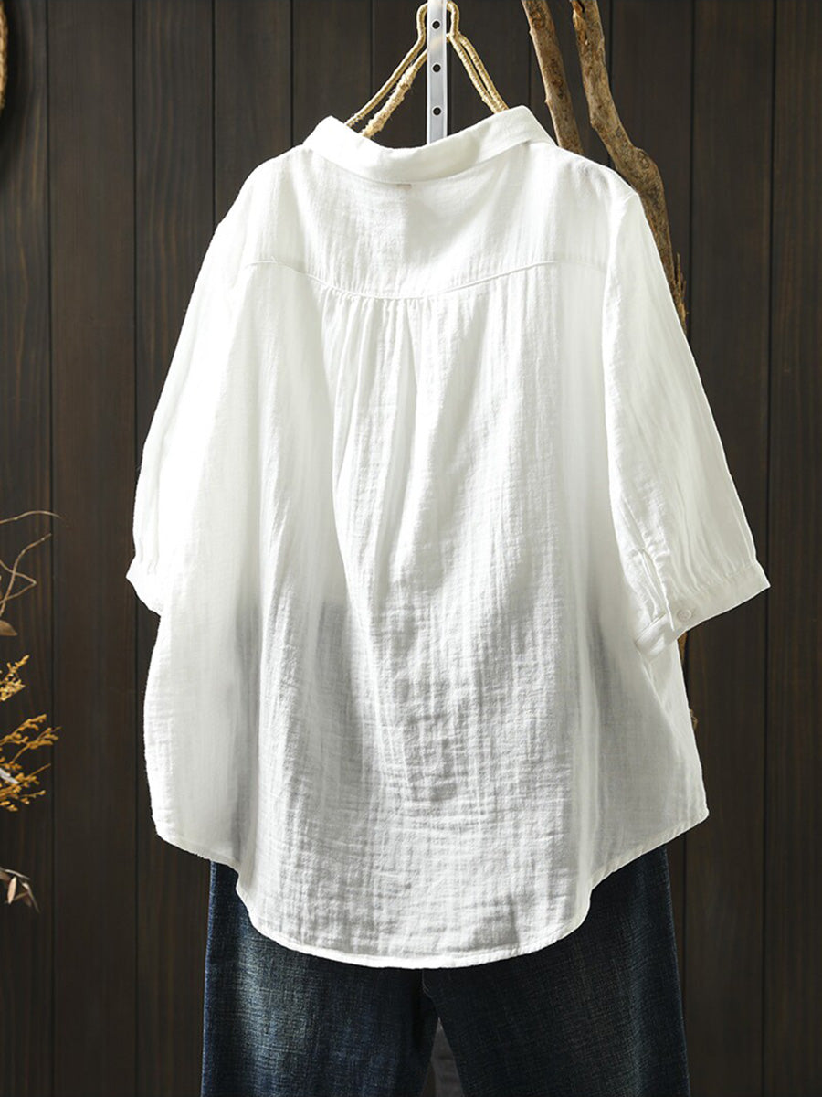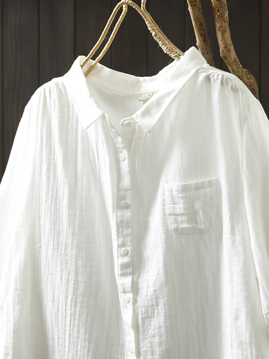 Women Summer Casual Pure Color 100%Cotton Shirt