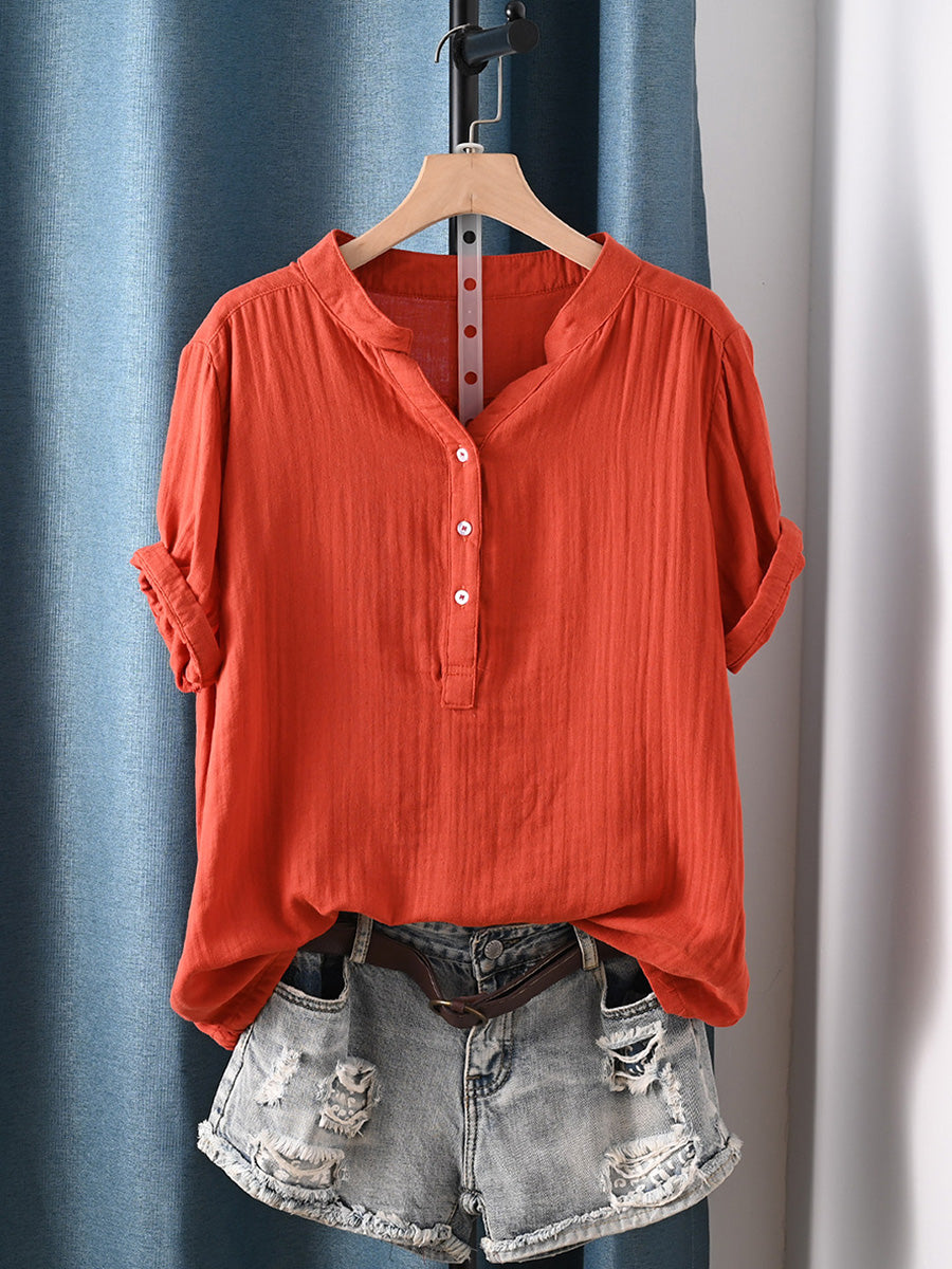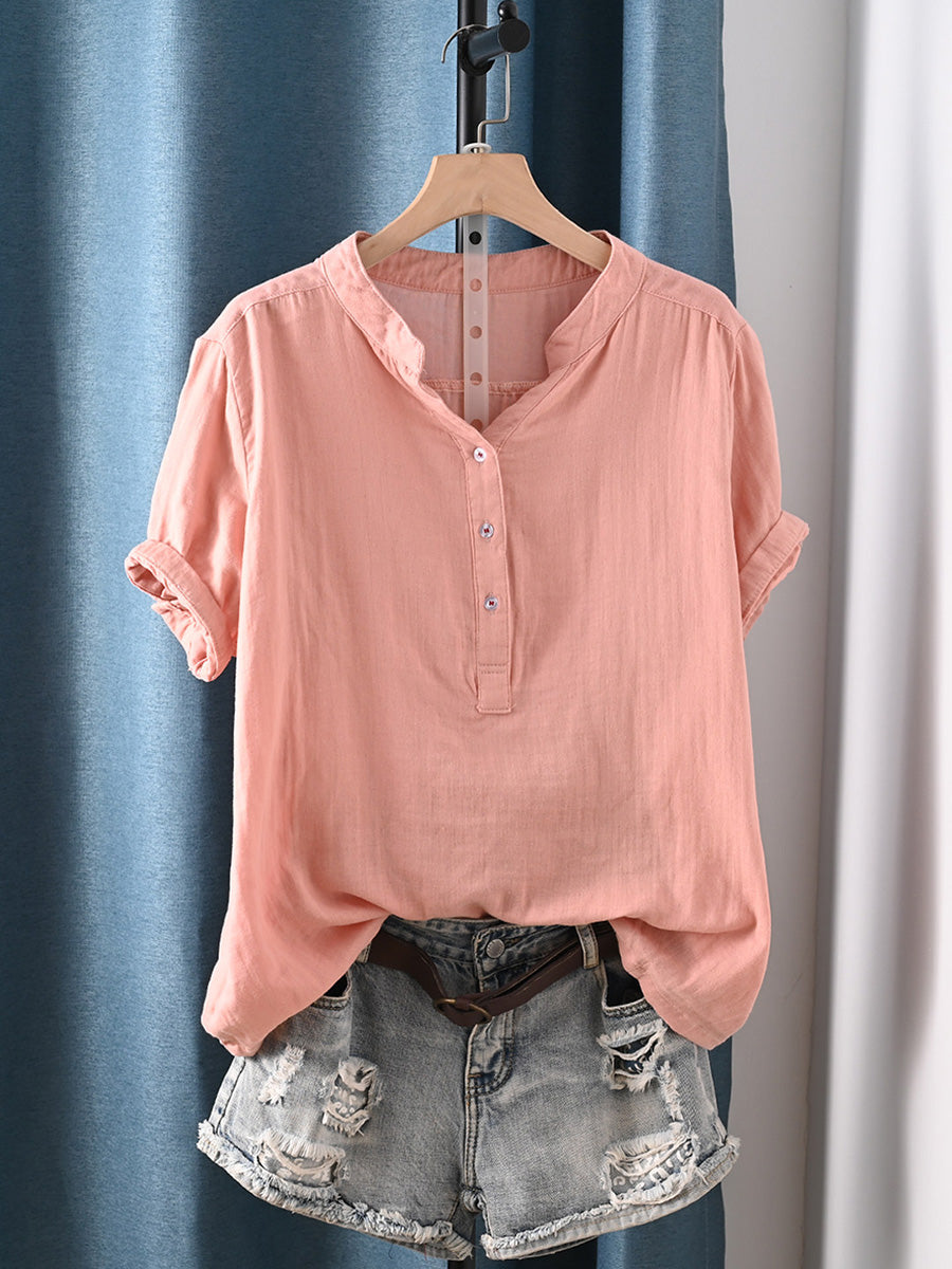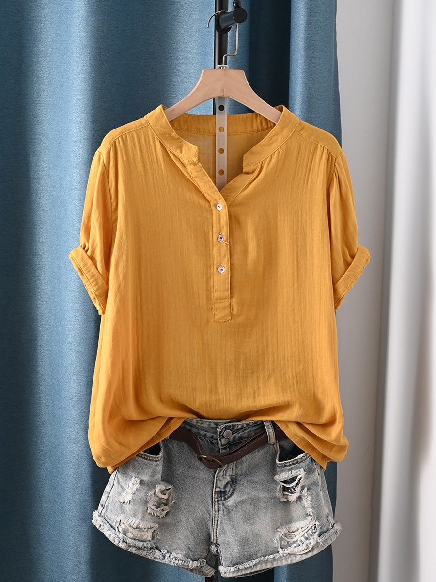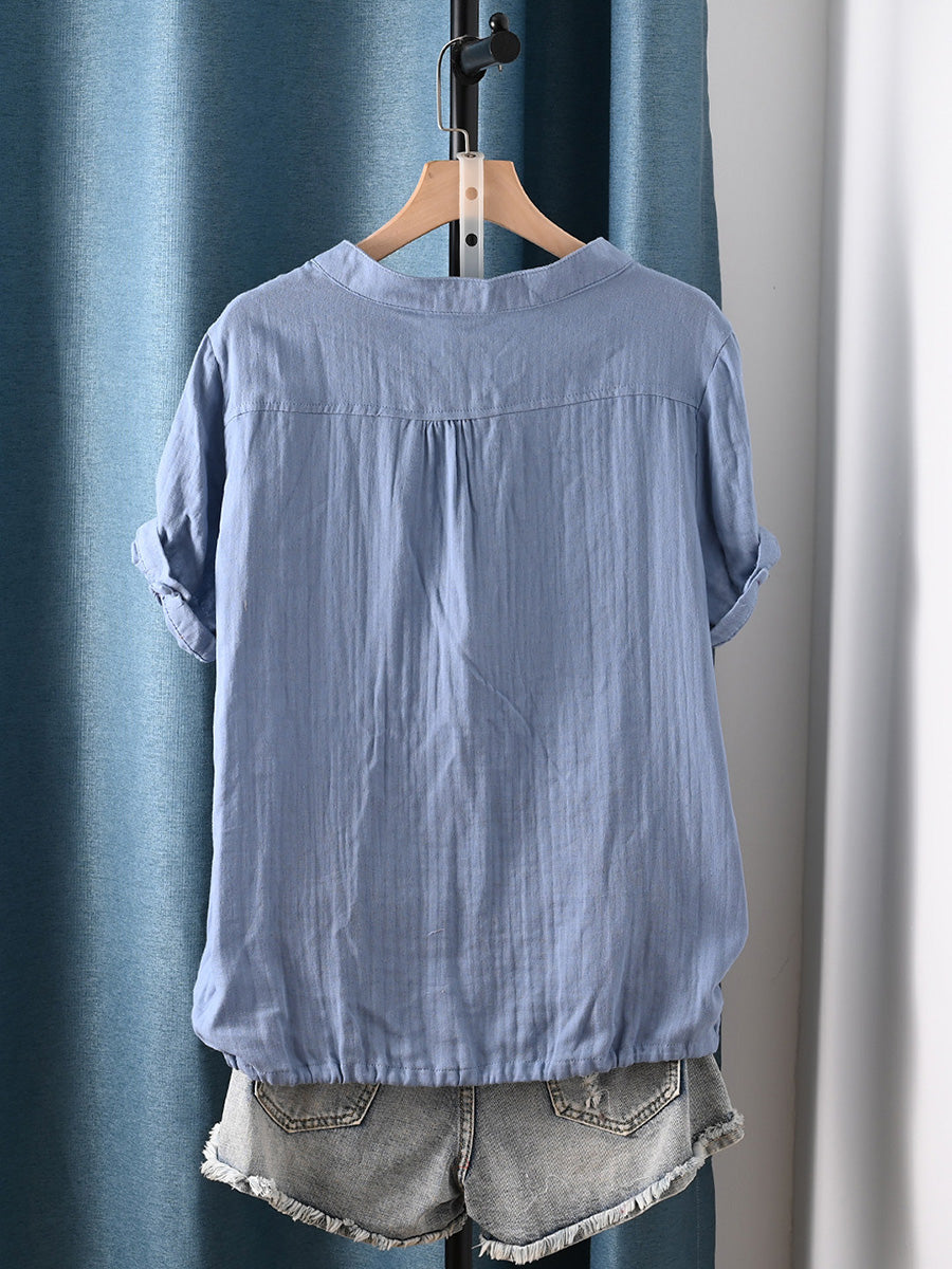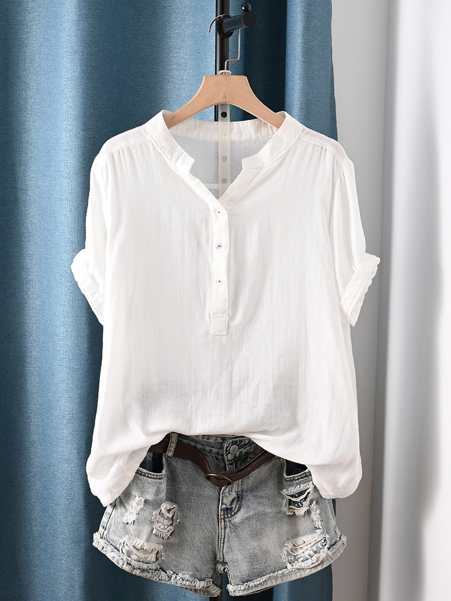 Women Summer Pure Color 100%Cotton V-Neck Shirt