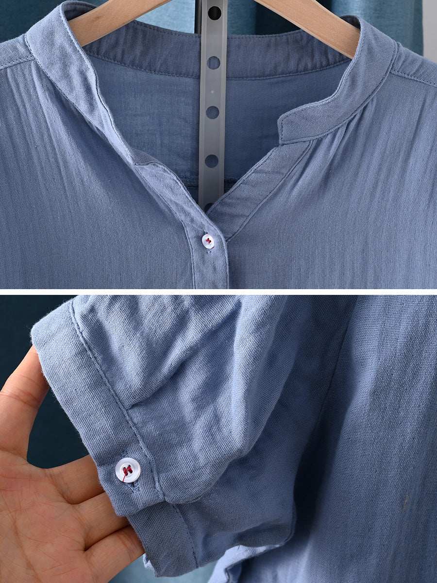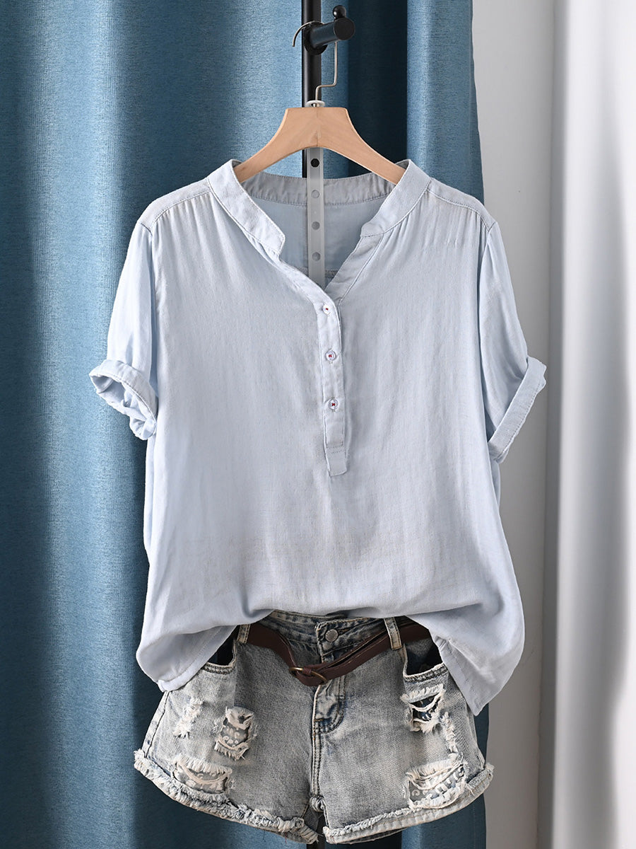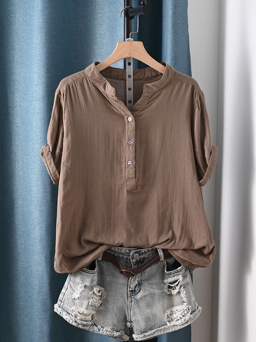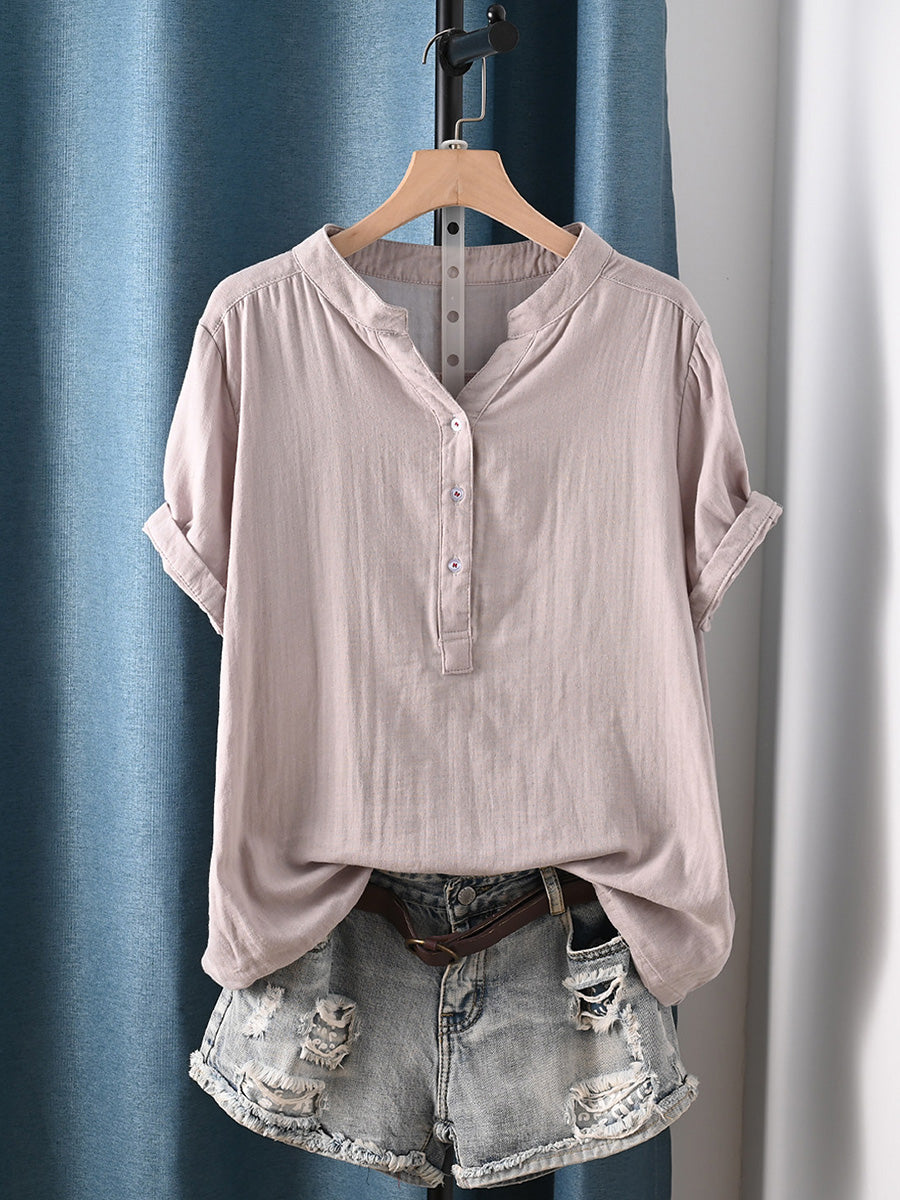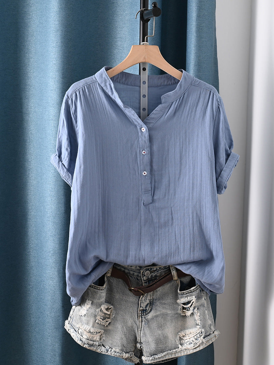 Women Summer Pure Color 100%Cotton V-Neck Shirt