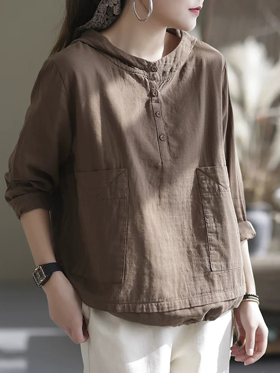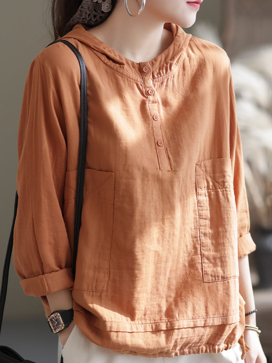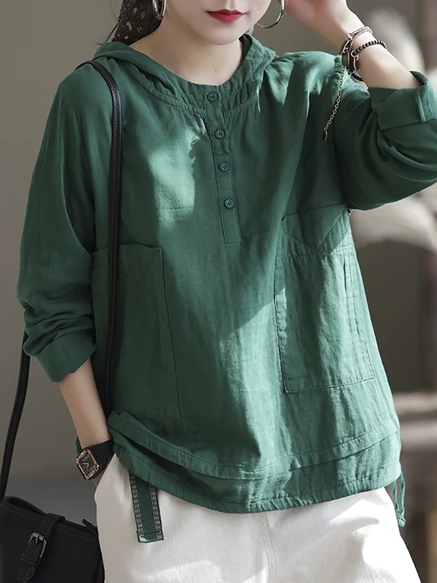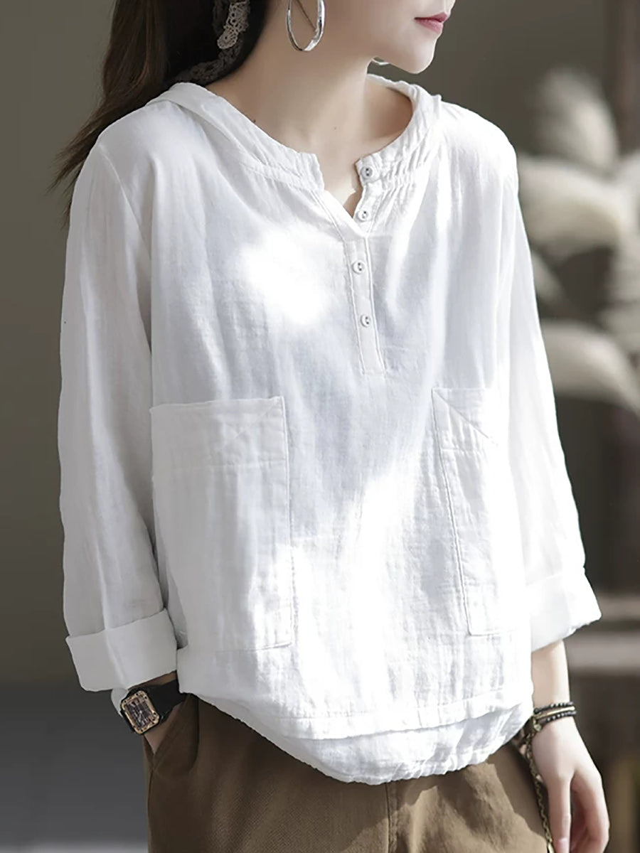 Women Summer Pure Color V-Neck Hoodie