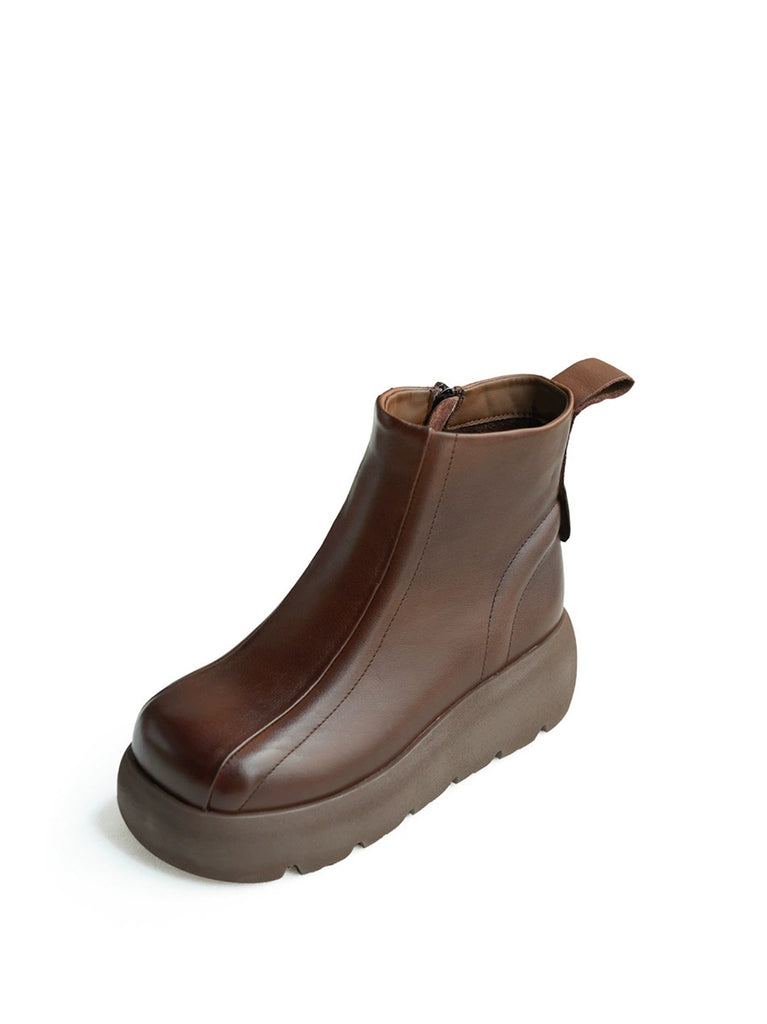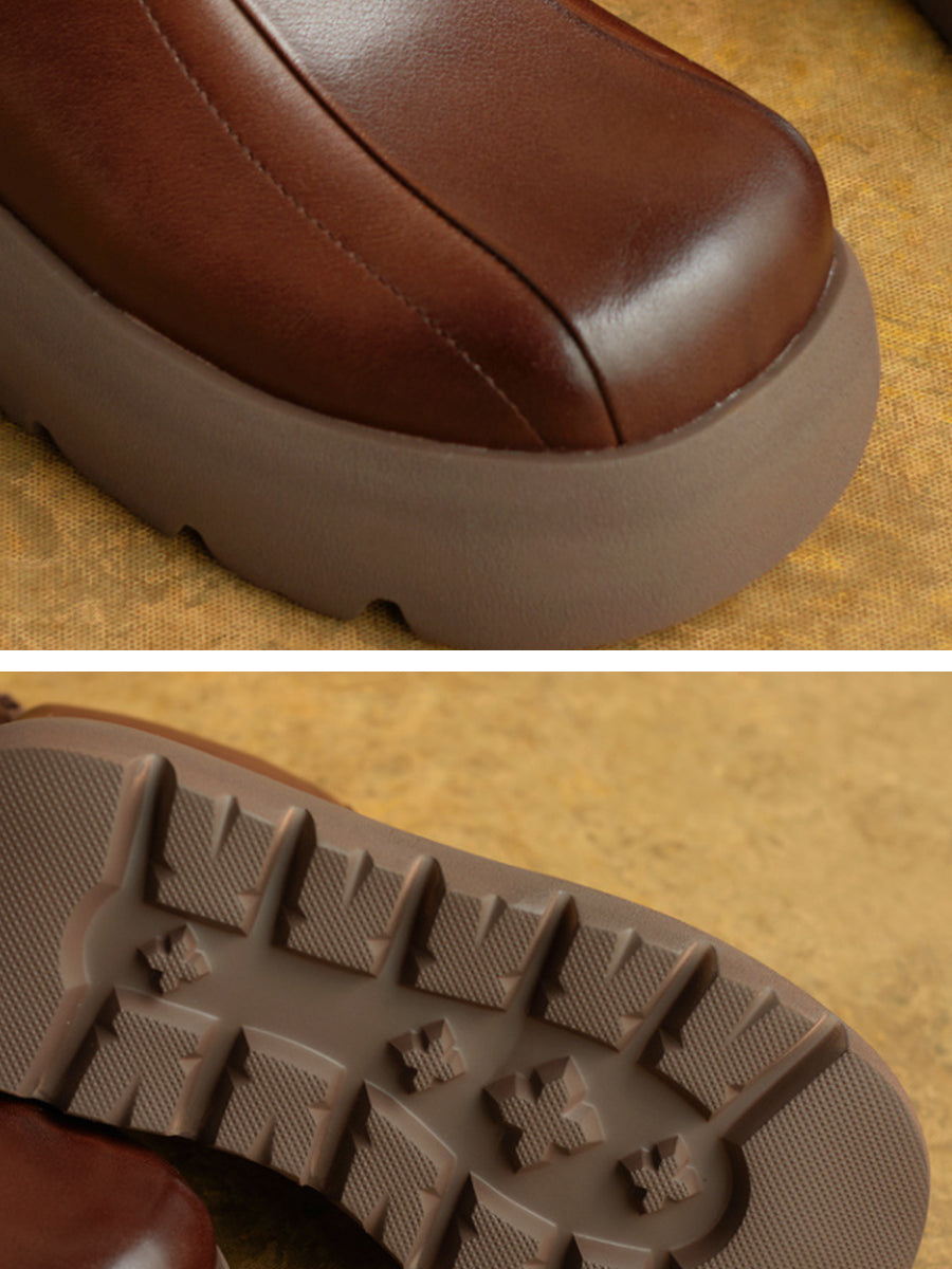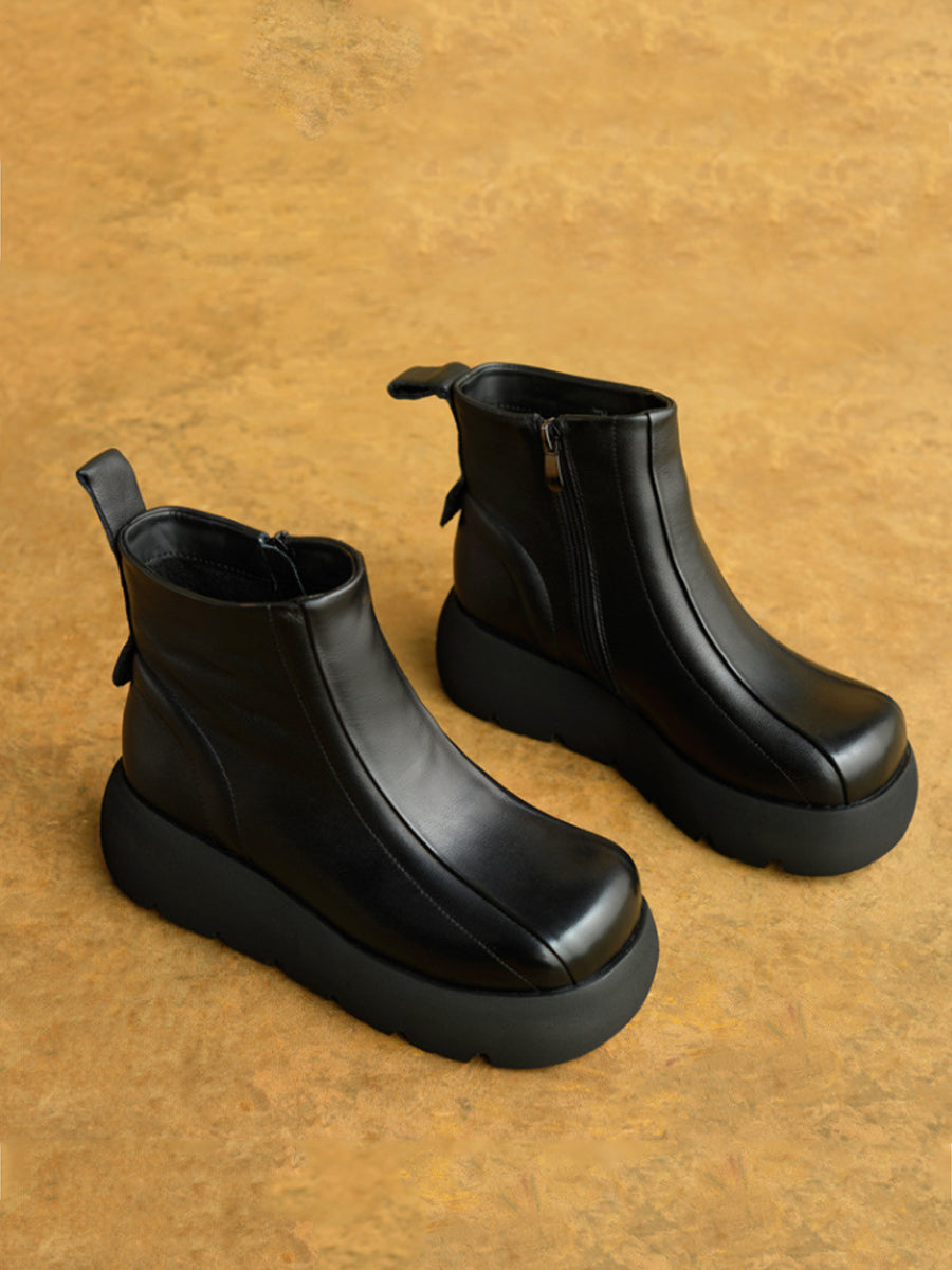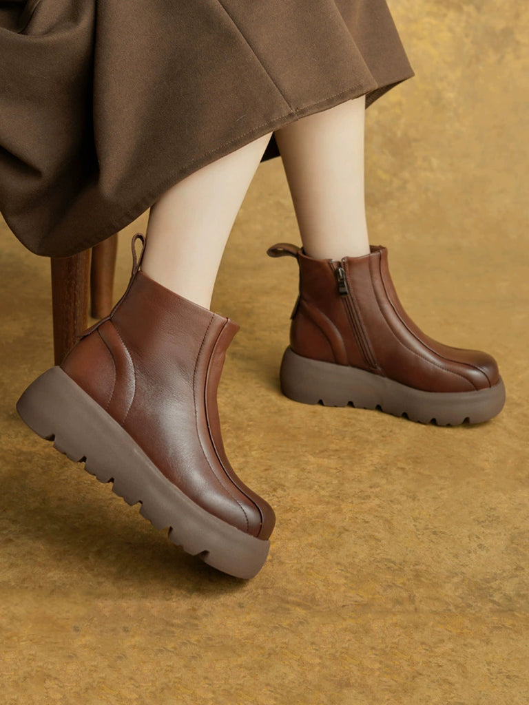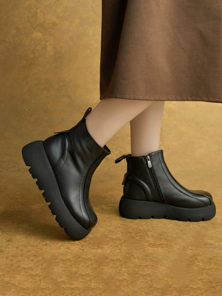Women Winter Genuine Leather Zipper Platform Boots