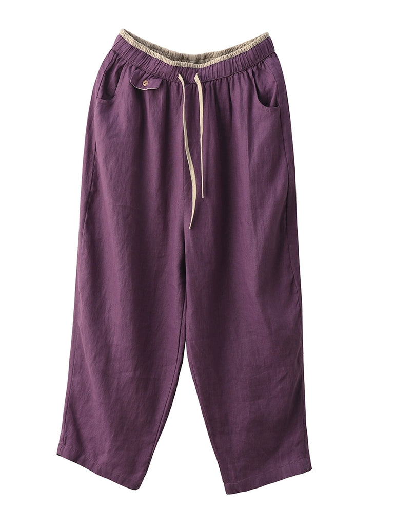 Women Summer Retro Pure Color 100%Linen Harem Pants