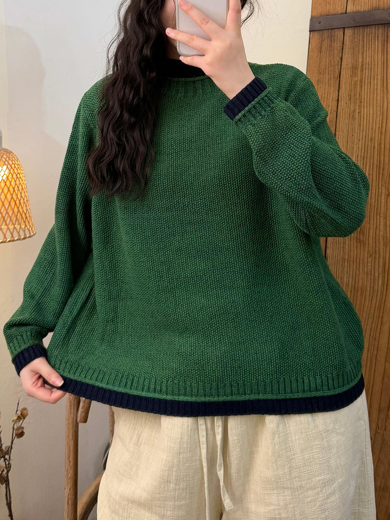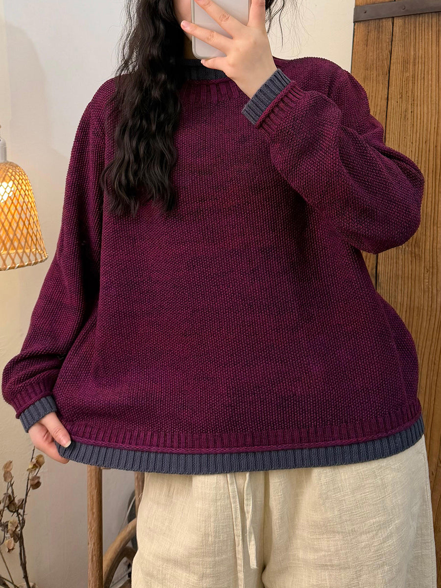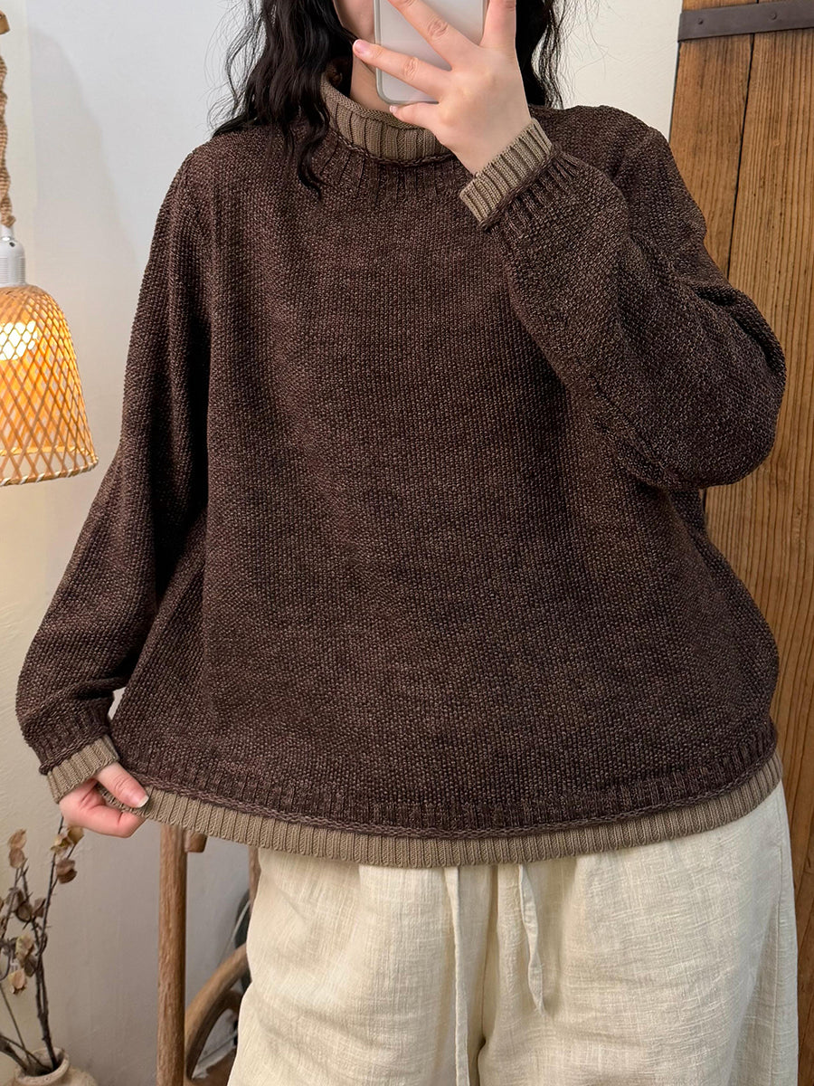 Women Autumn Artsy Colorblock Turtleneck Knitted Sweater
