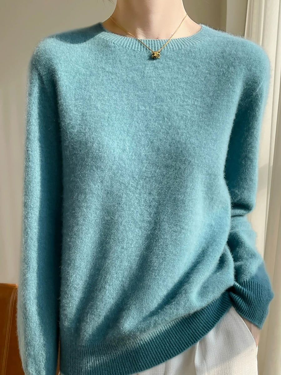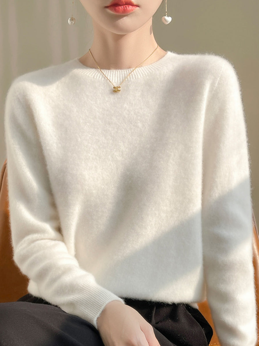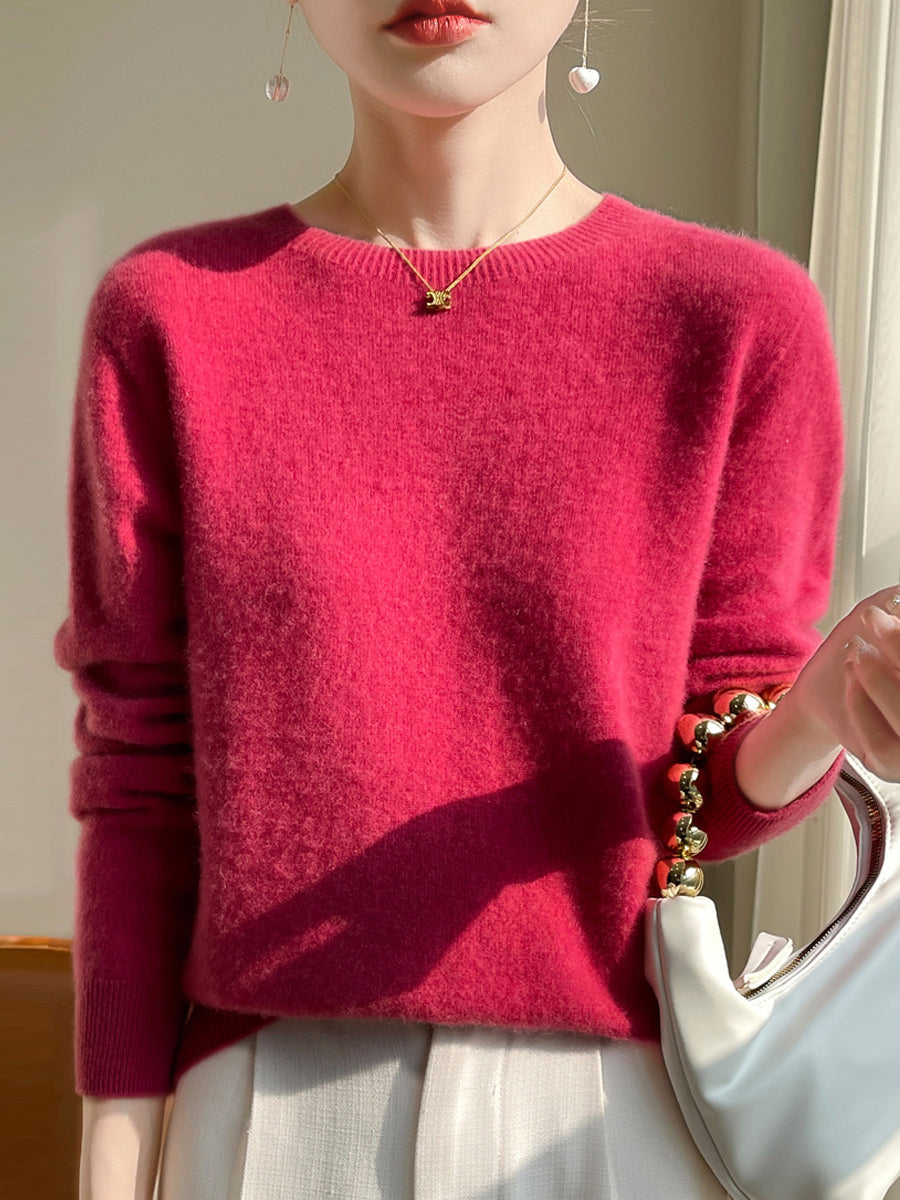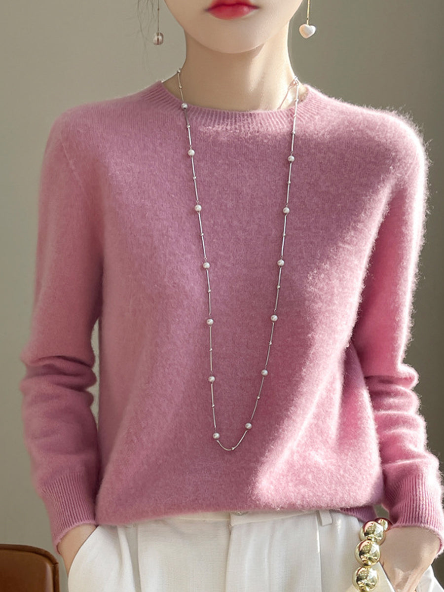 Women Autumn Casual Pure Color O-Neck Sweater