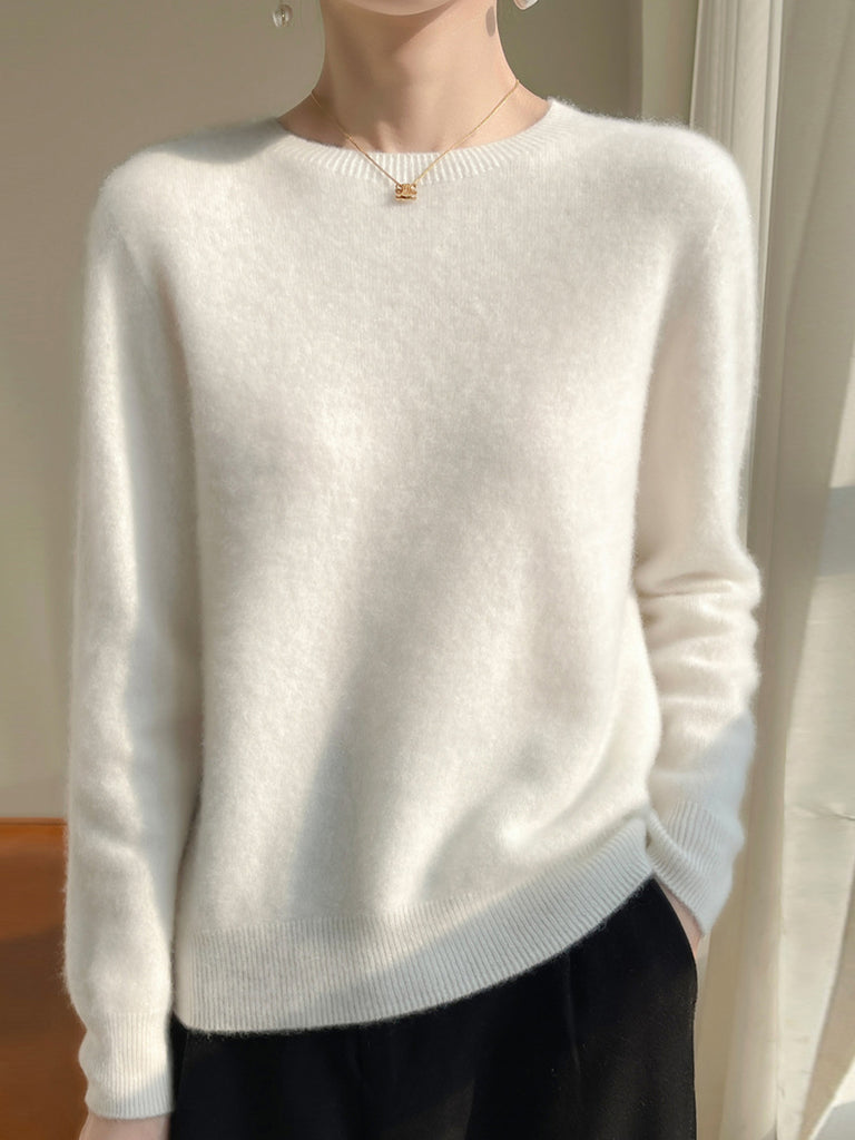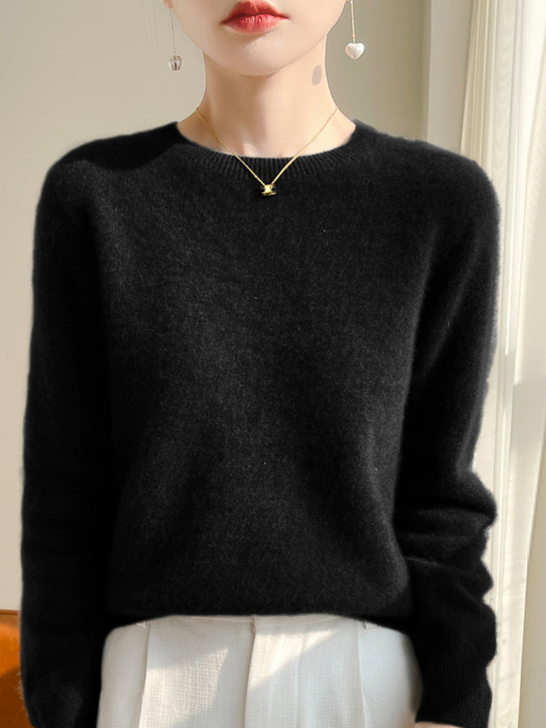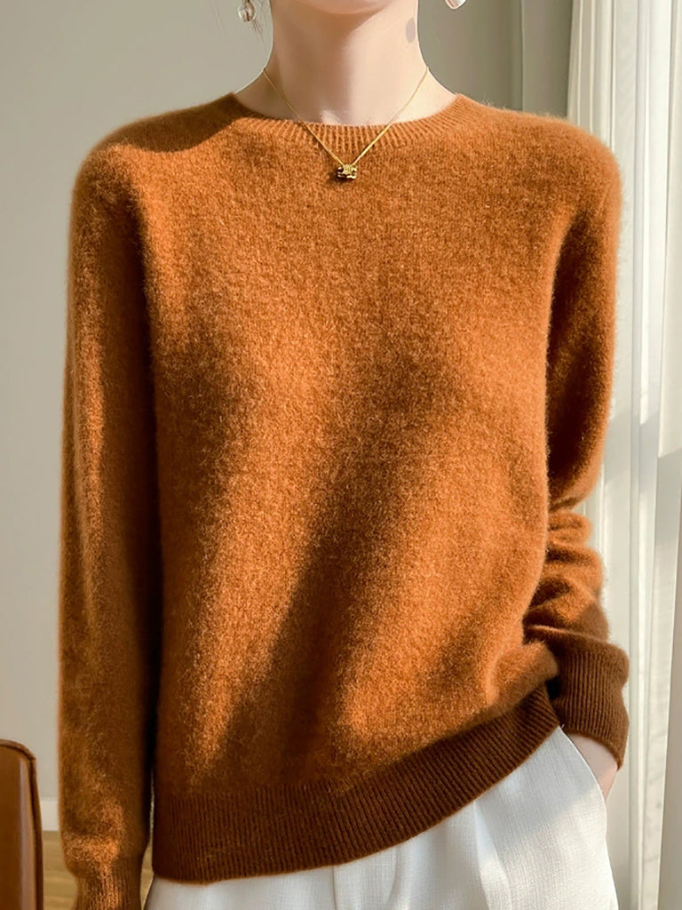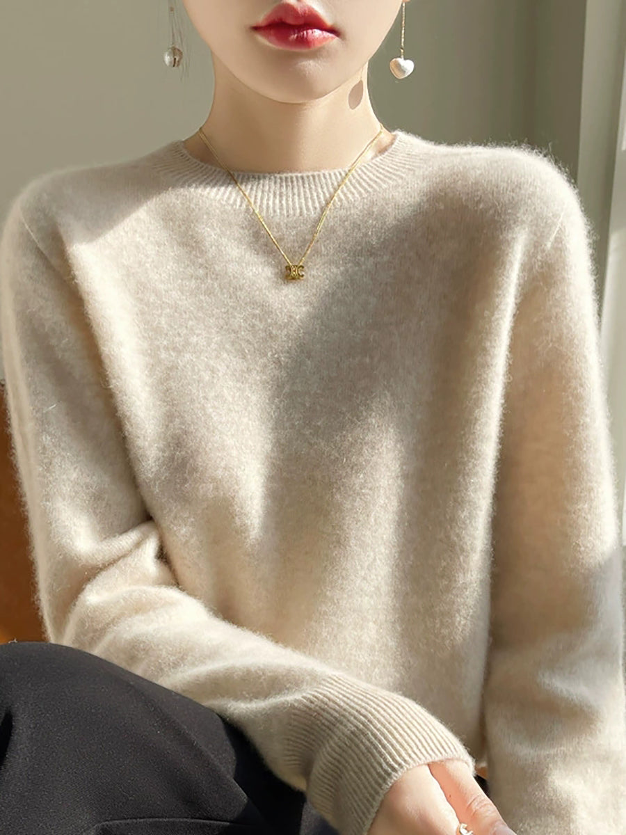 Women Autumn Casual Pure Color O-Neck Sweater