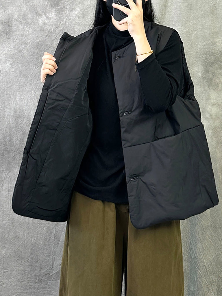 Crafted from quality cotton, this versatile padded vest delivers essential warmth for transitional seasons. The minimalist solid-color design and relaxed O-neck silhouette make it an effortless layering piece that complements any casual wardrobe. Ideal for autumn and winter wear, it combines practical insulation with understated sophistication.