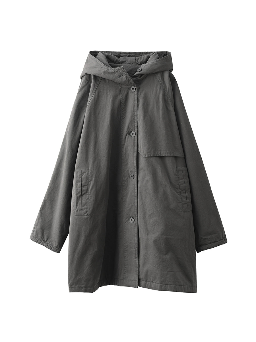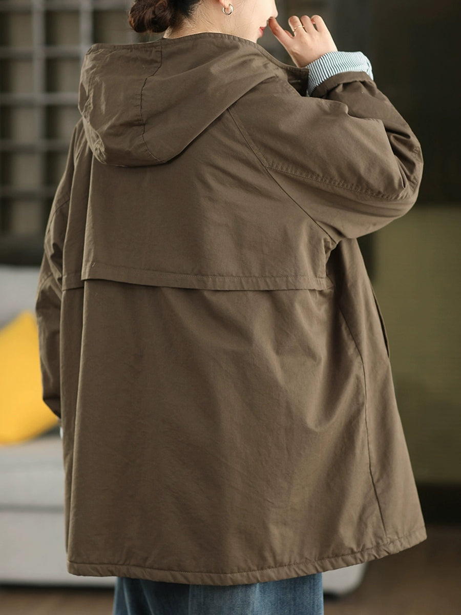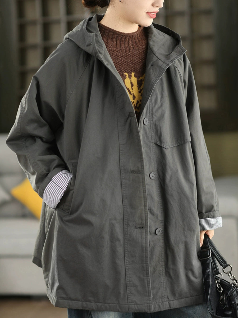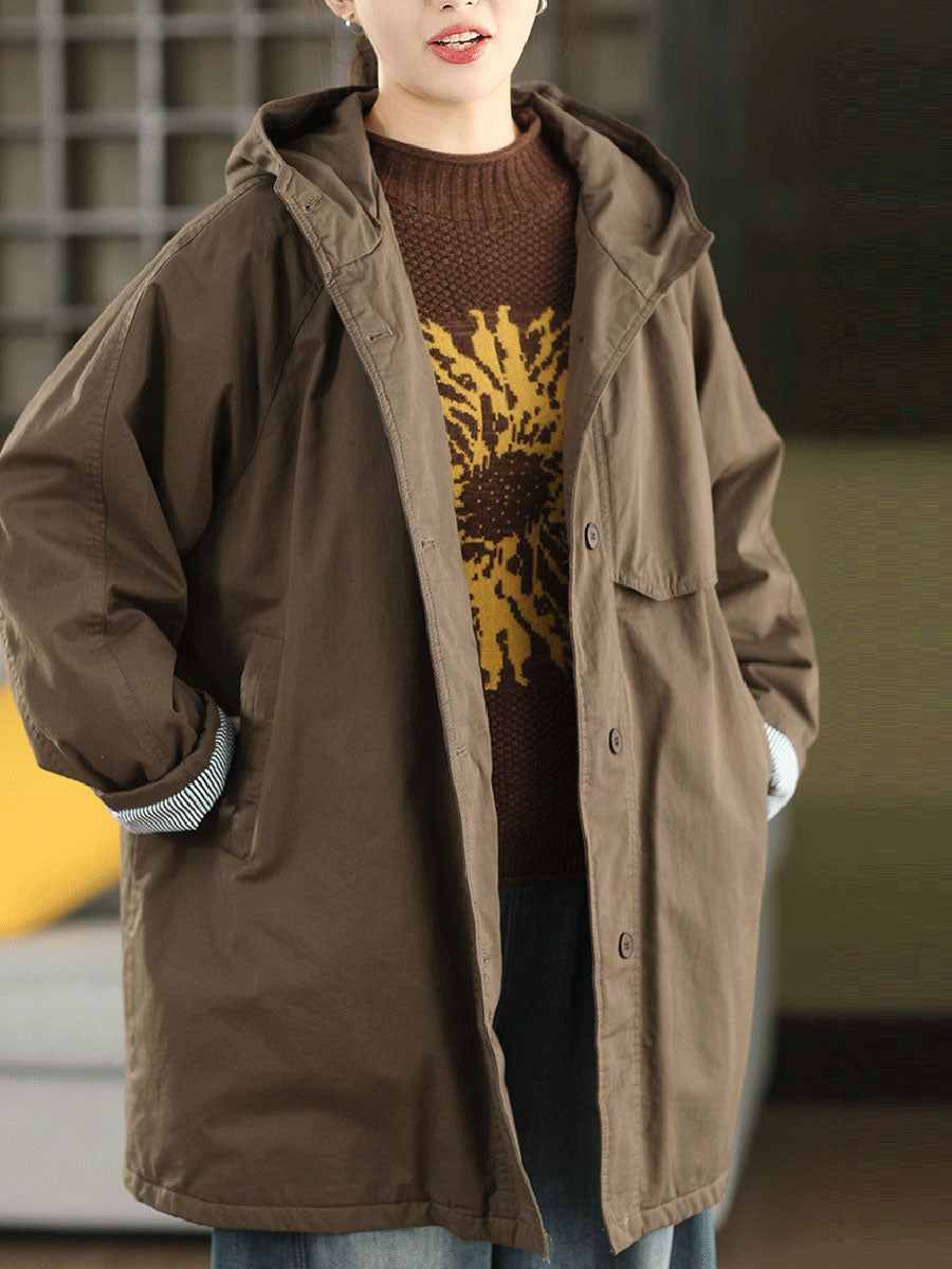 Women Winter Pure Color 100%Cotton Padded Hooded Coat