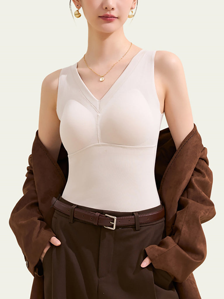 Women Winter Warm Pure Color With Bar Pads Base Vest