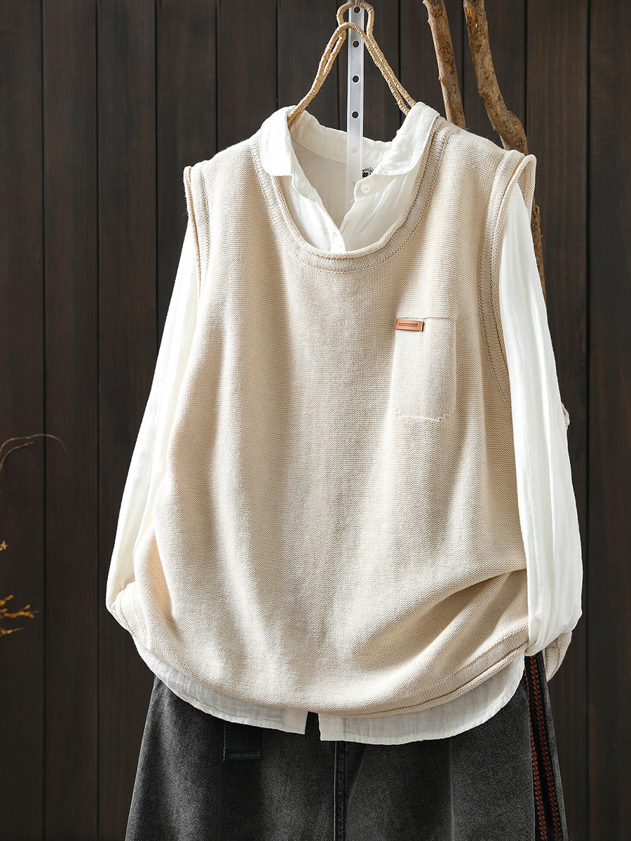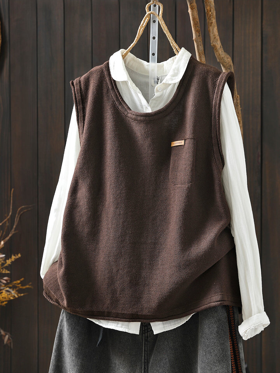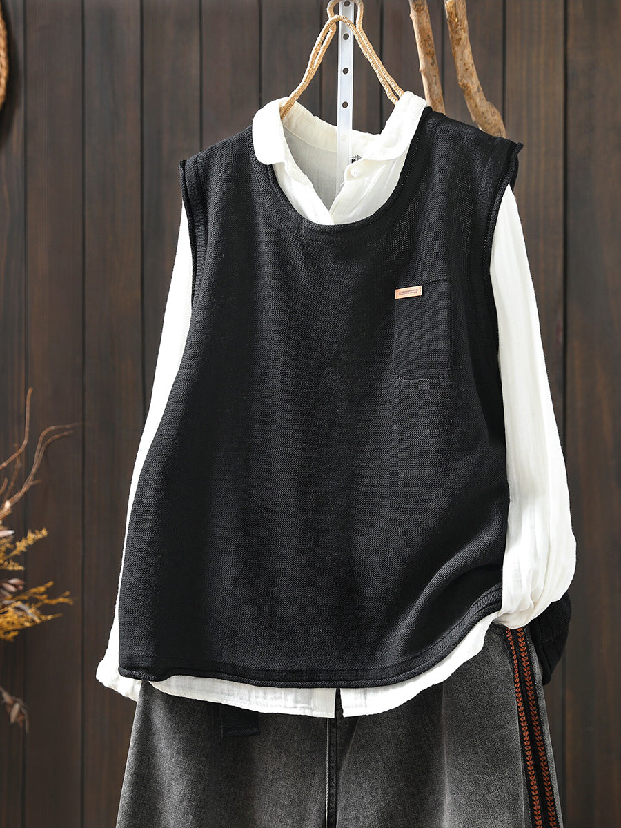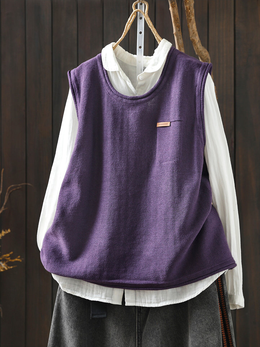 Women Spring Casual Pure Color Knitted O-Neck Vest