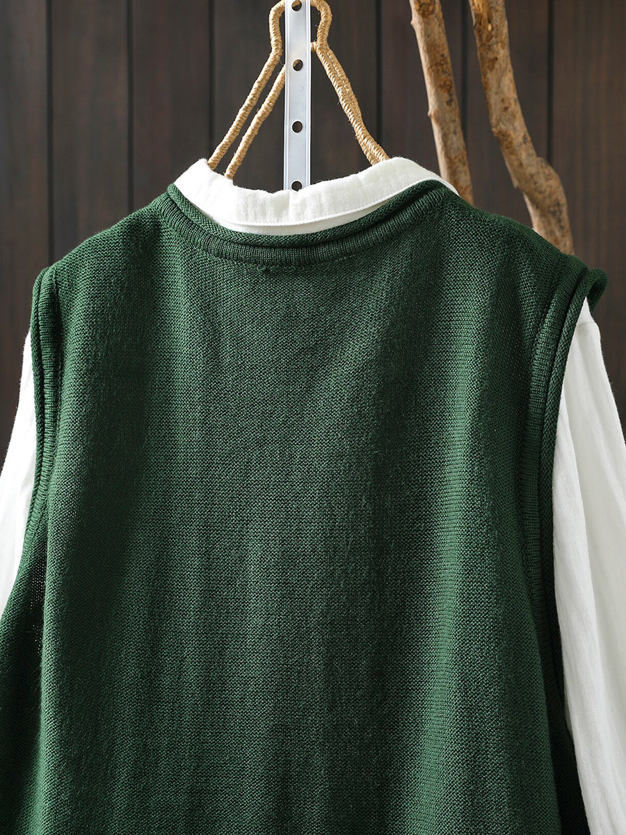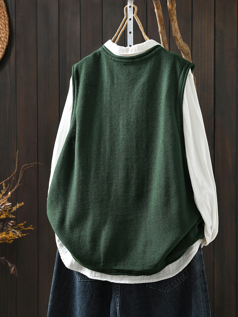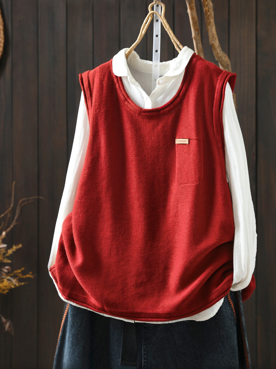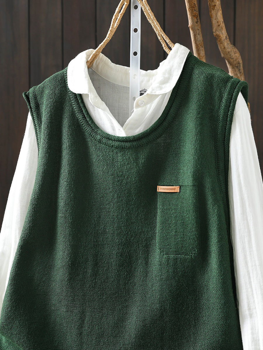 Women Spring Casual Pure Color Knitted O-Neck Vest