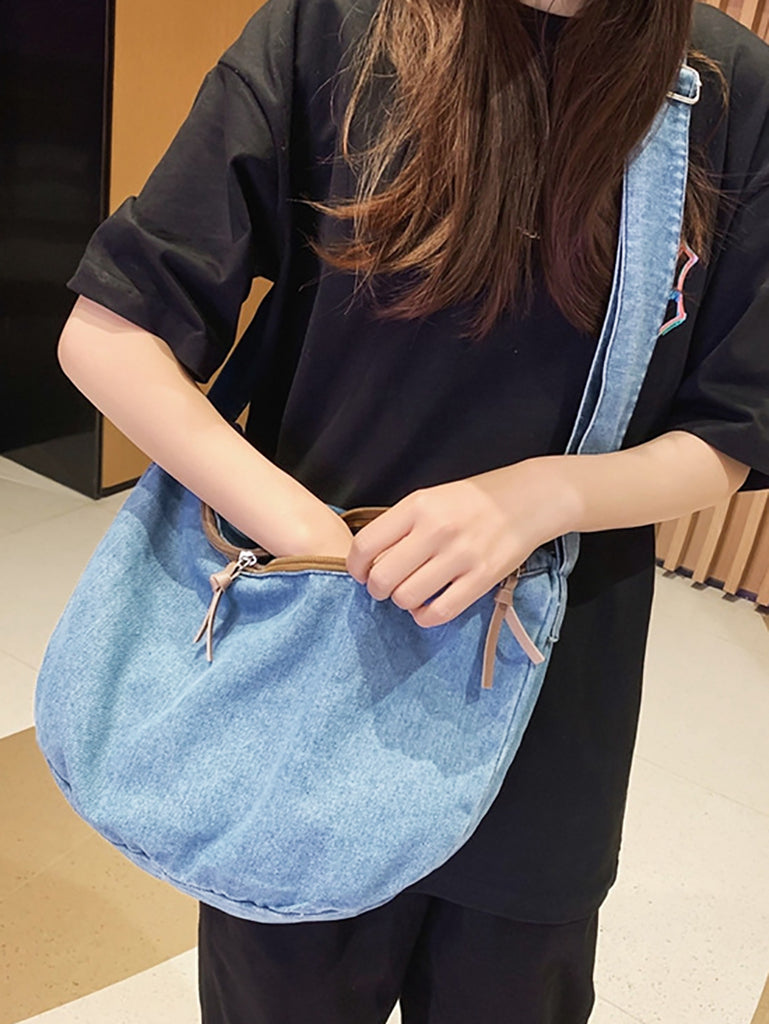 Casual Solid Denim Large Capacity Crossbody Bag