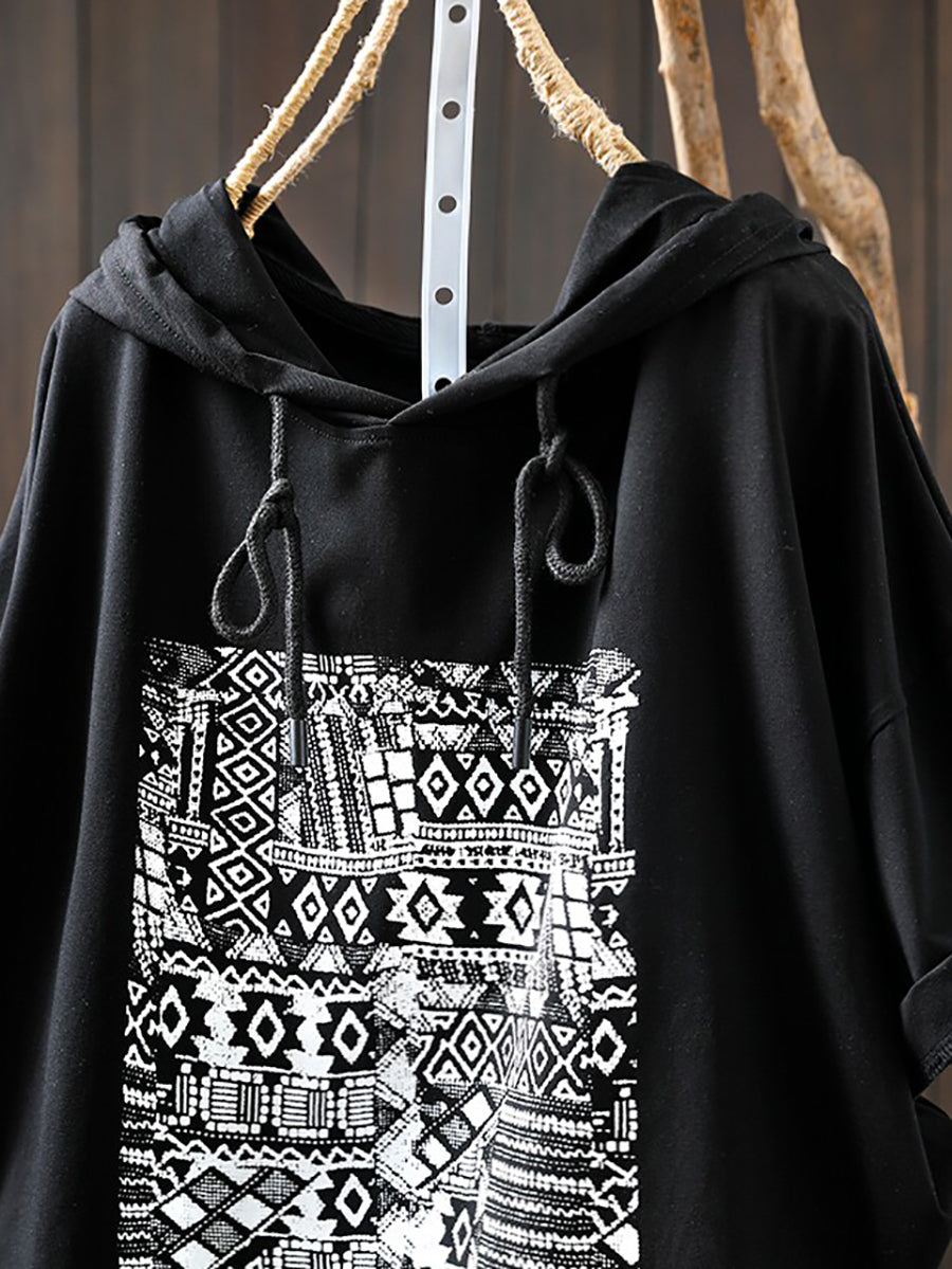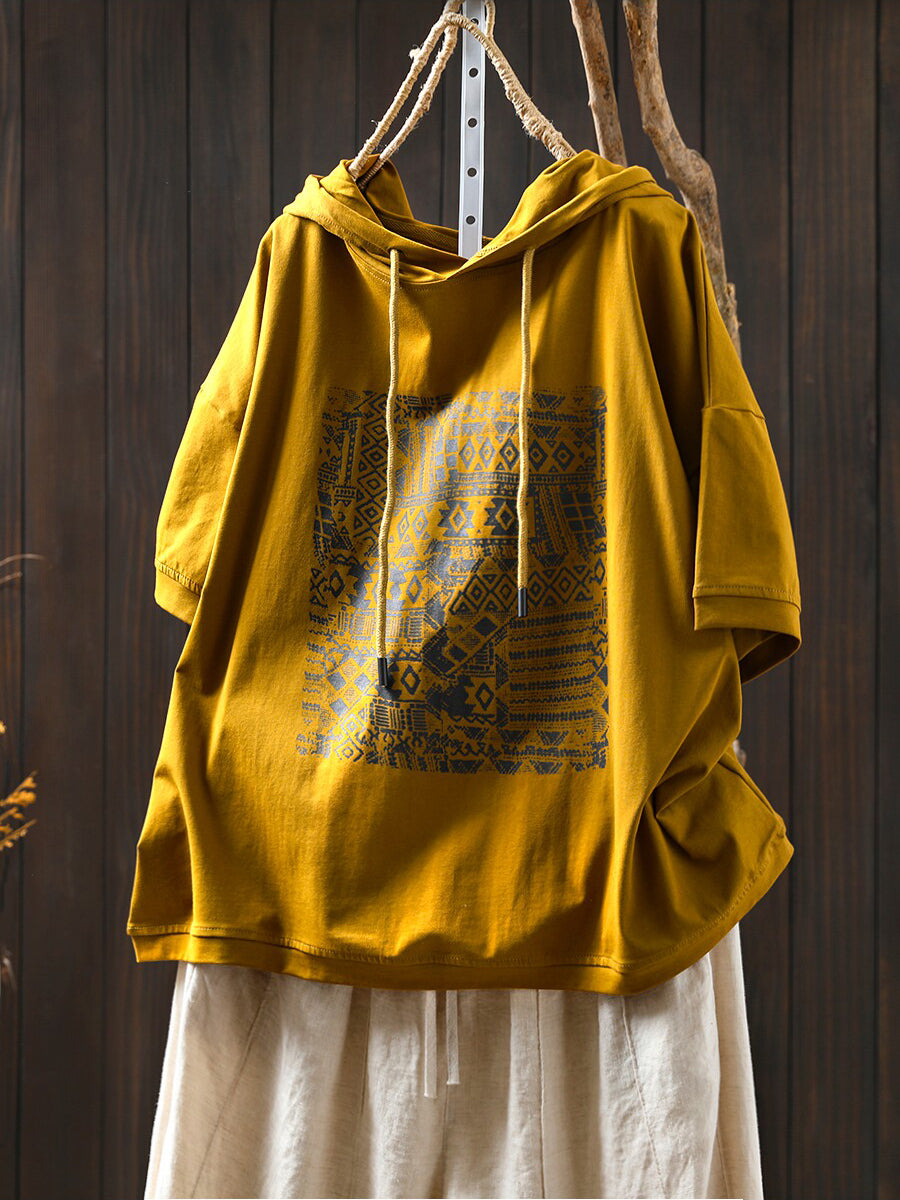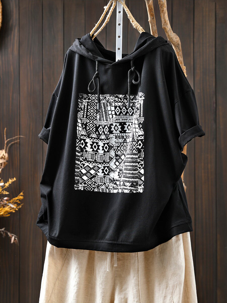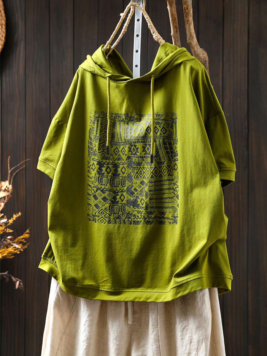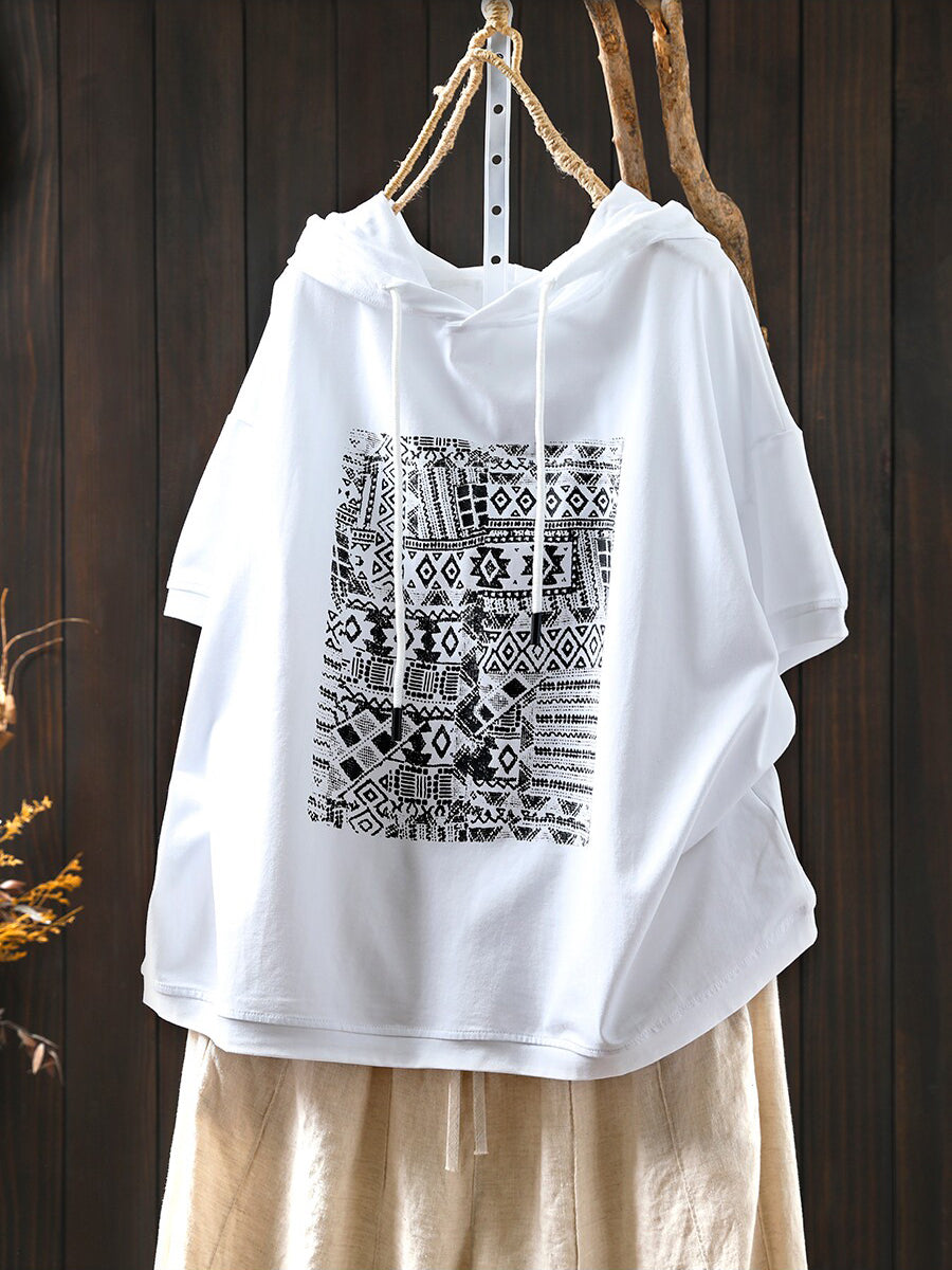 Women Summer Casual Print Cotton Hoodie
