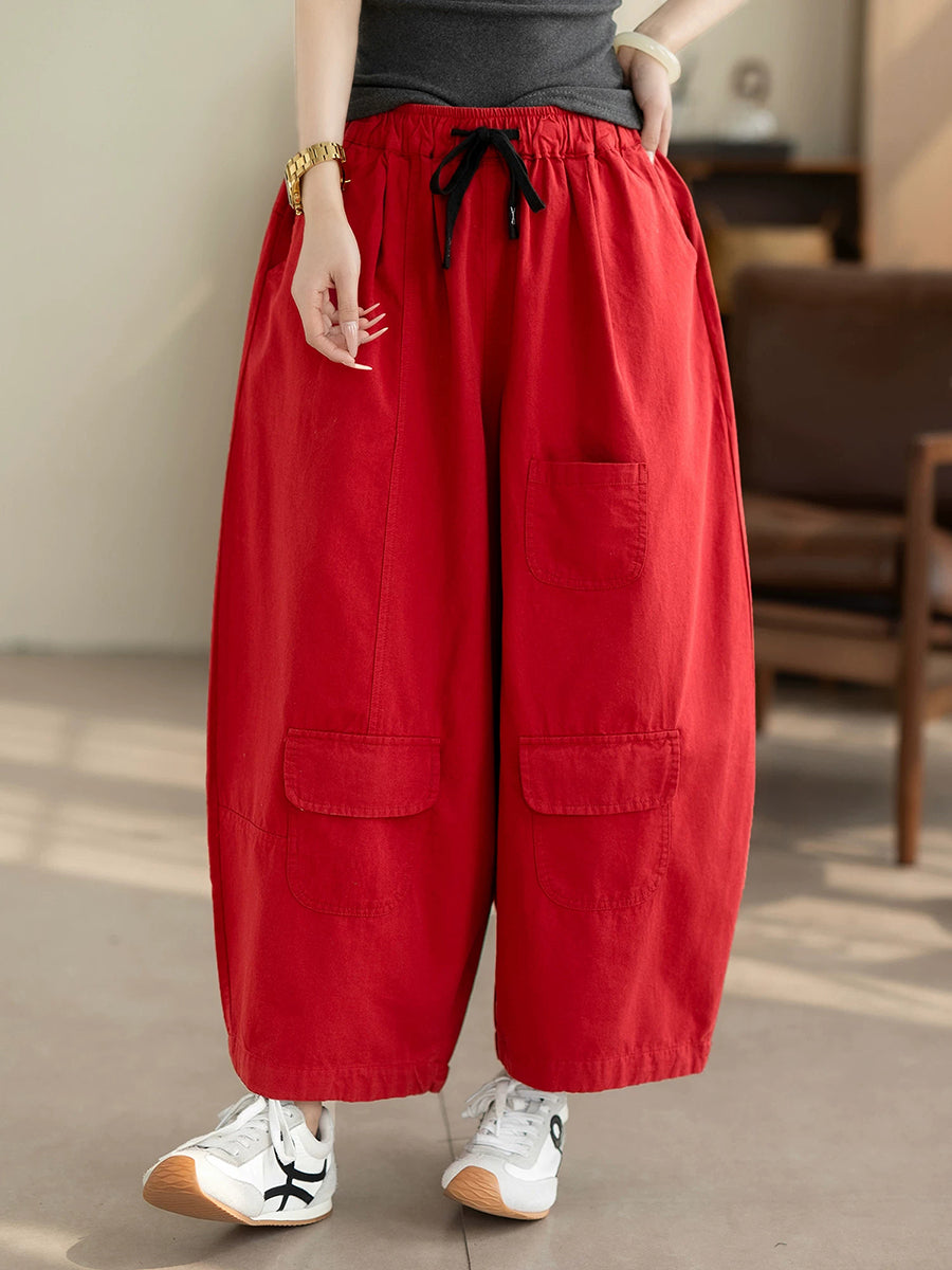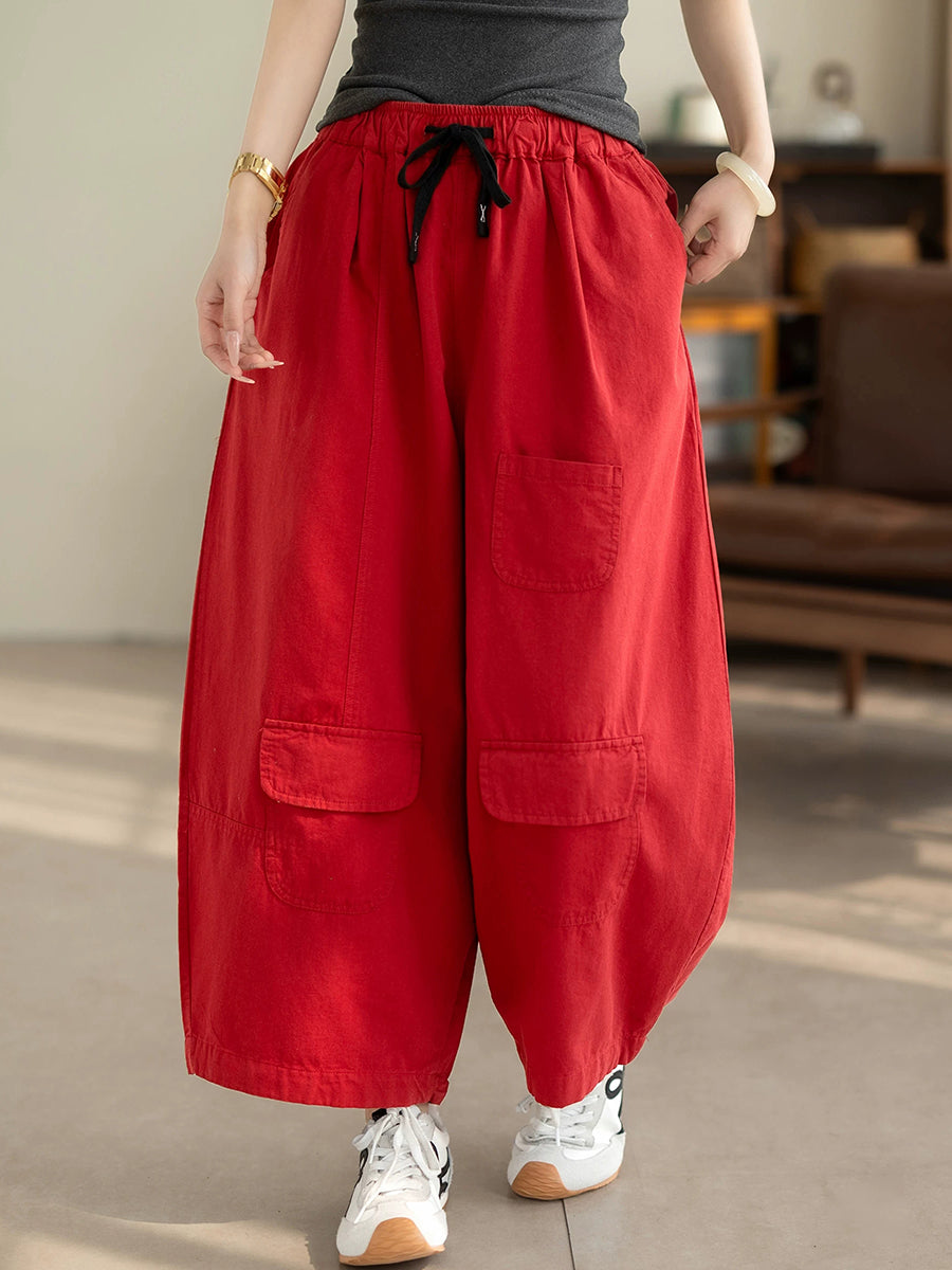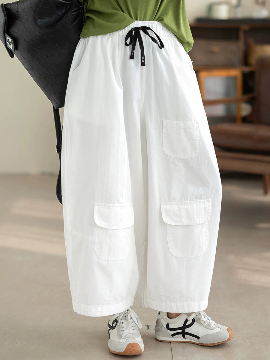 Women Summer Casual Pure Color 100%Cotton Wide-leg Pants