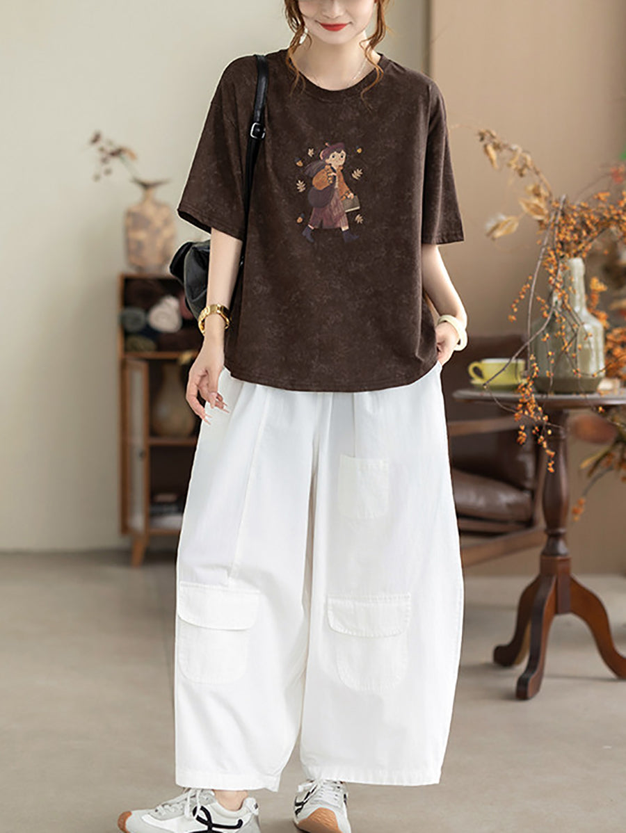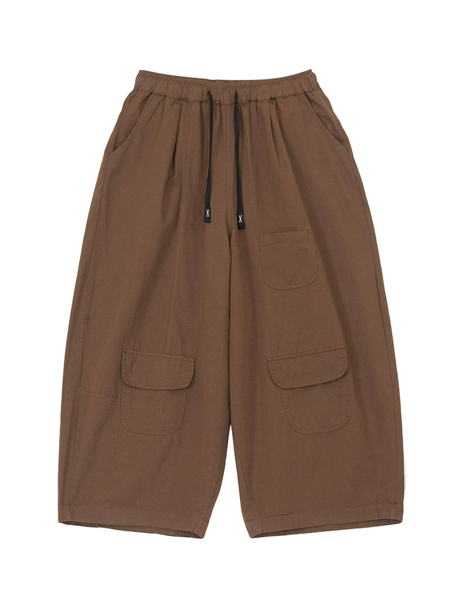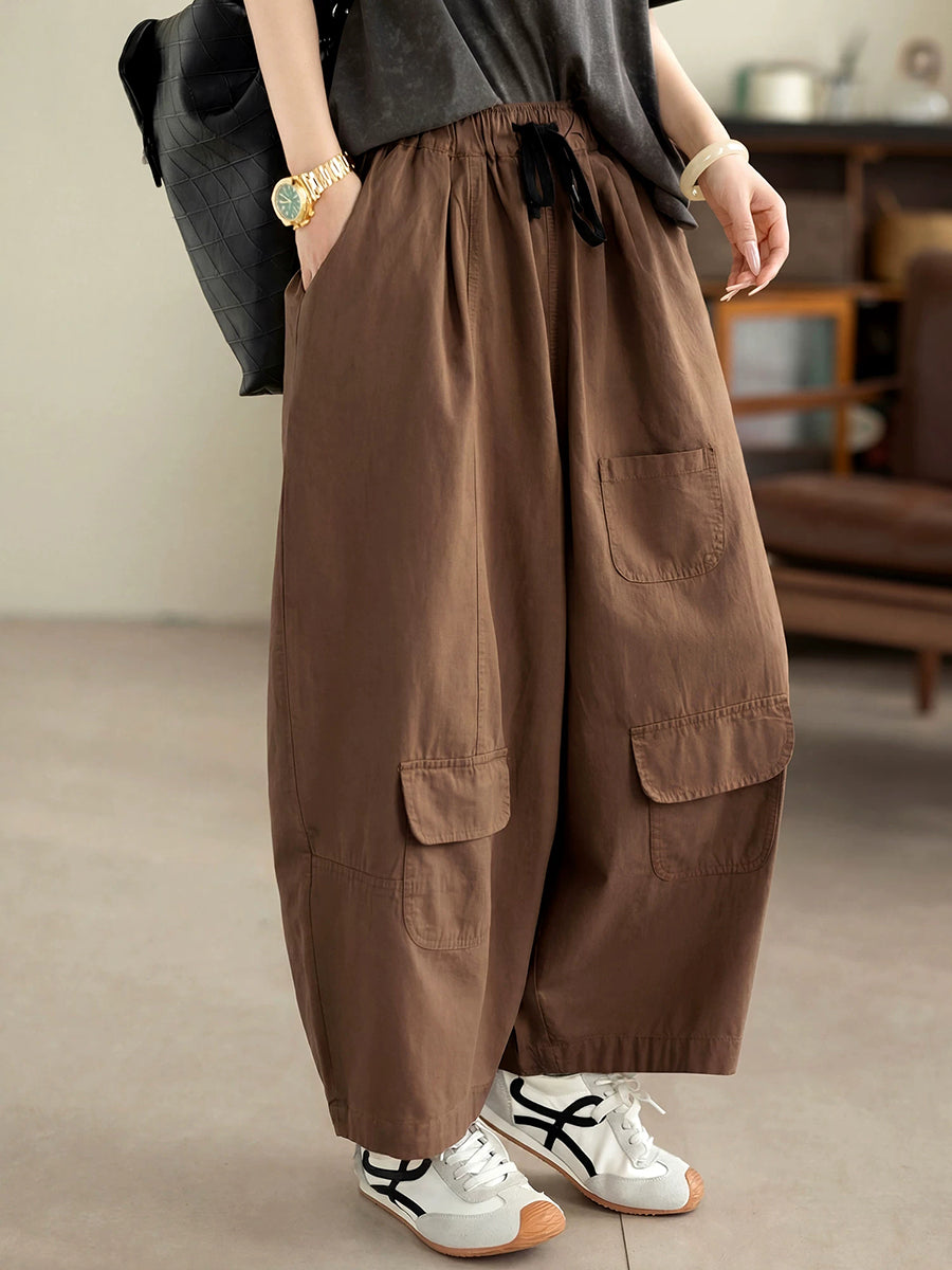 Women Summer Casual Pure Color 100%Cotton Wide-leg Pants