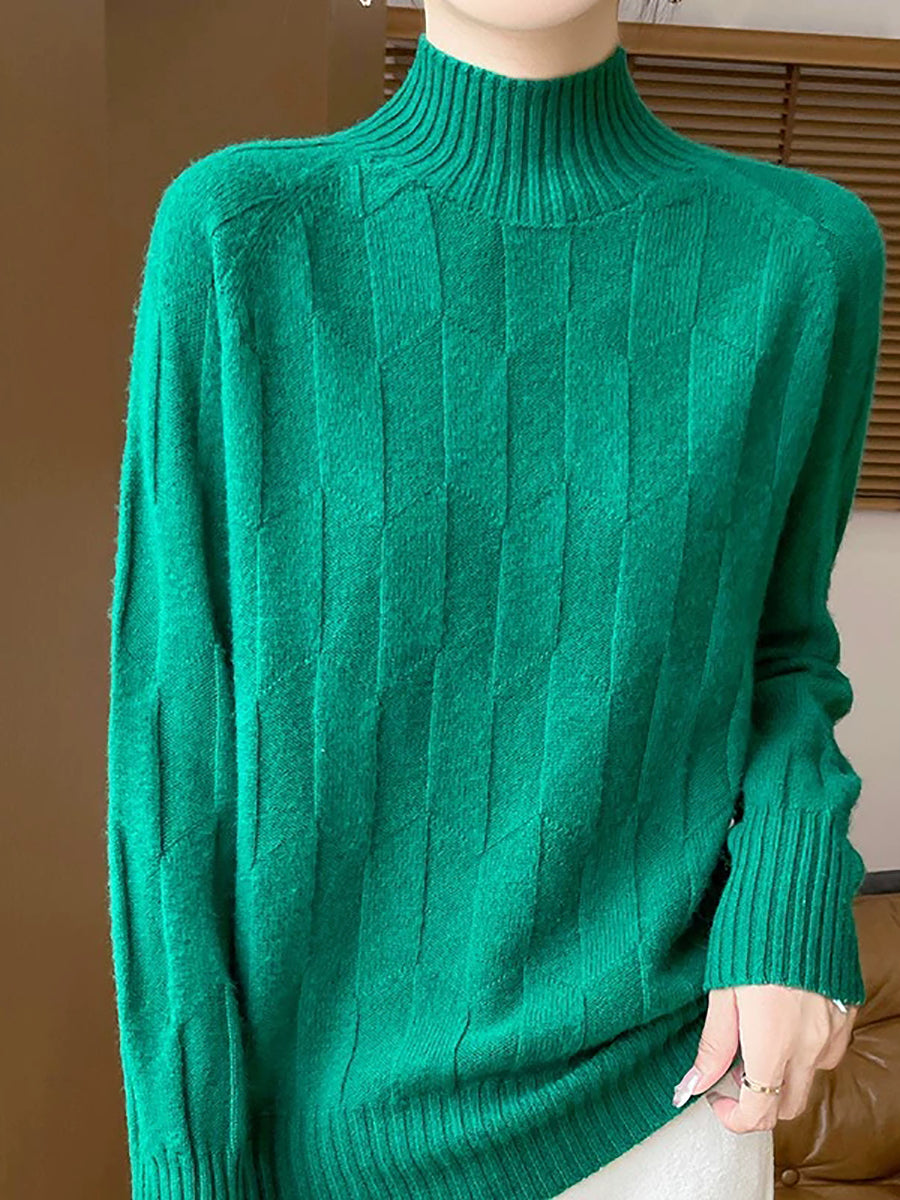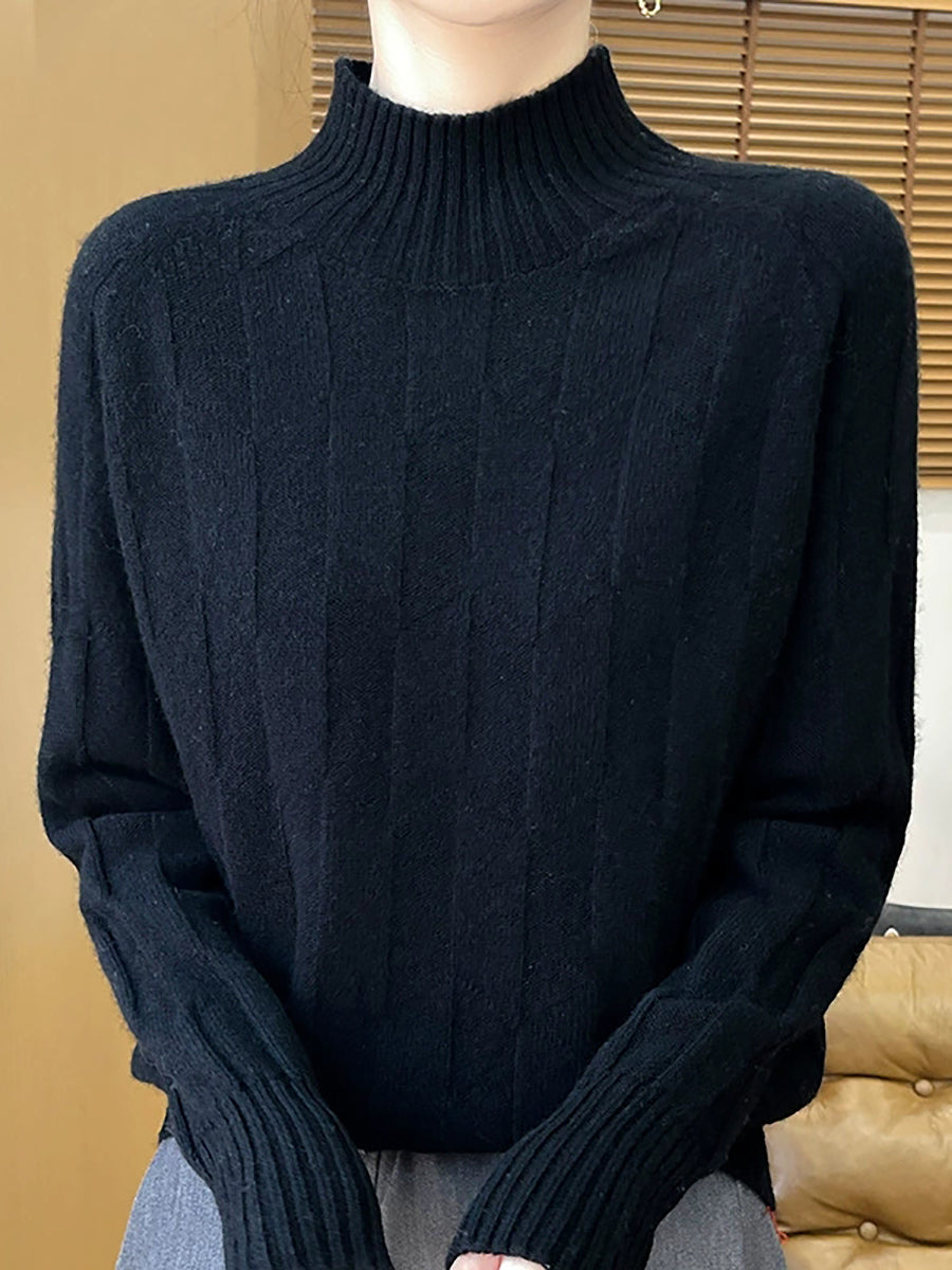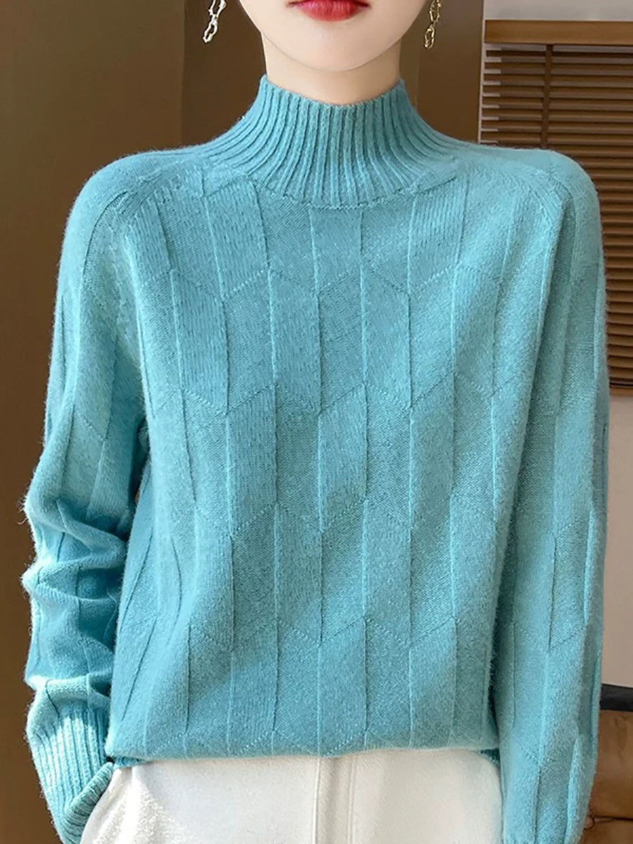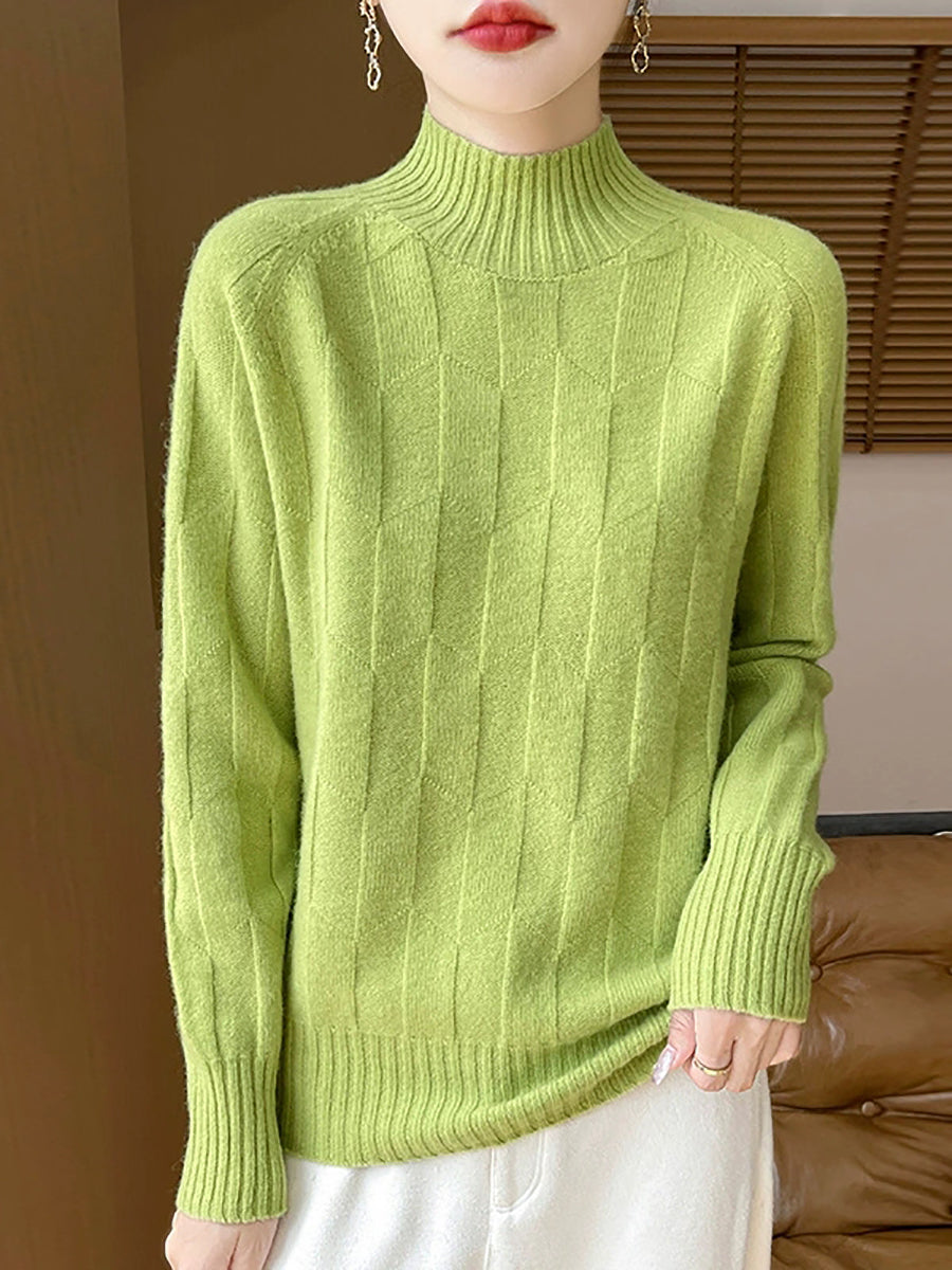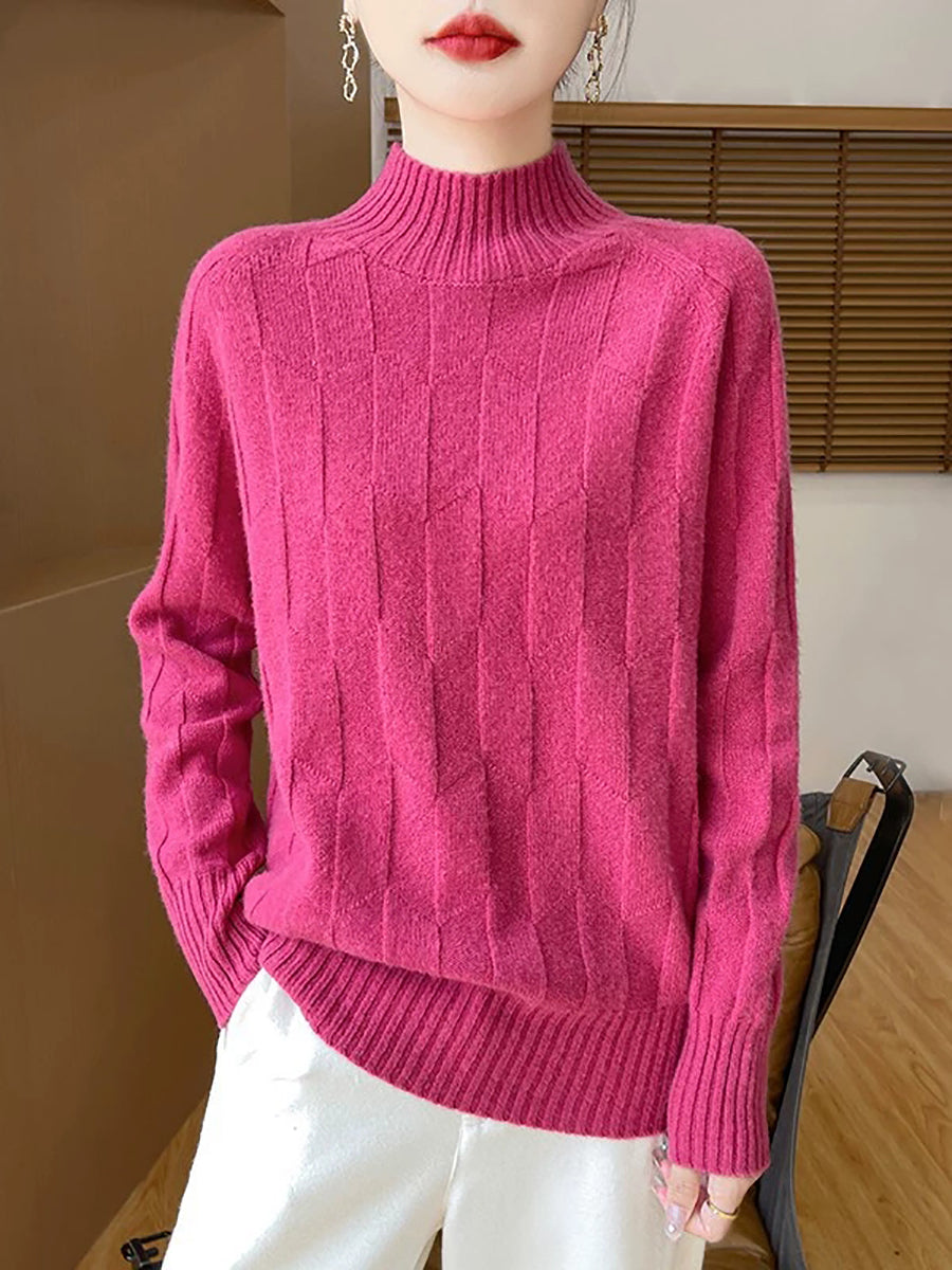 Women Casual Spring Pure Color Half-turtleneck Sweater