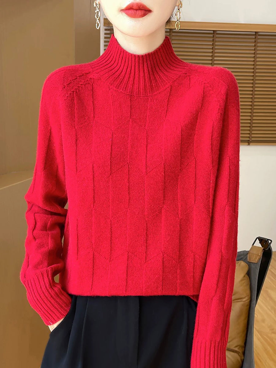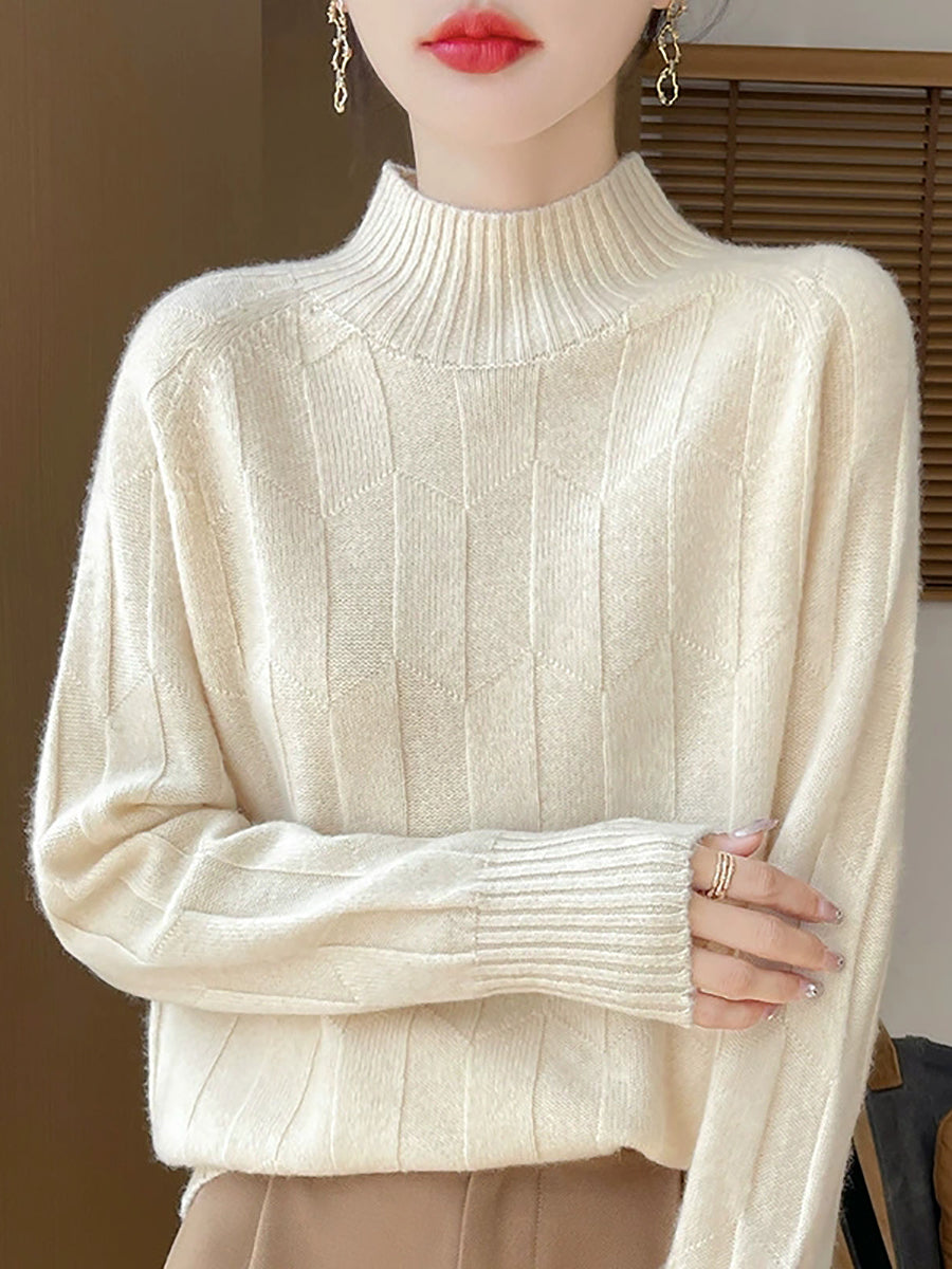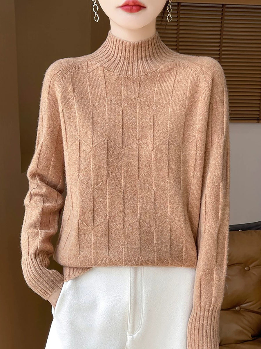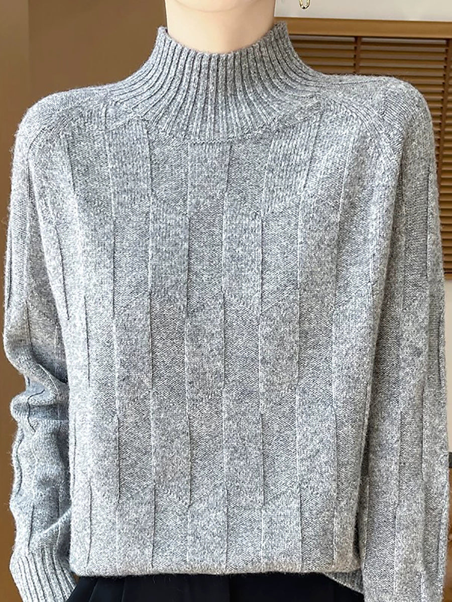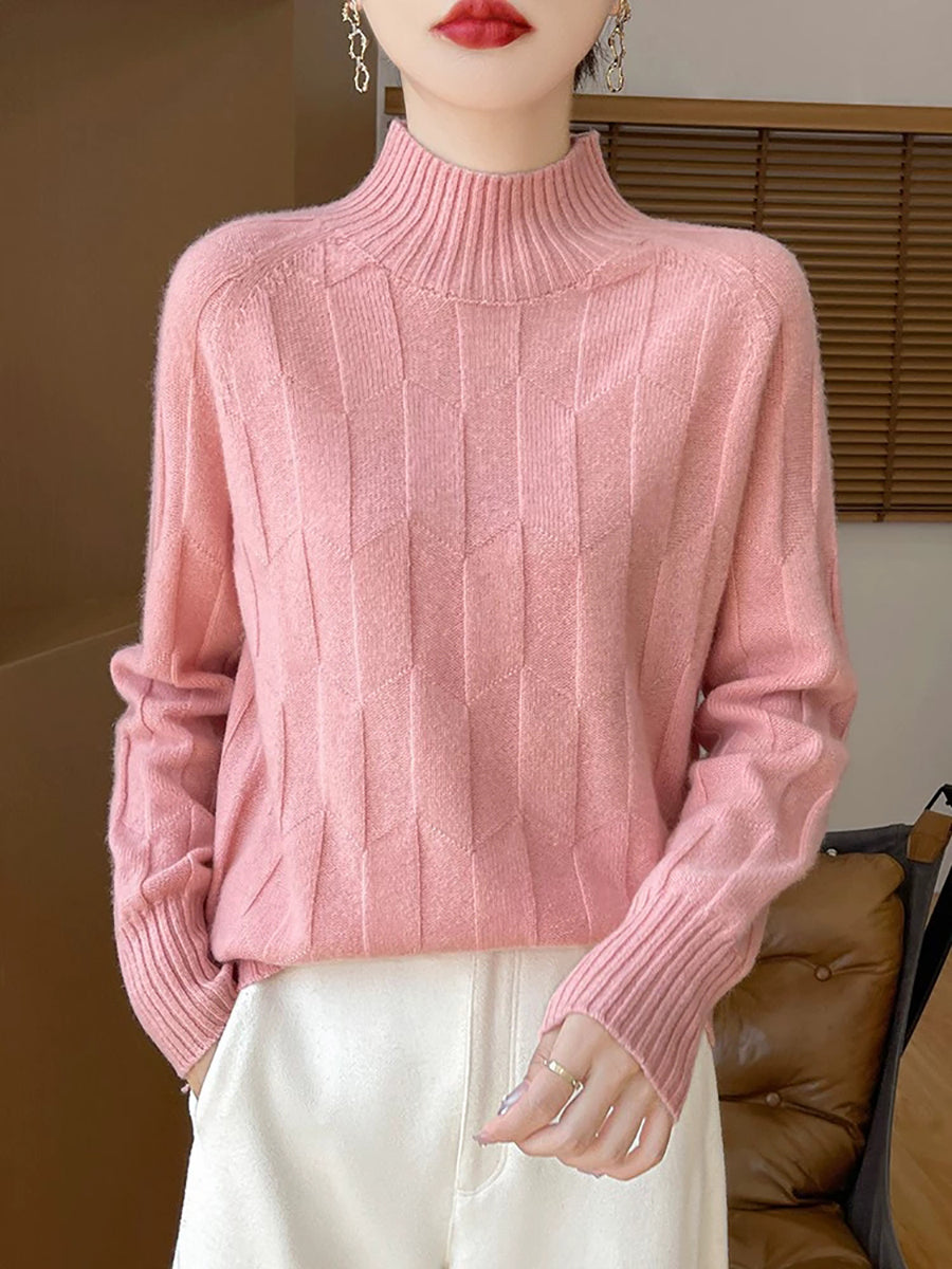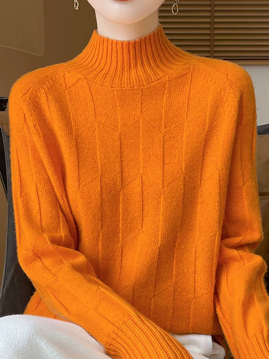 Women Casual Spring Pure Color Half-turtleneck Sweater