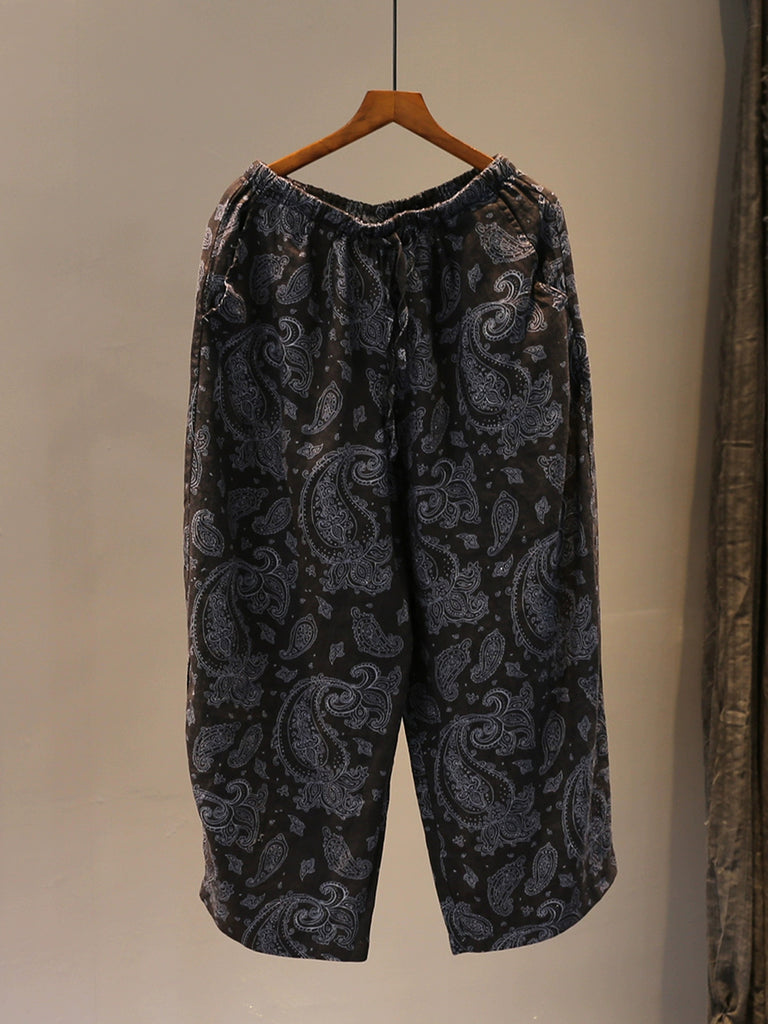 Women Winter Flower Jacquard Wide-leg Padded Pants