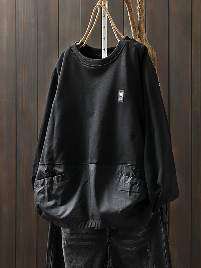 Women Autumn Casual Pure Color Spliced 100%Cotton Sweatshirt