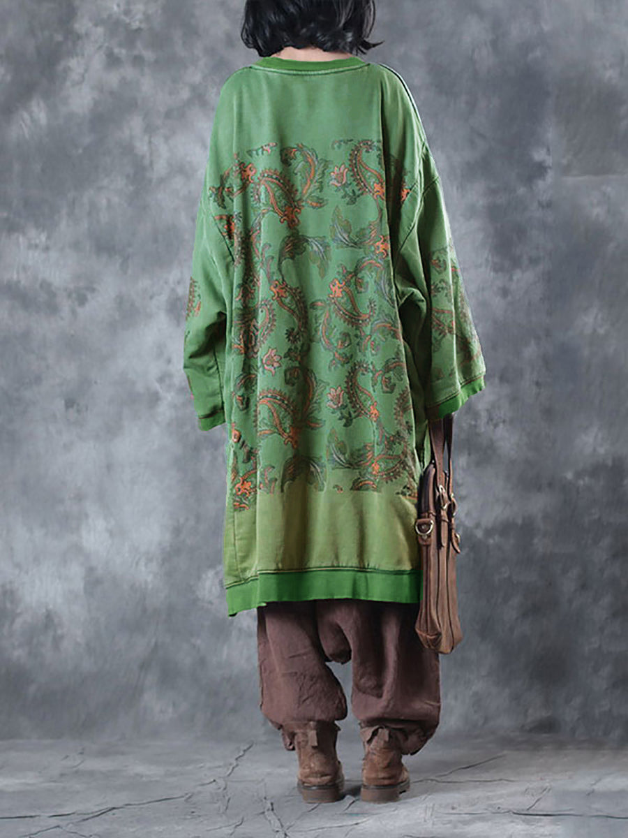 Crafted with high-quality cotton and adorned with a stunning flower pattern, this dress features a classic O-Neck collar and full raglan sleeves, perfect for the casual and cool autumn season.