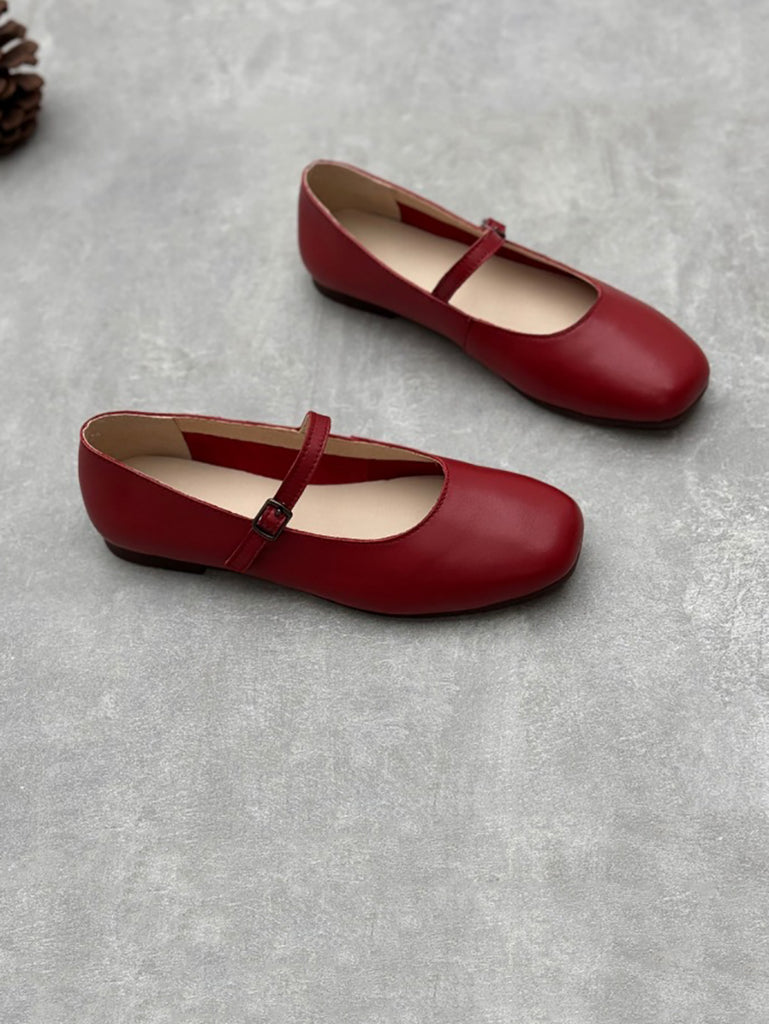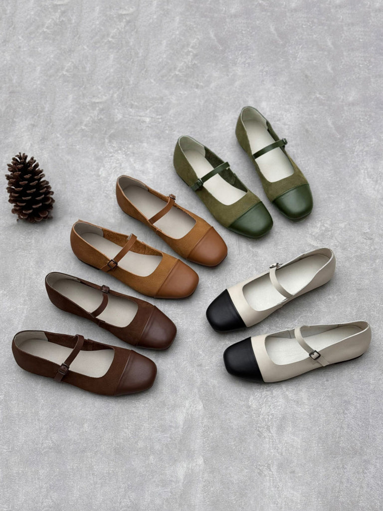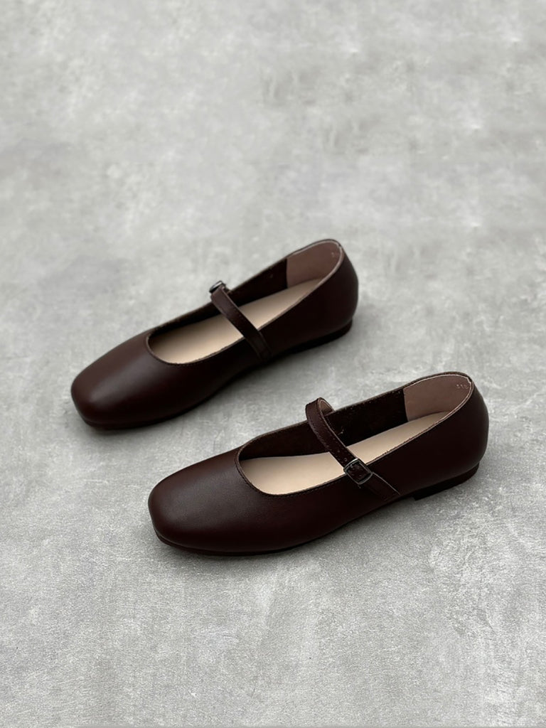 Women Elegant Solid Leather Low Heel Mary Jane Shoes