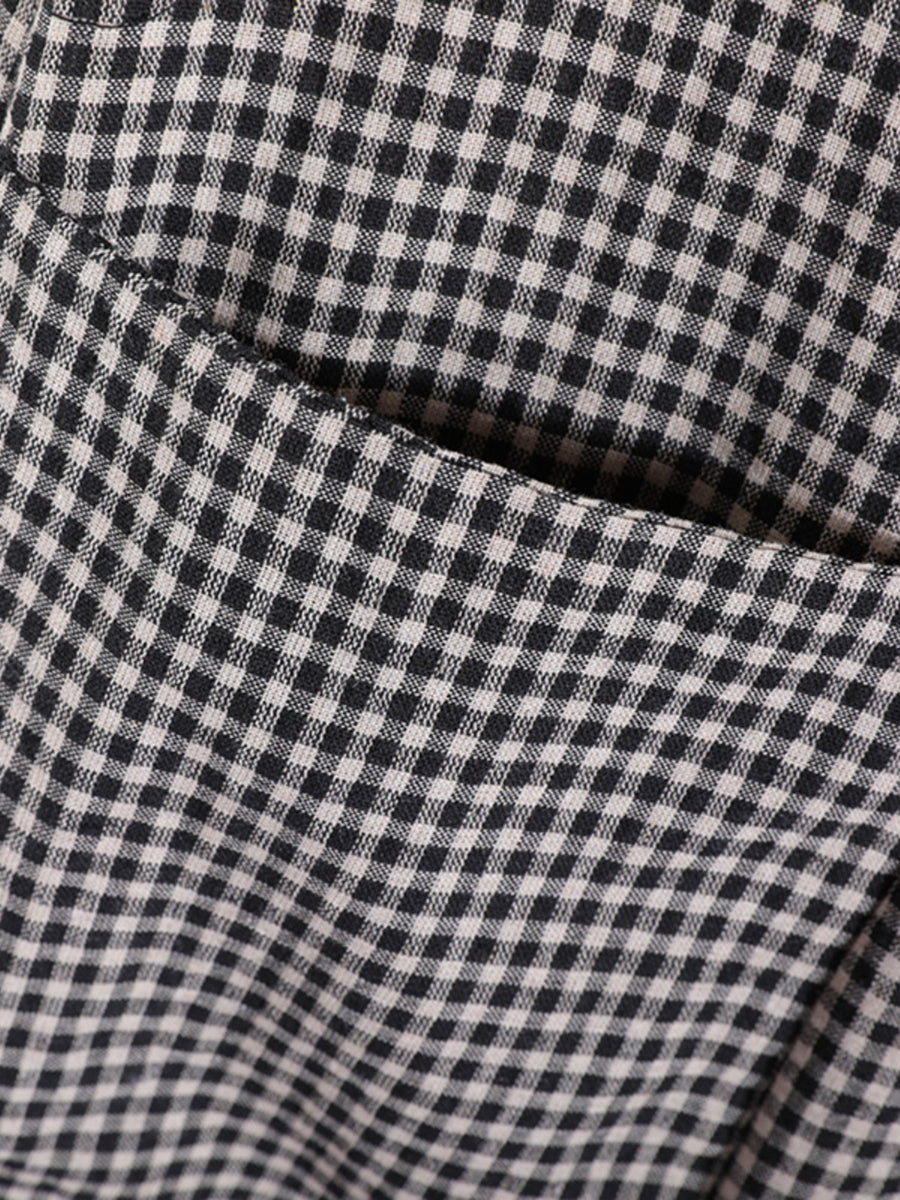 Plus Size Women Casual Plaid Slant Closure Button Loose Dress