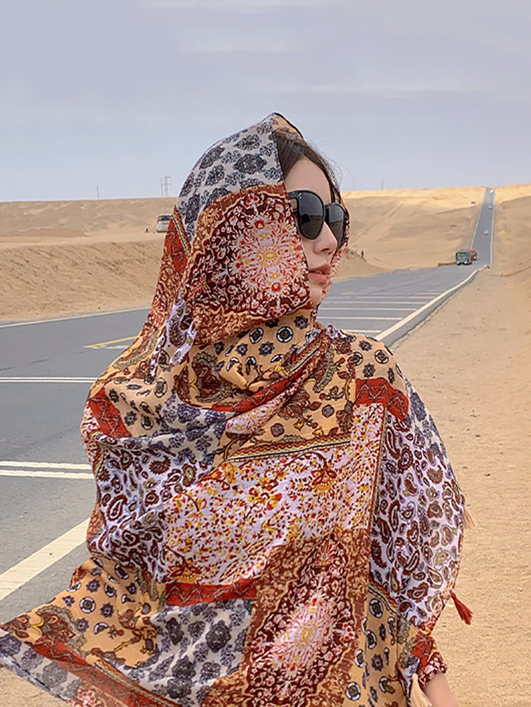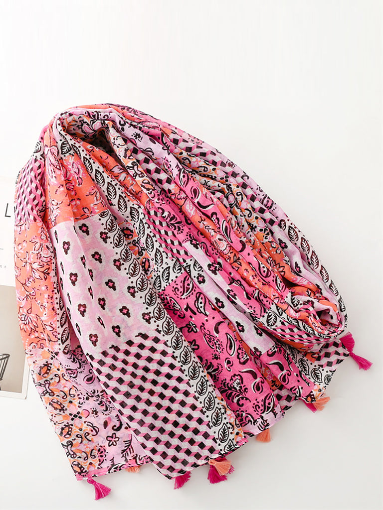 Women Summer Artsy Spliced Tassel Shawl Scarves