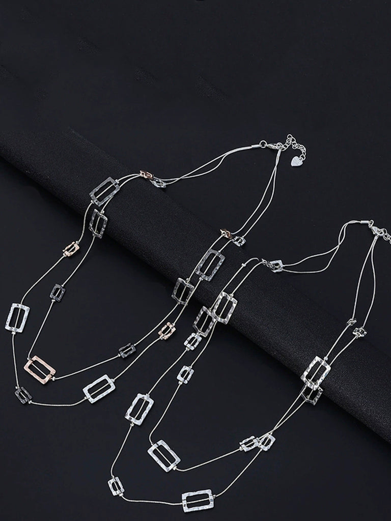 Women Fashion Quadrilateral Alloy Dual-Layer Necklace