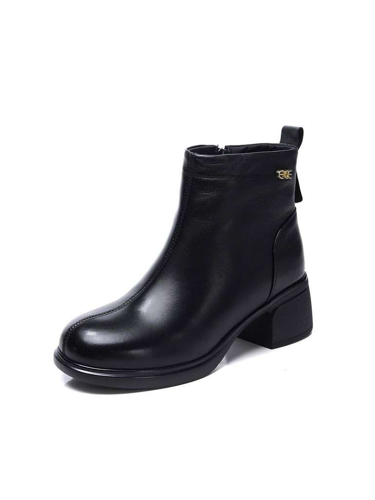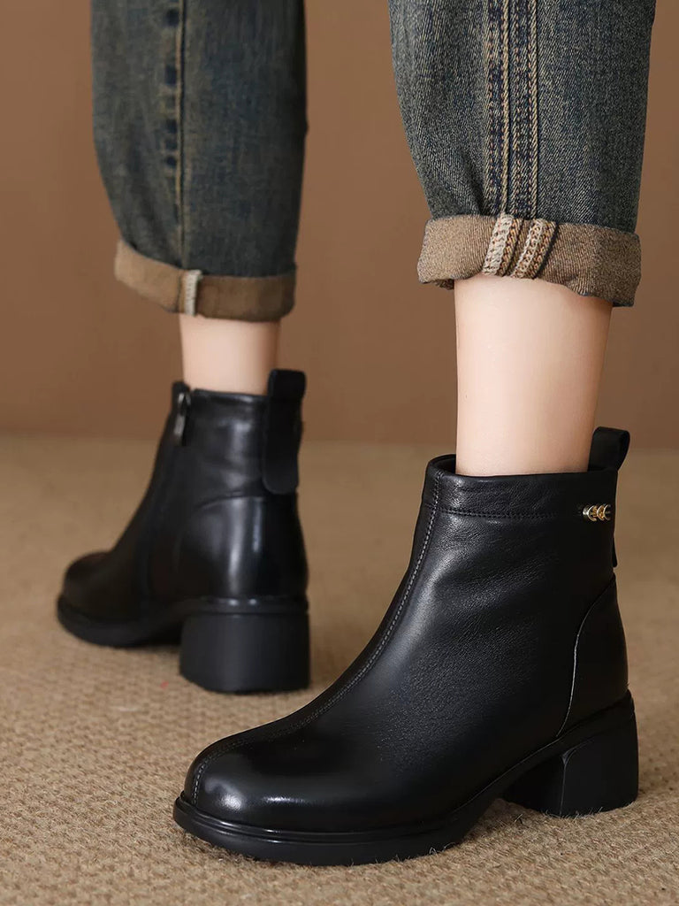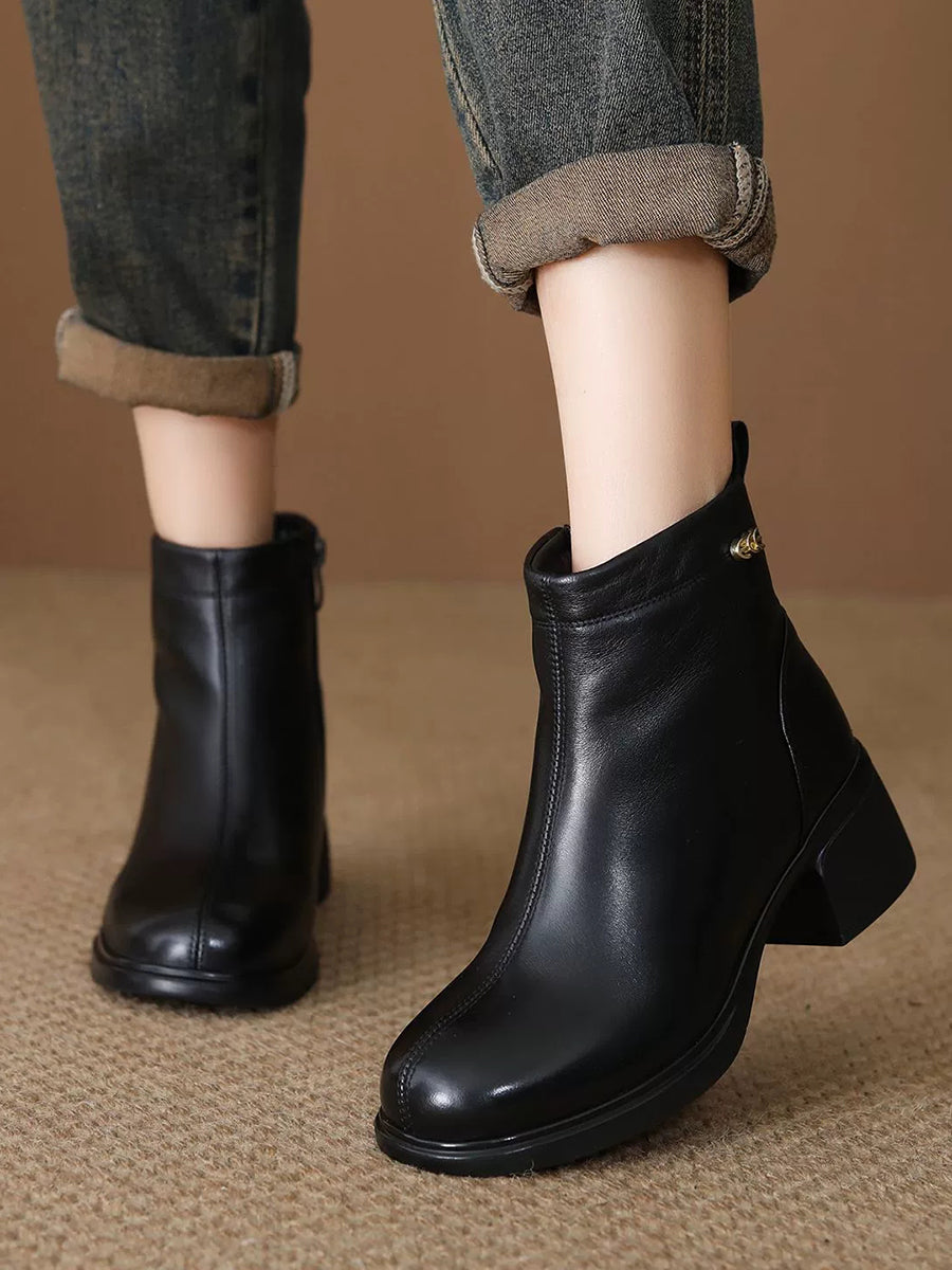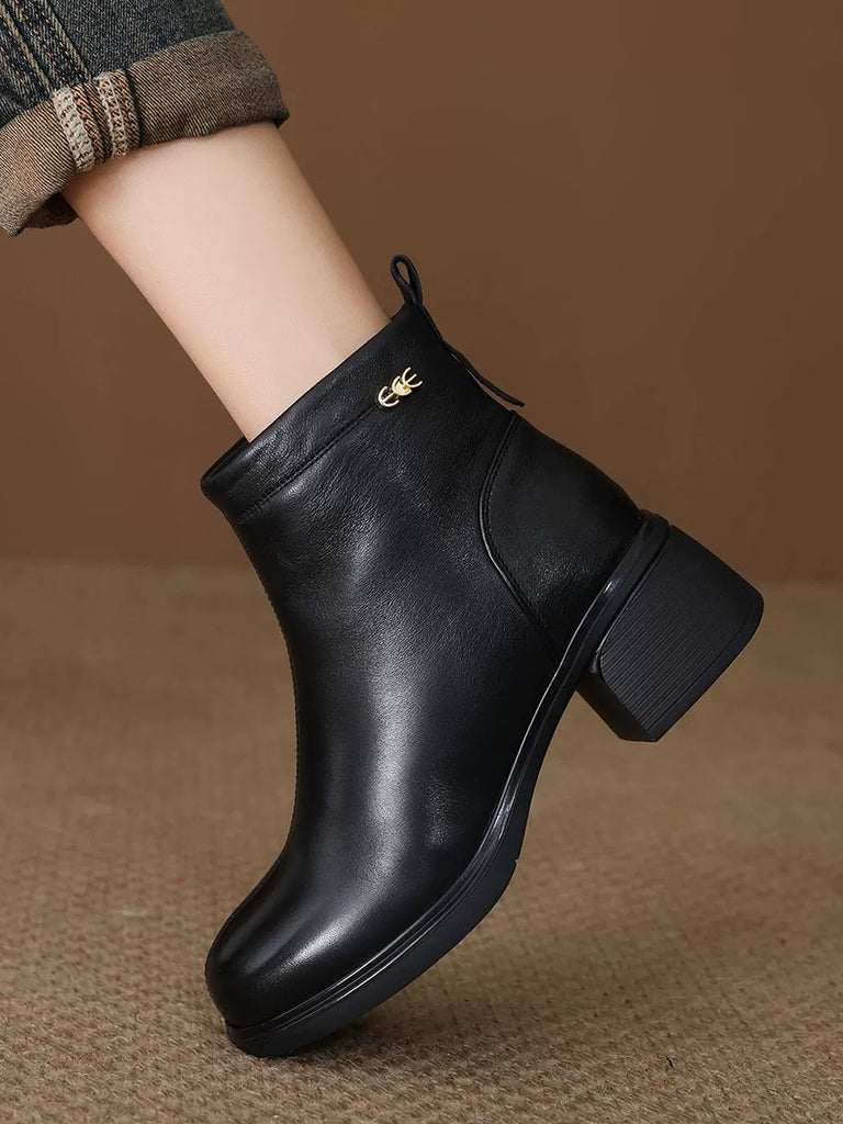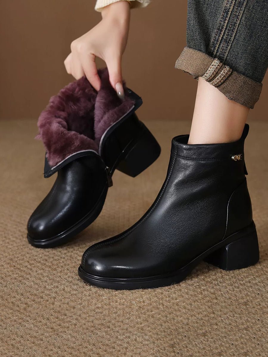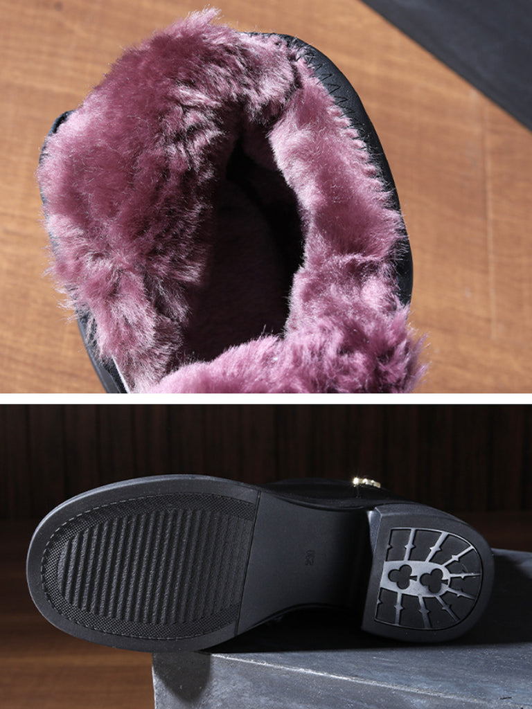 Women Winter Genuine Leather Fleece-lined Mid Heel Boots