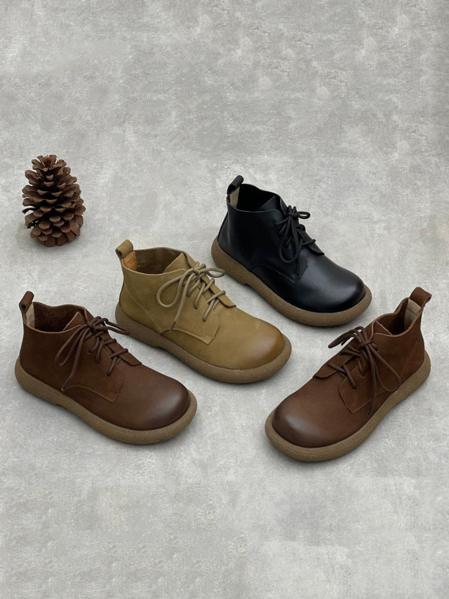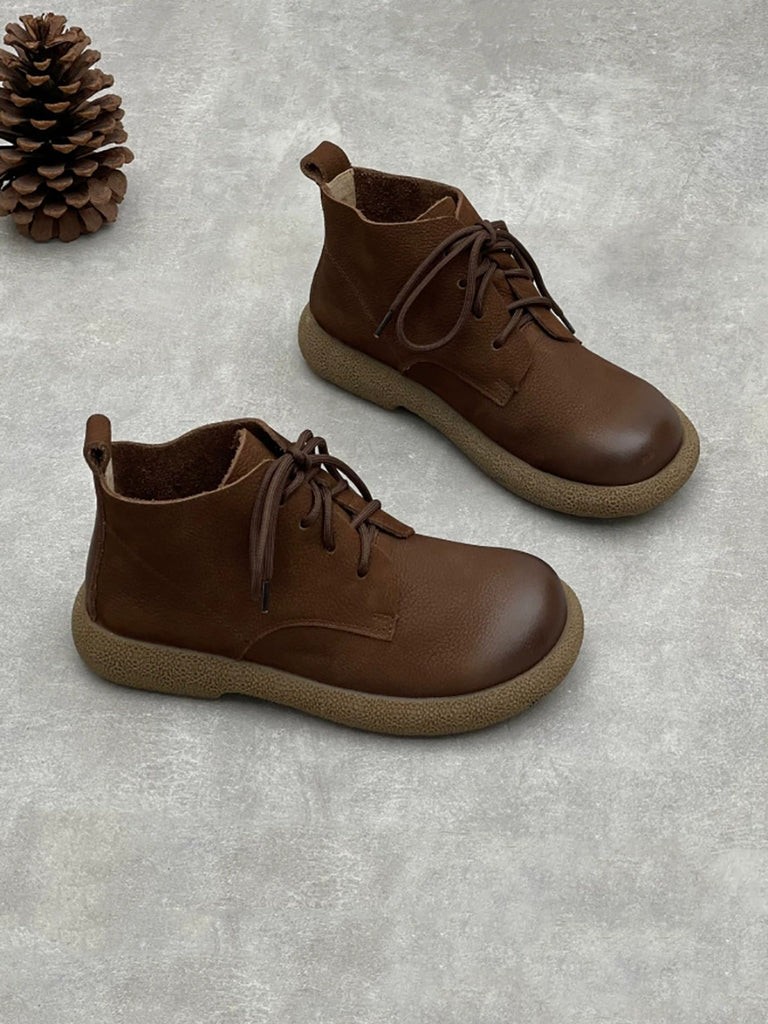 Women Winter Genuine Leather Fleece-lined Ankle Boots