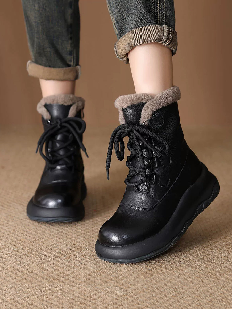 Women Winter Genuine Leather Fleece-lined Martin Boots