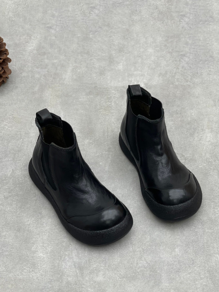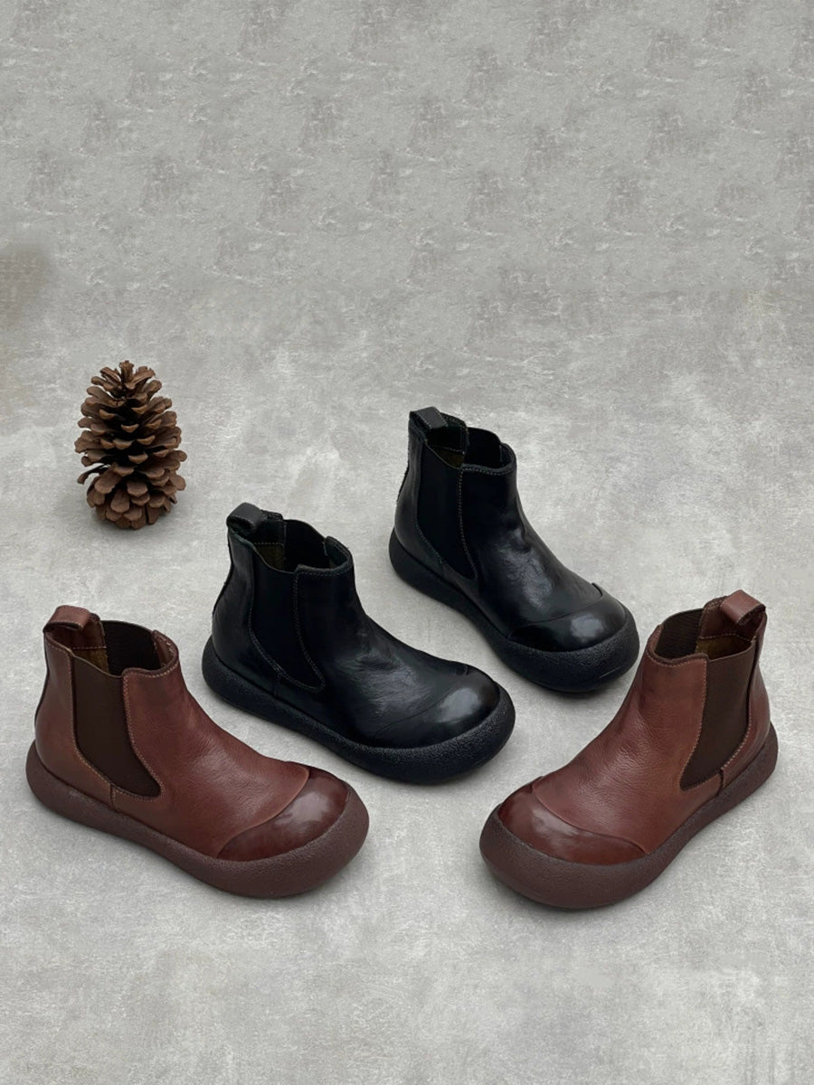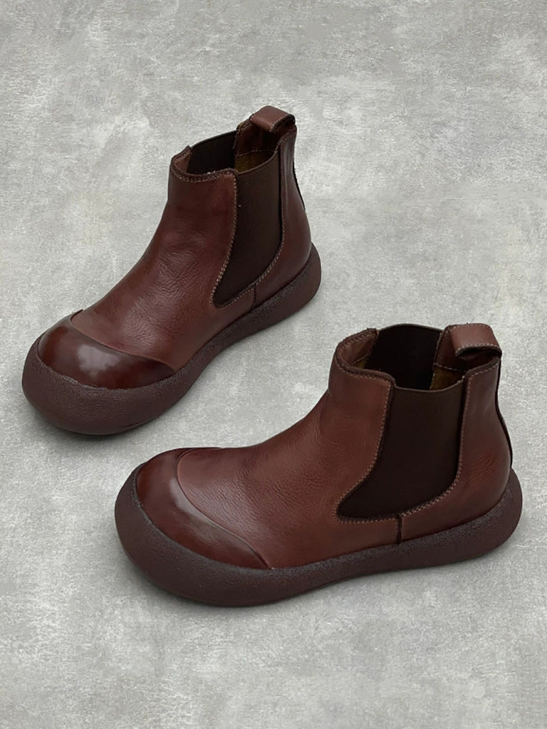 Women Winter Genuine Leather Spliced Flat Ankle Boots