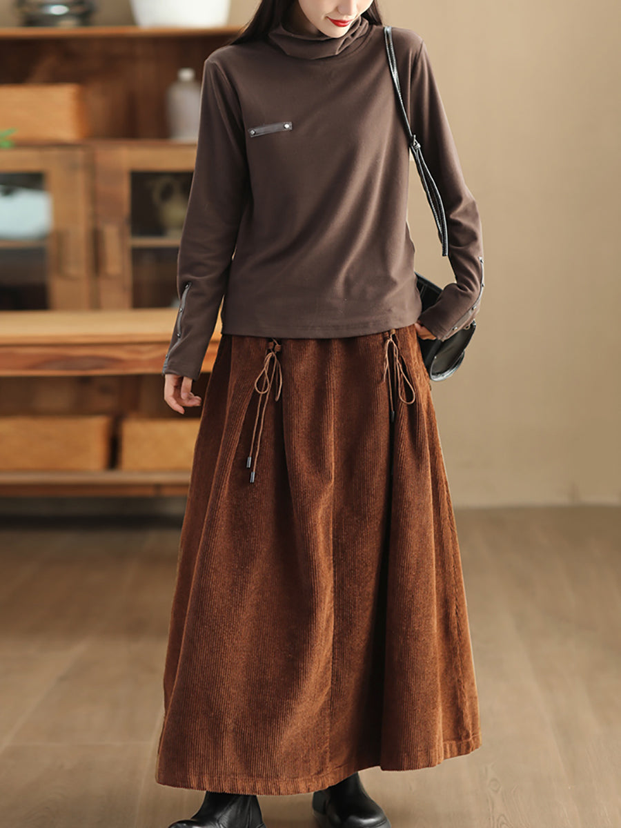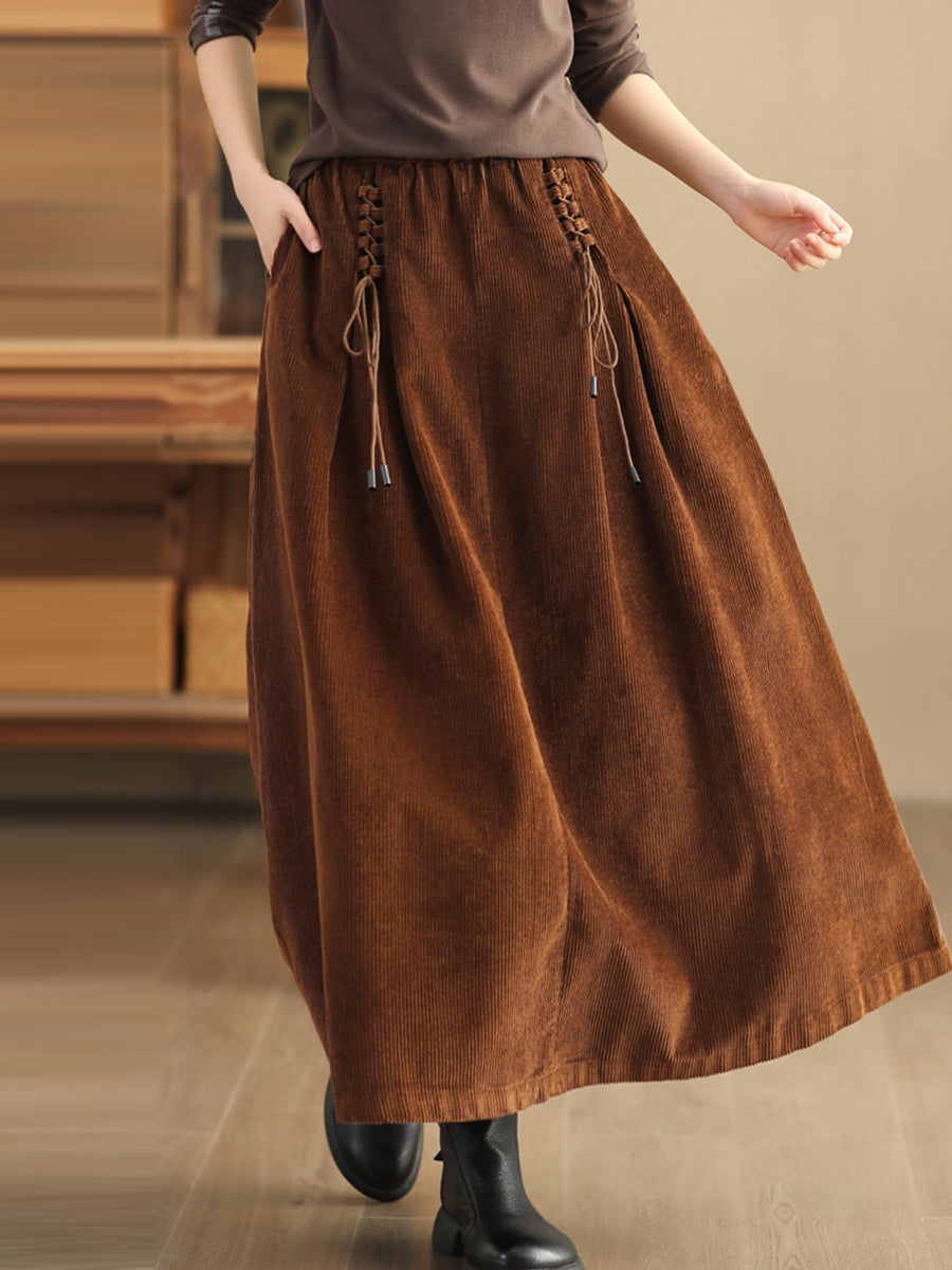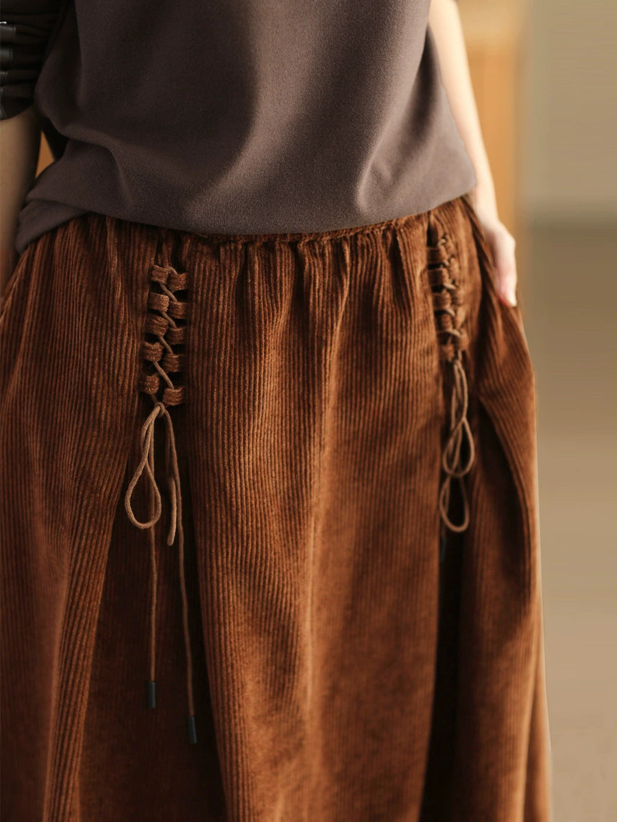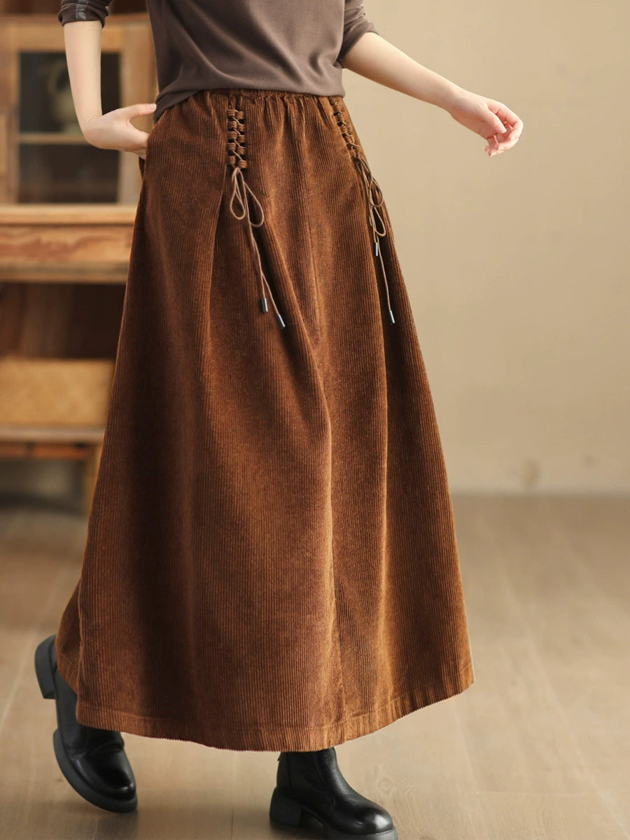 Plus Size Women Autumn Retro Strap Corduroy A-Shape Skirt