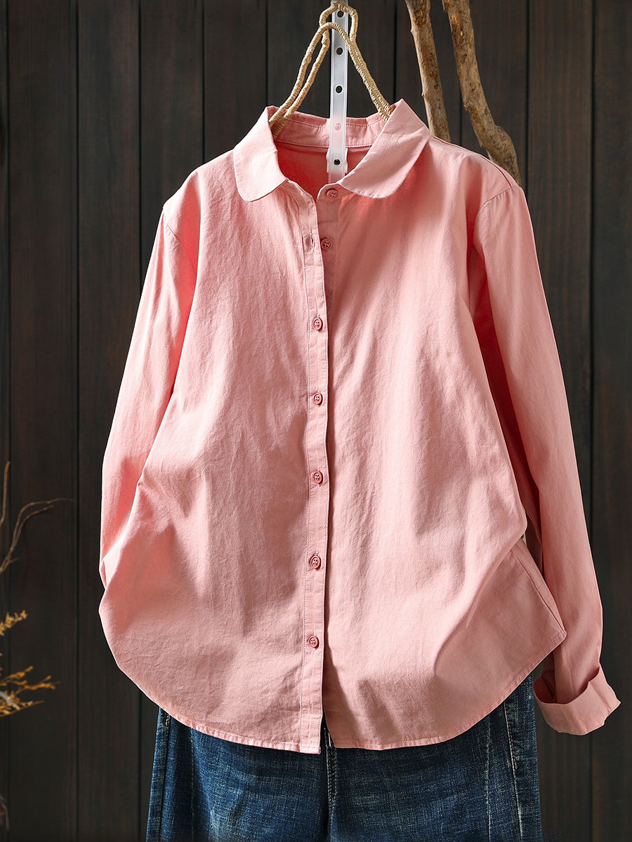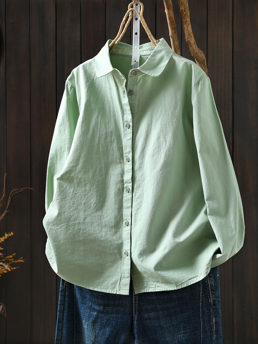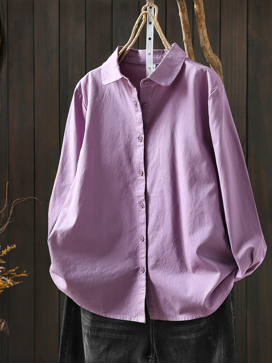 Women Spring Casual Pure Color 100%Cotton Shirt