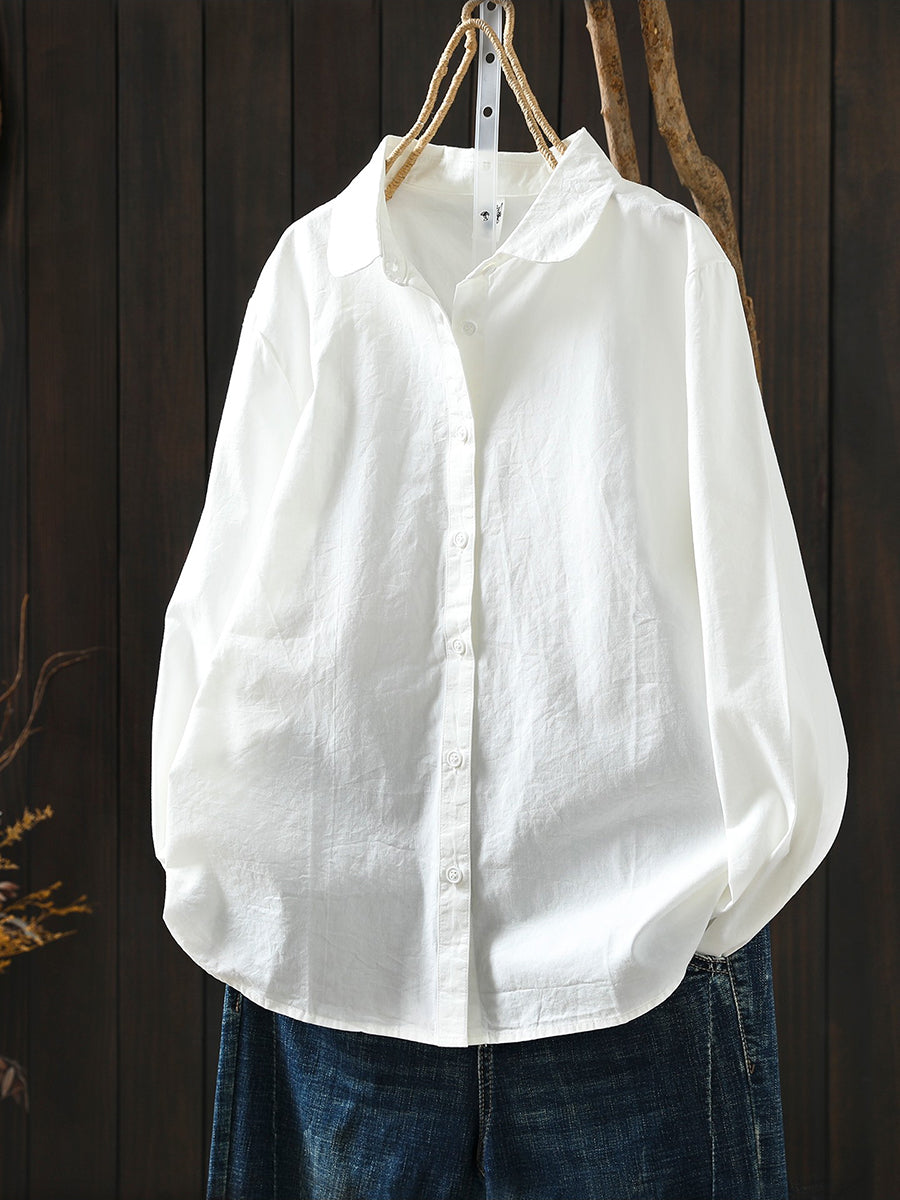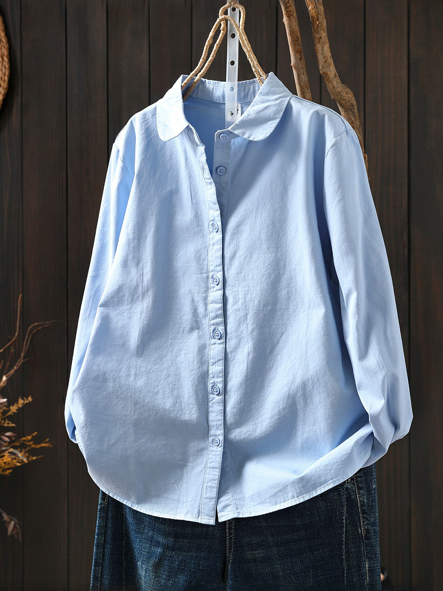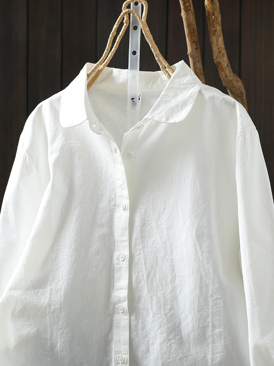 Women Spring Casual Pure Color 100%Cotton Shirt