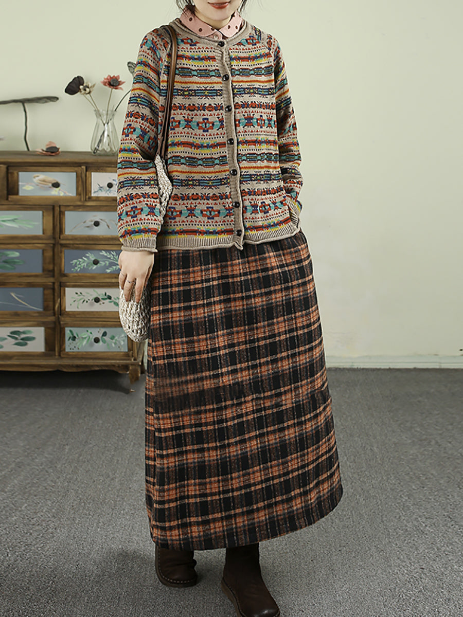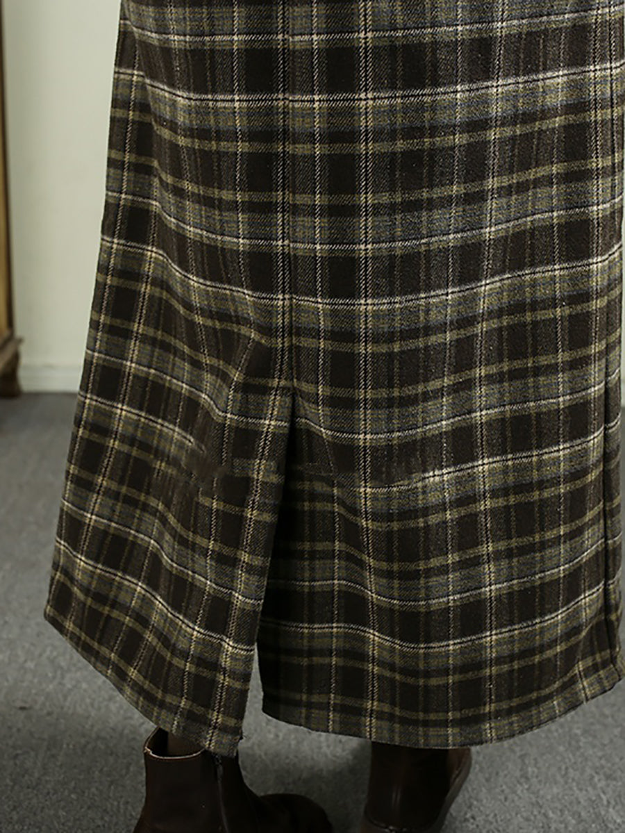 Women Winter Fleece-lined Plaid A-Shape Skirt