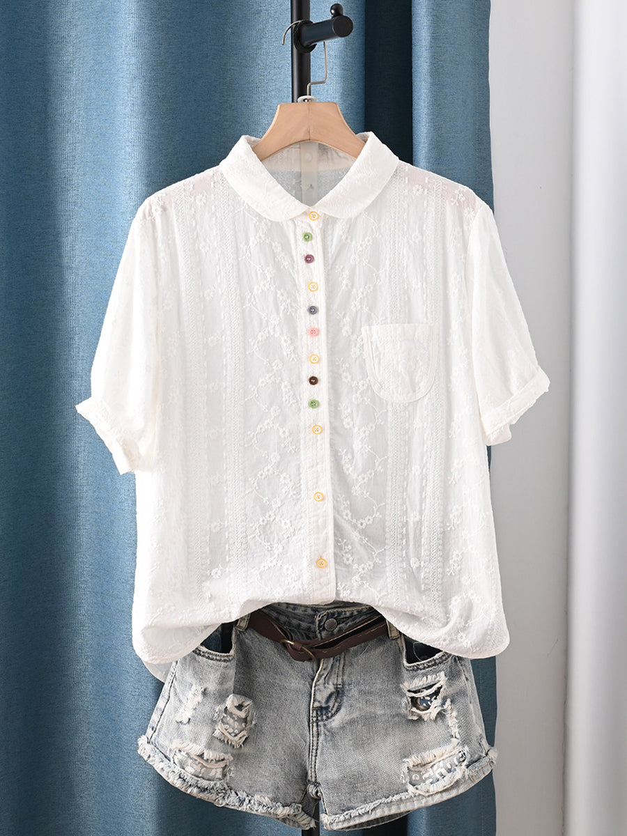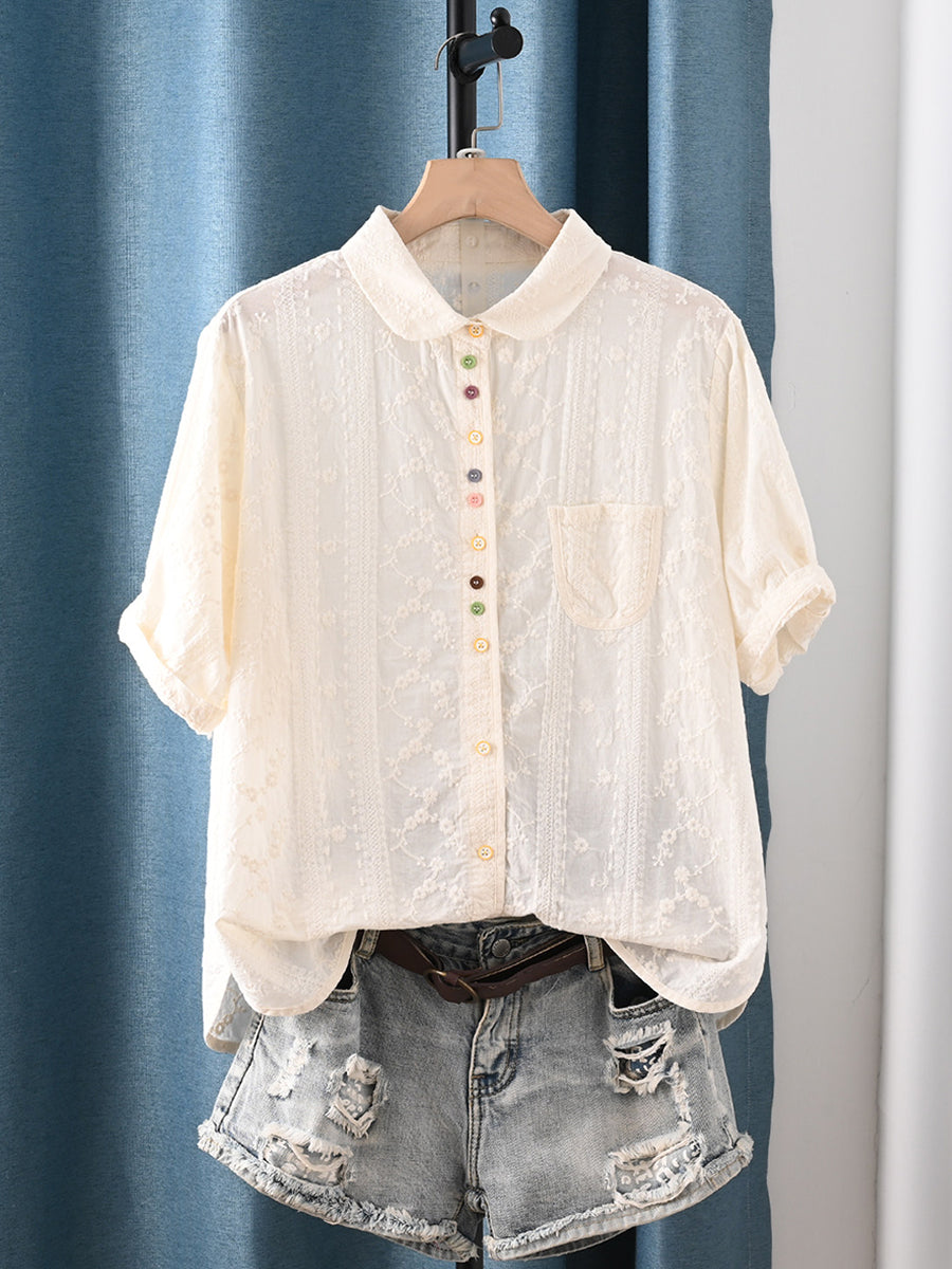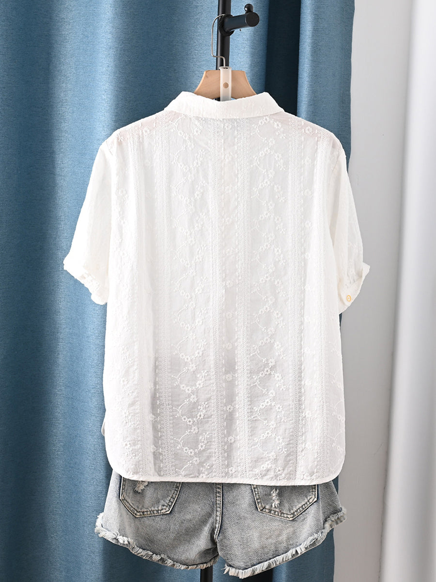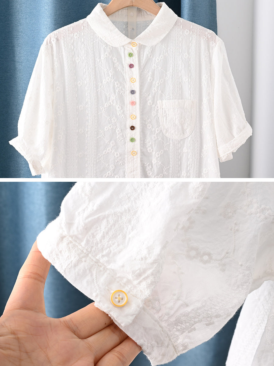 Women Summer Artsy Embroidery 100%Cotton Shirt