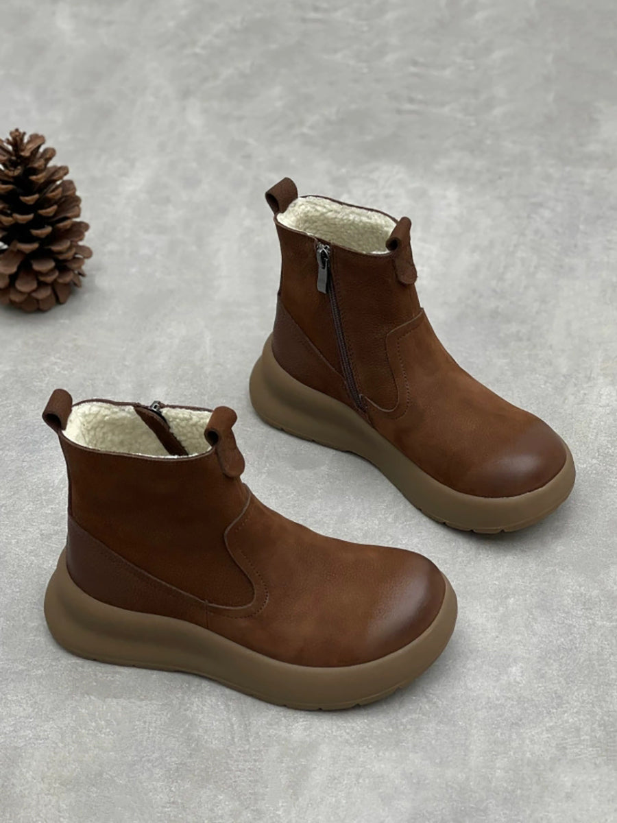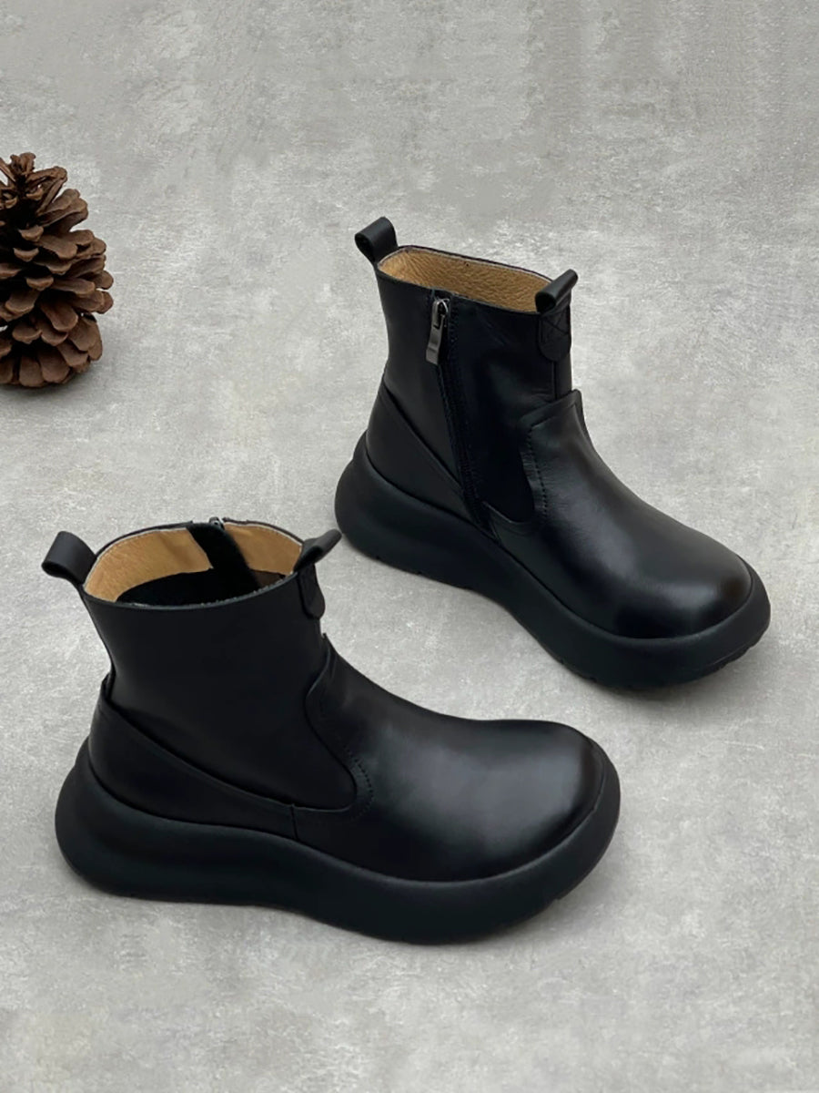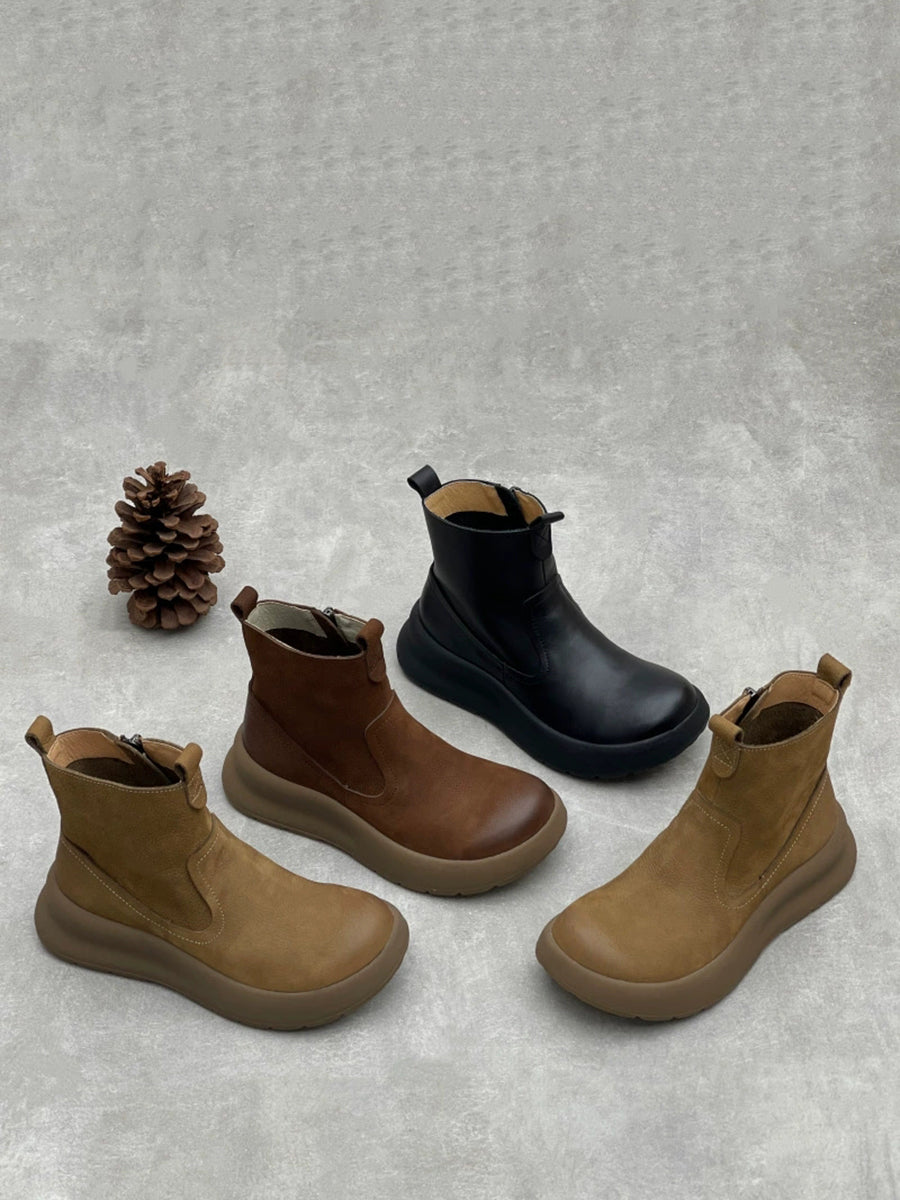 Women Causal Genuine Leather Spliced Ankle Boots