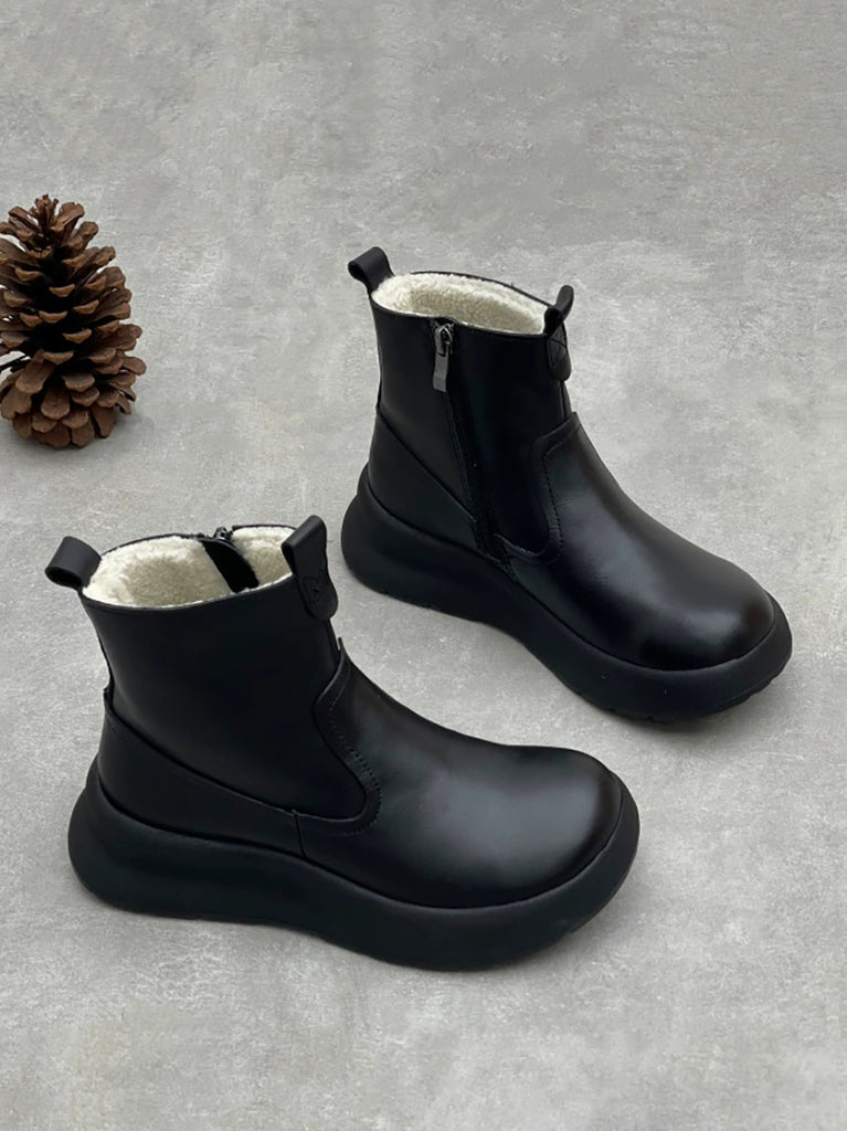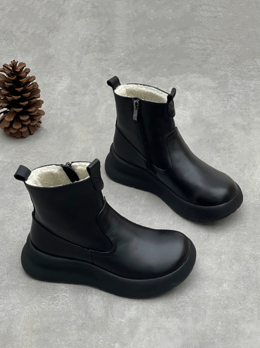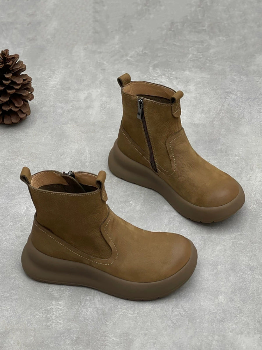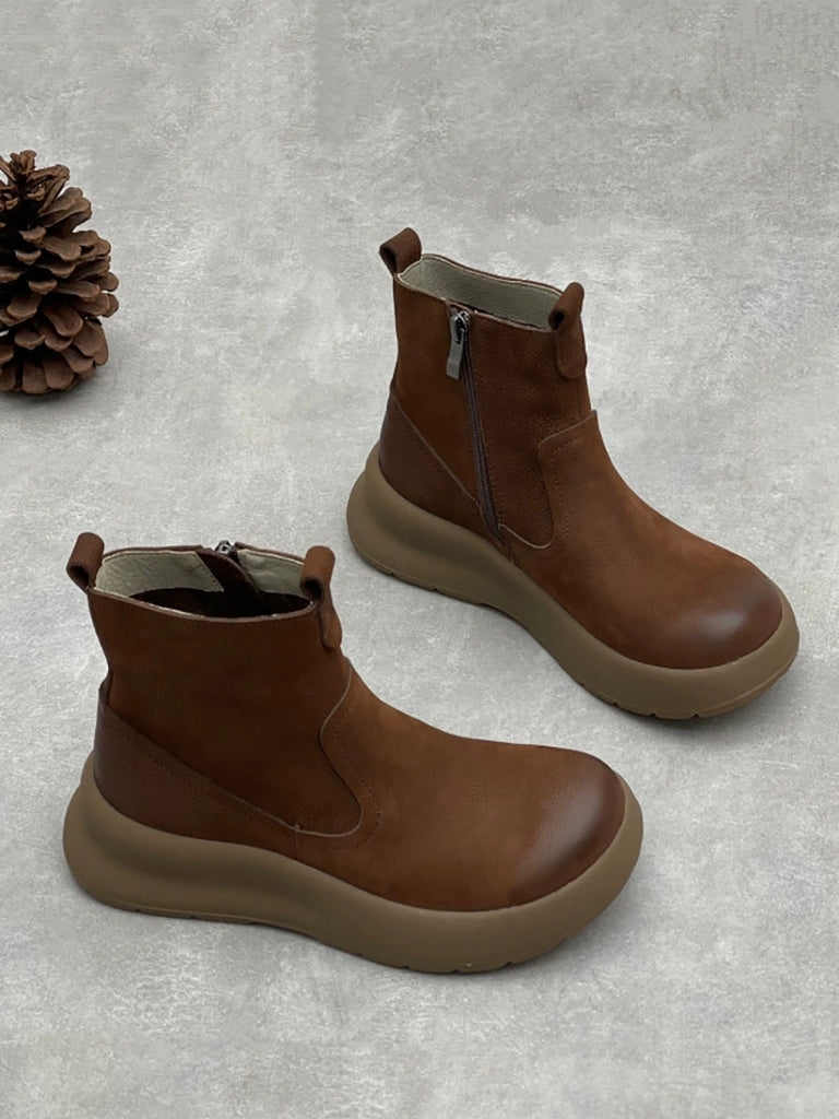 Women Causal Genuine Leather Spliced Ankle Boots