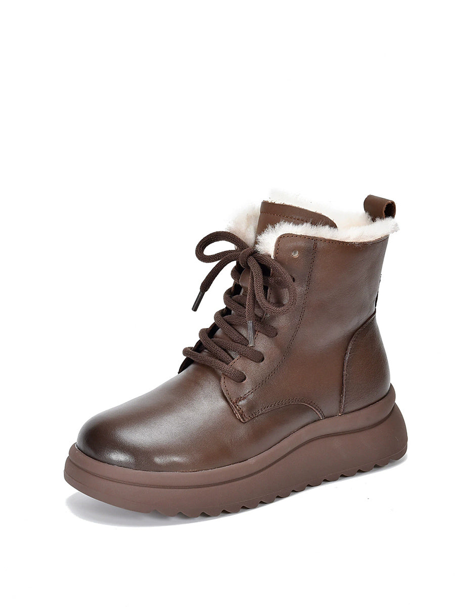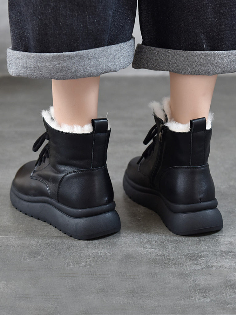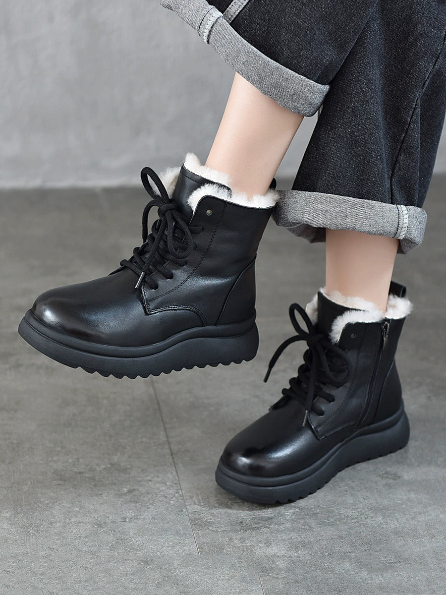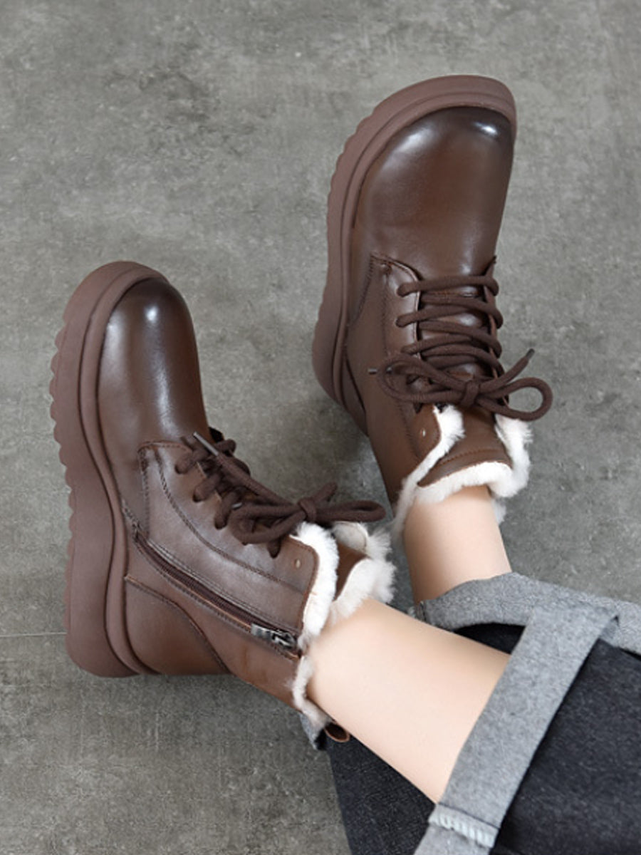 Women Winter Genuine Leather Fleece-lined Boots