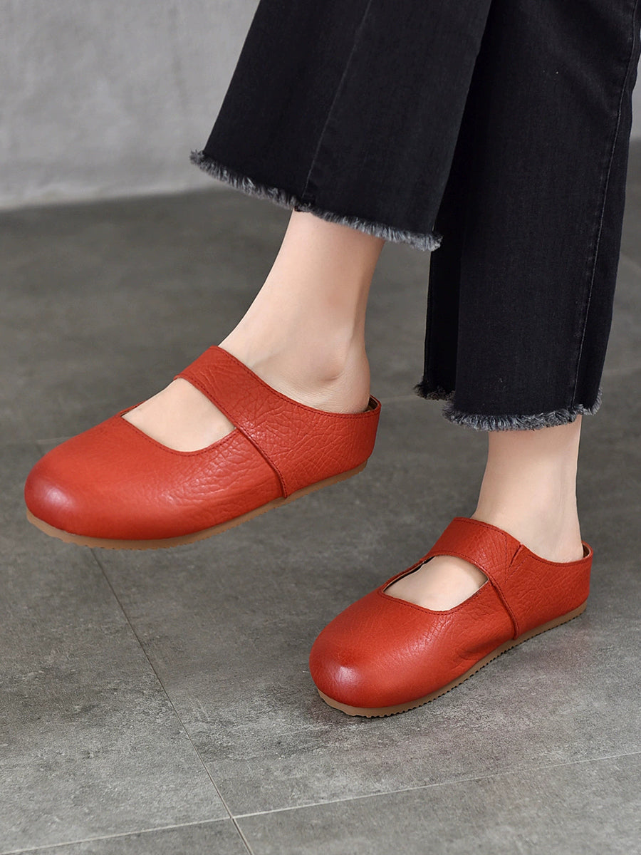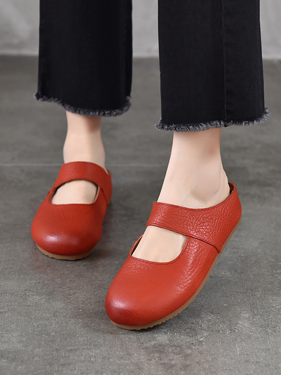 Women Summer Genuine Leather Flat Slippers