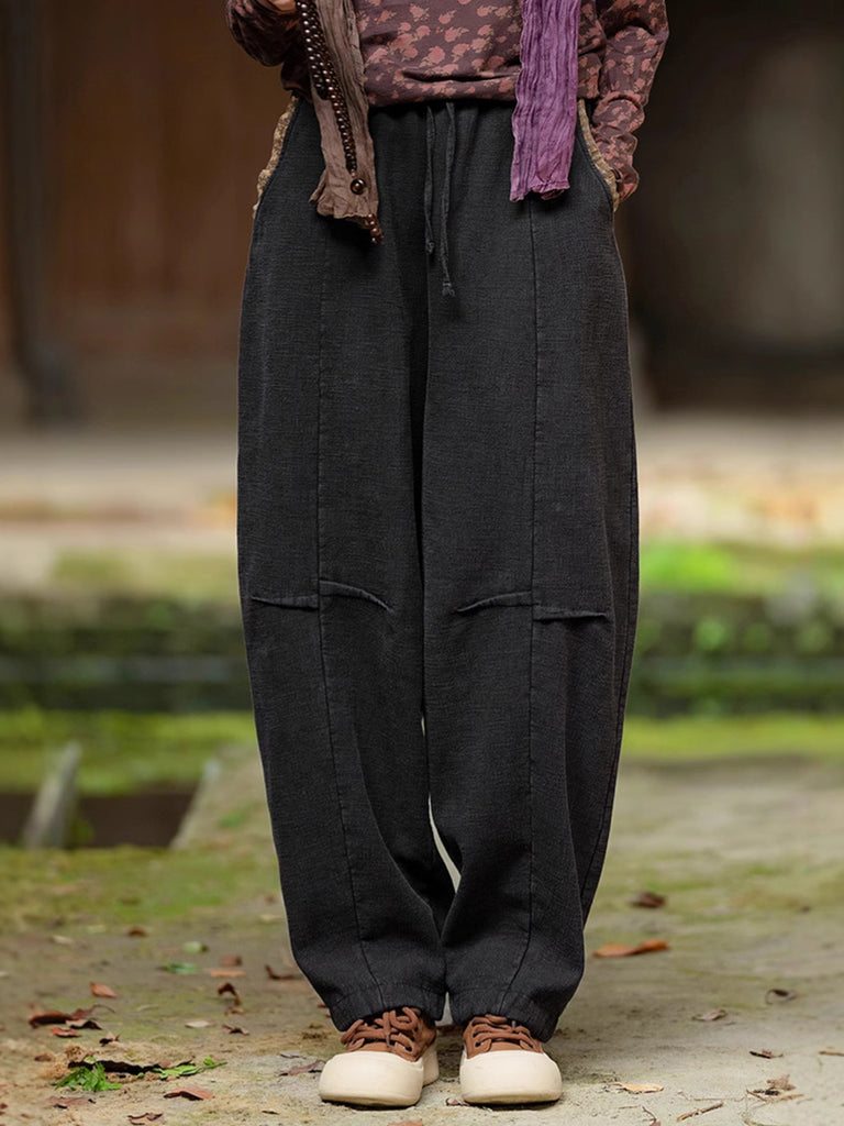 Plus Size Women Winter Retro Solid Spliced Padded Harem Pants
