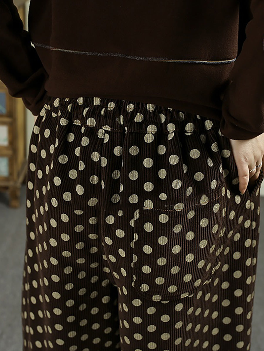 Women Winter Dot Corduroy Fleece-lined Harem Pants