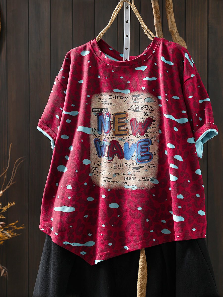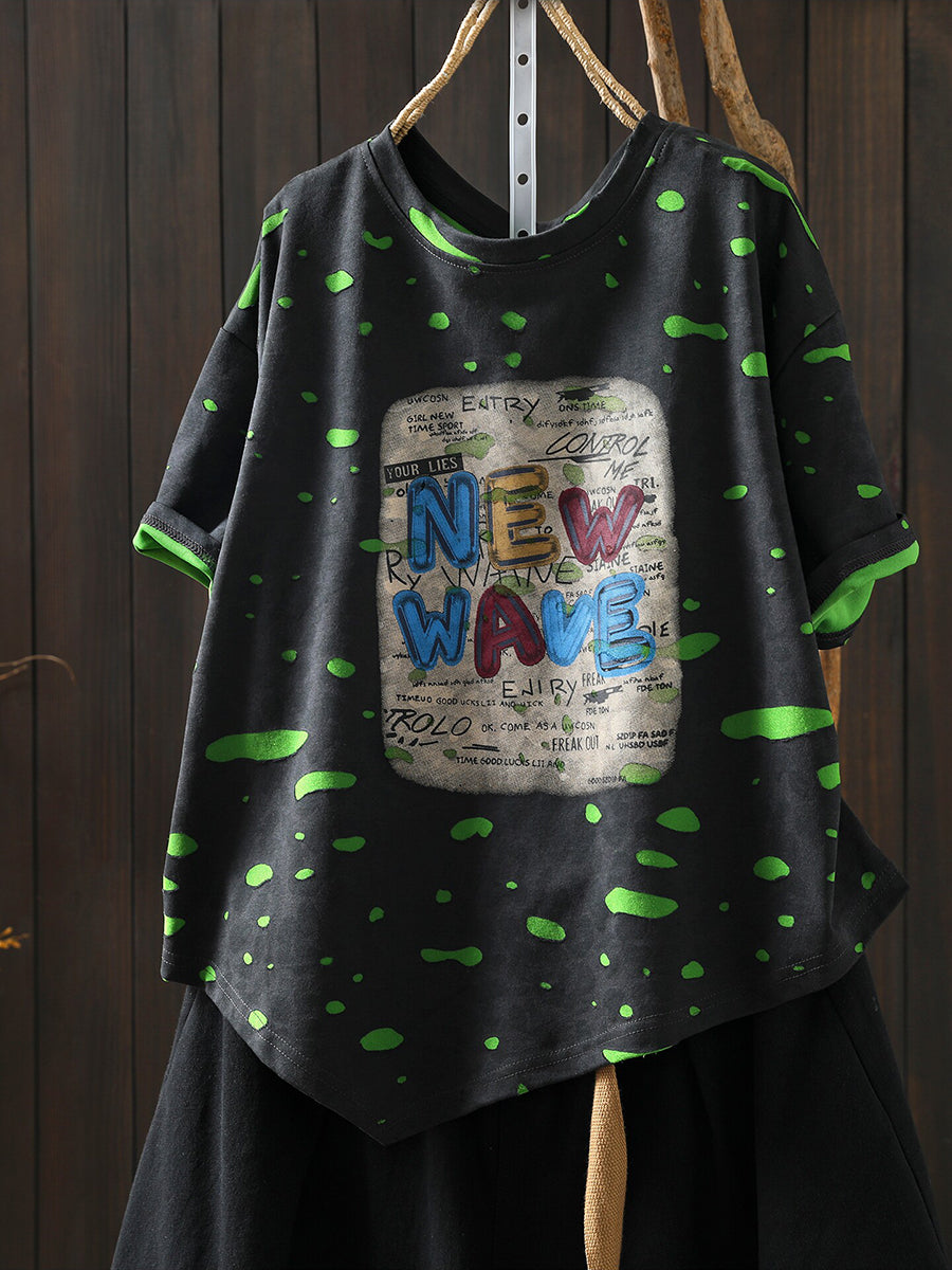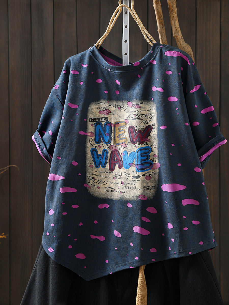 Women Summer Artsy Print Cotton T-Shirt