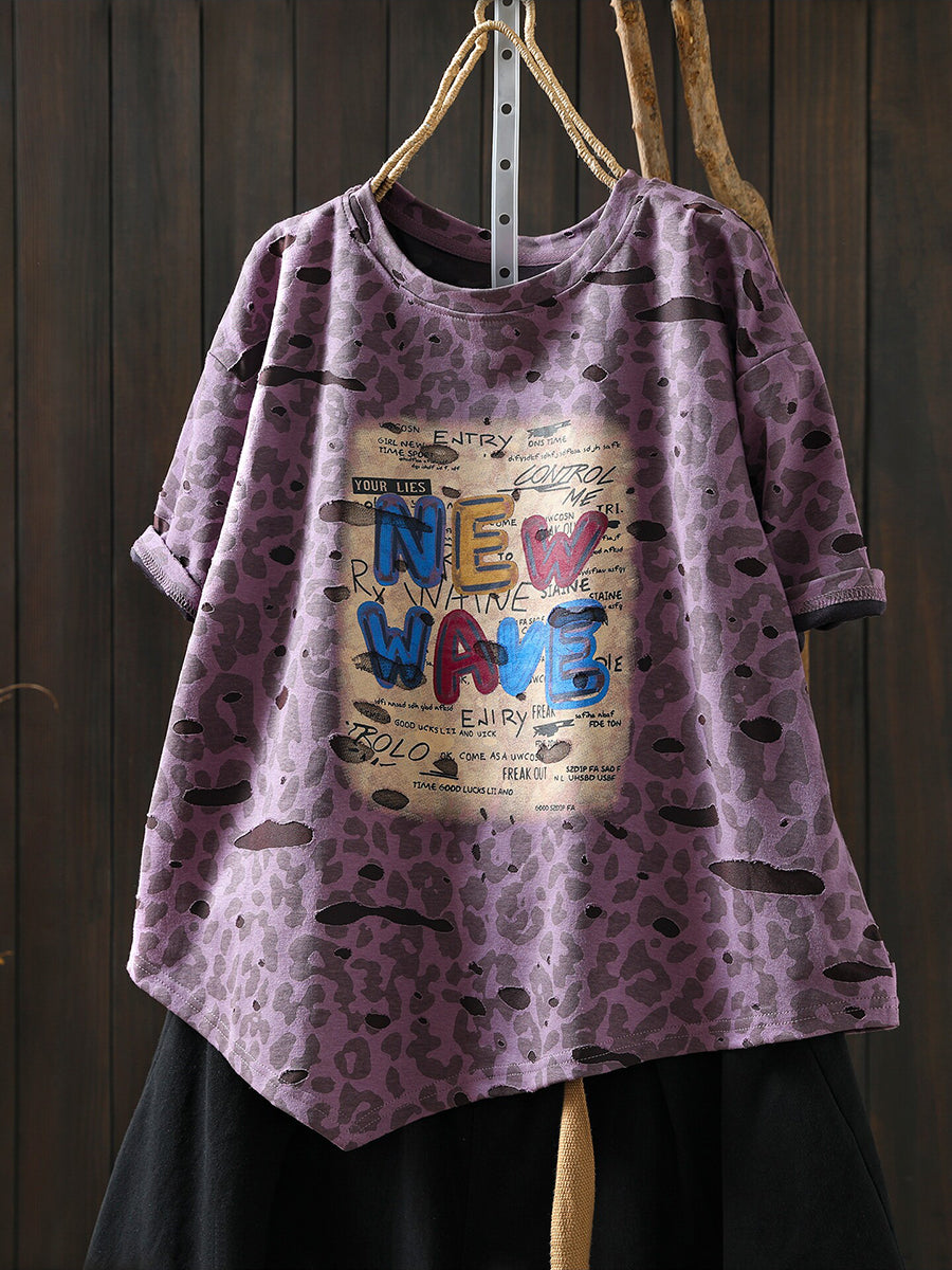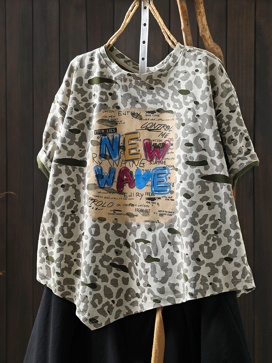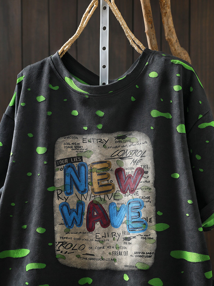 Women Summer Artsy Print Cotton T-Shirt