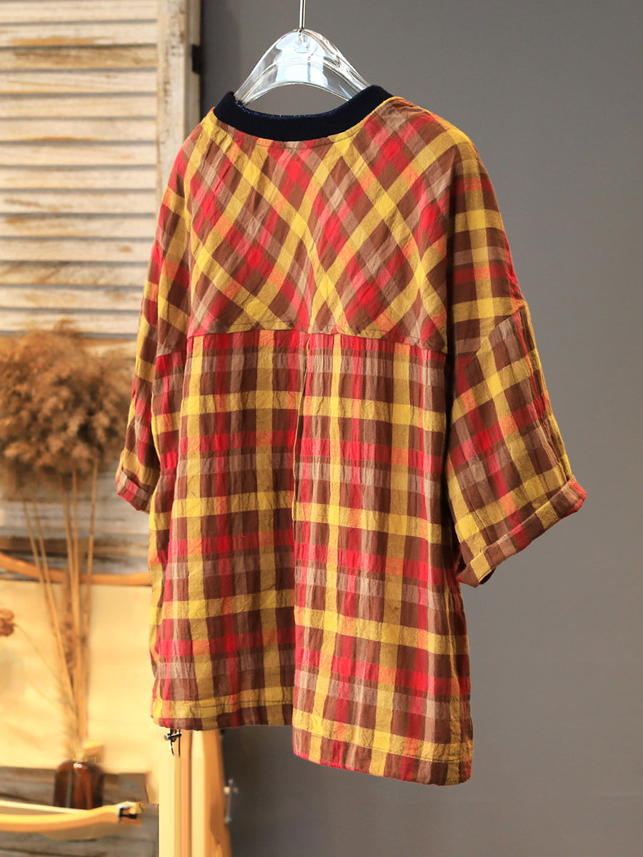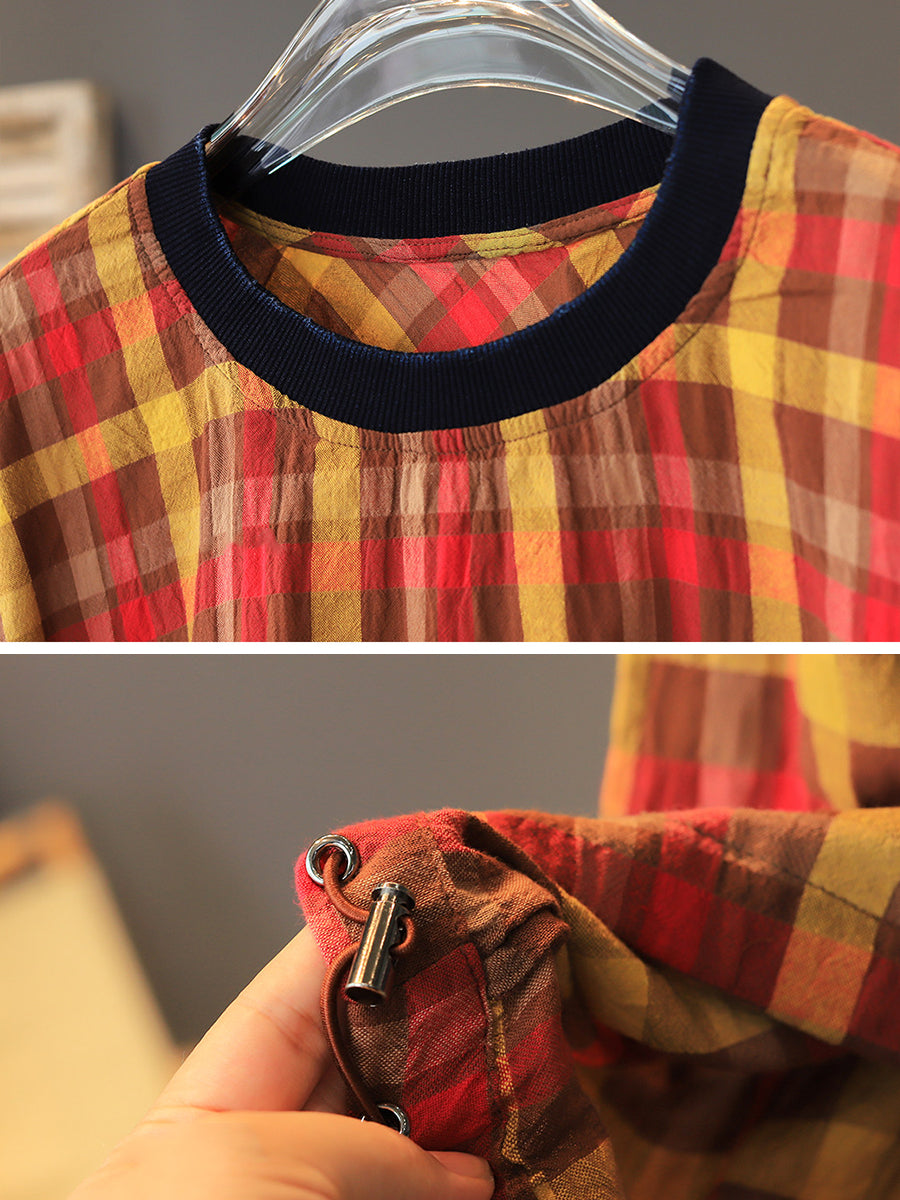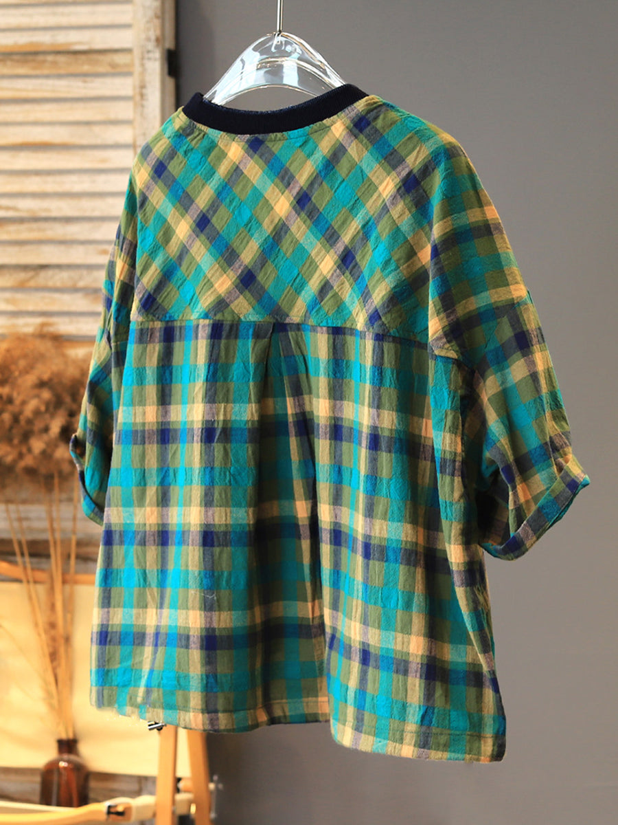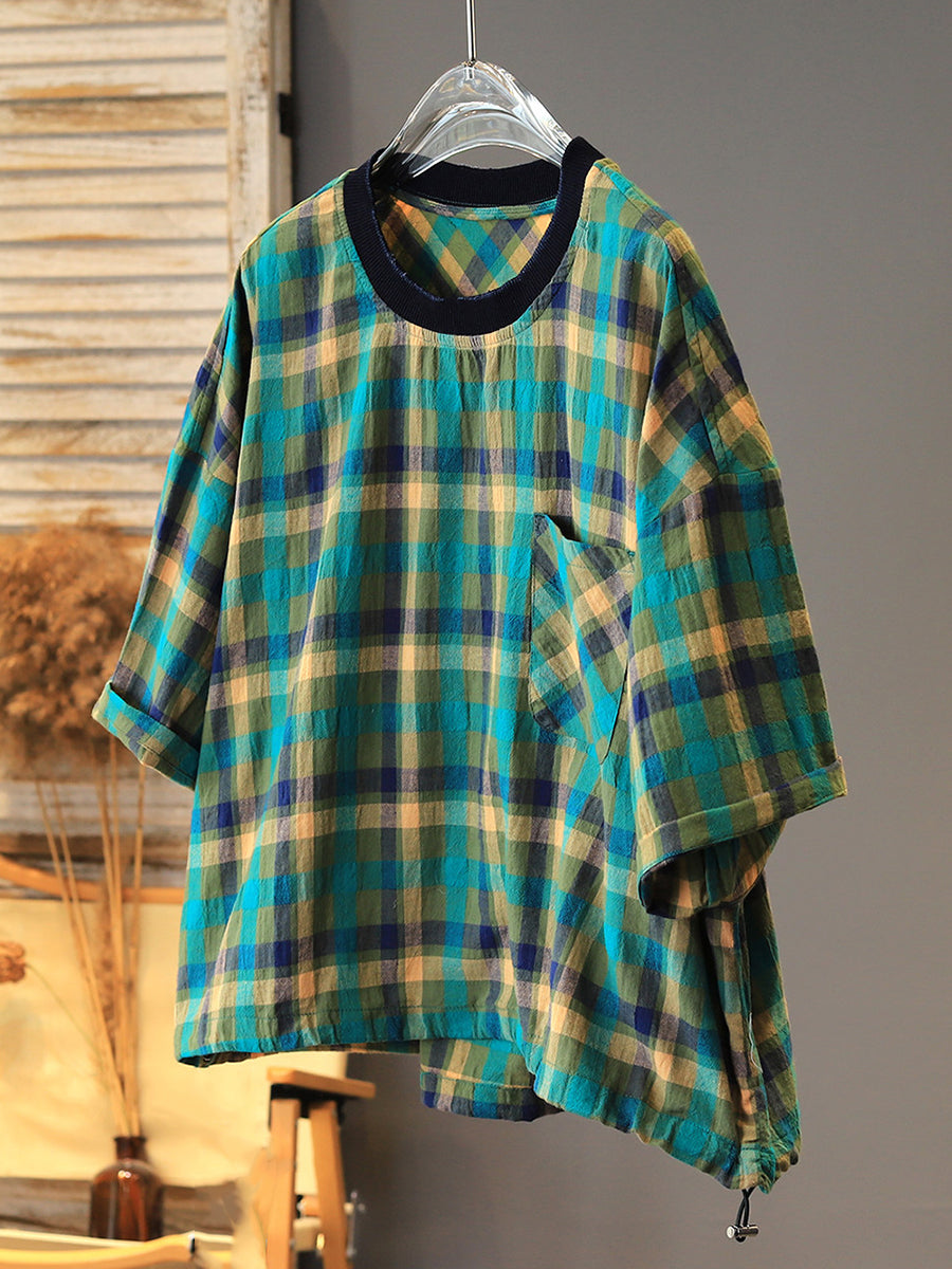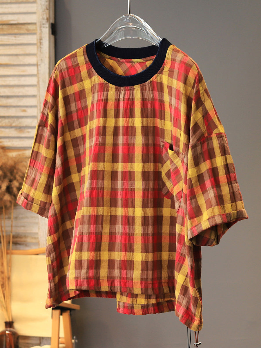 Women Summer Casual Plaid Cotton T-Shirt