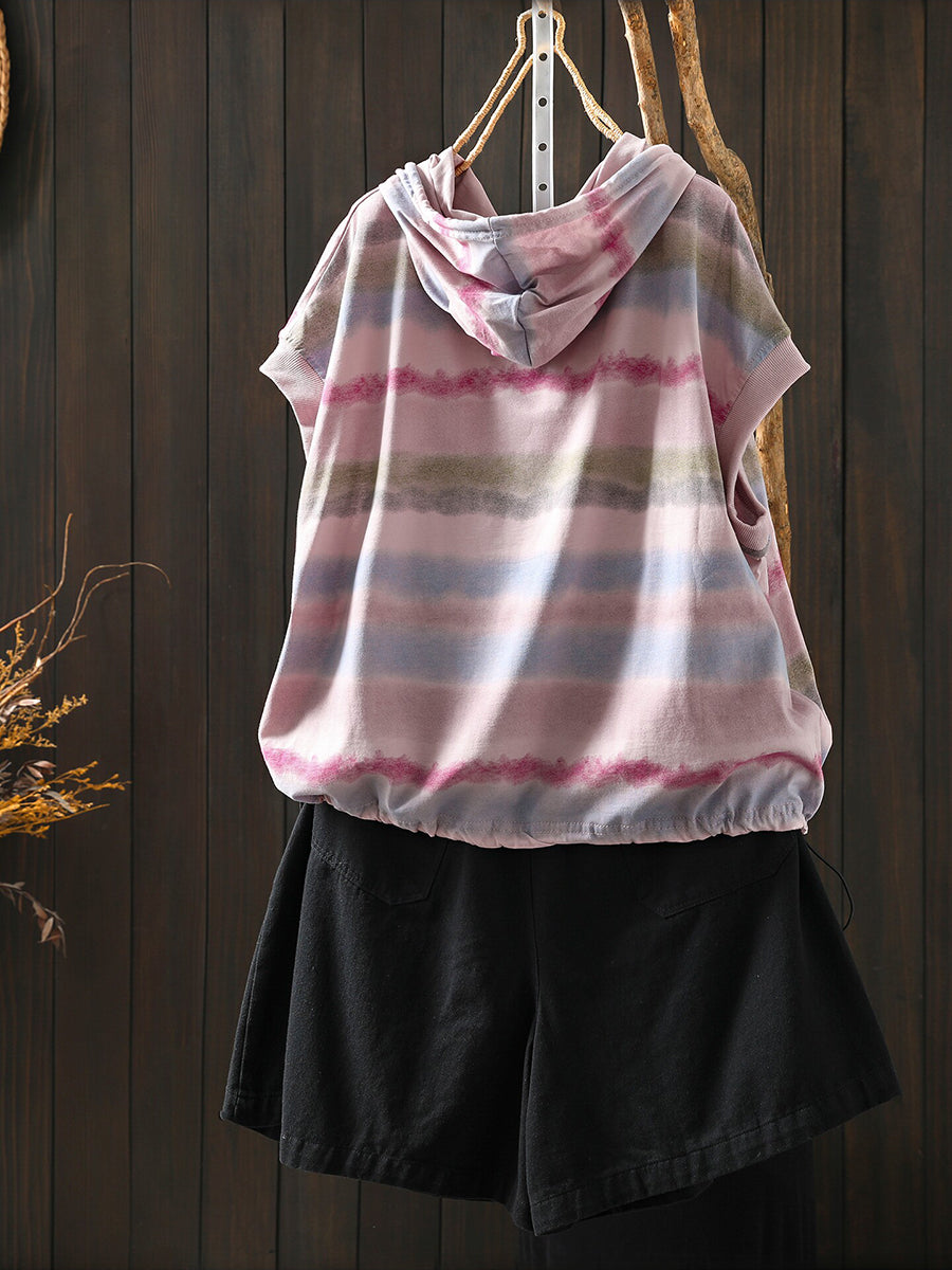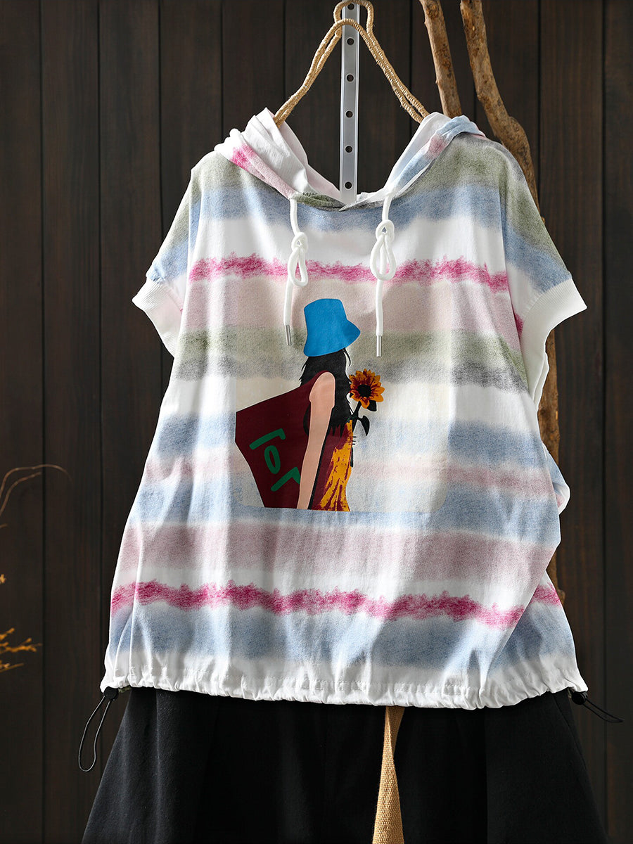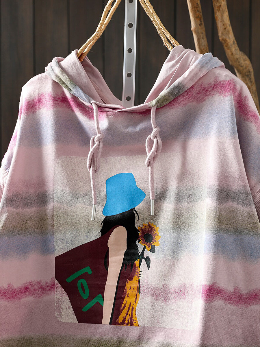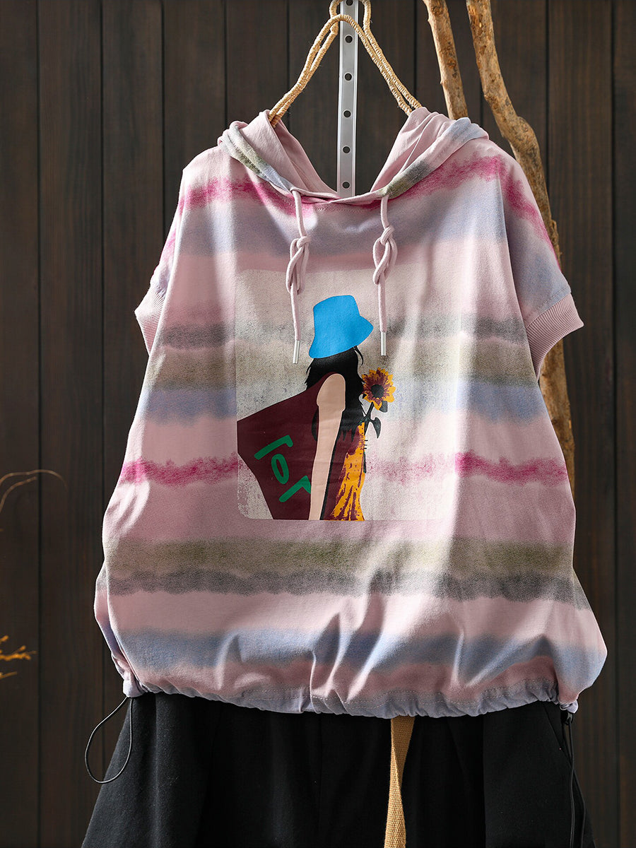 Women Summer Artsy Stripe Cotton Hoodie
