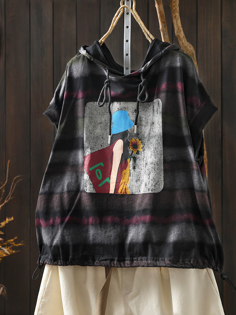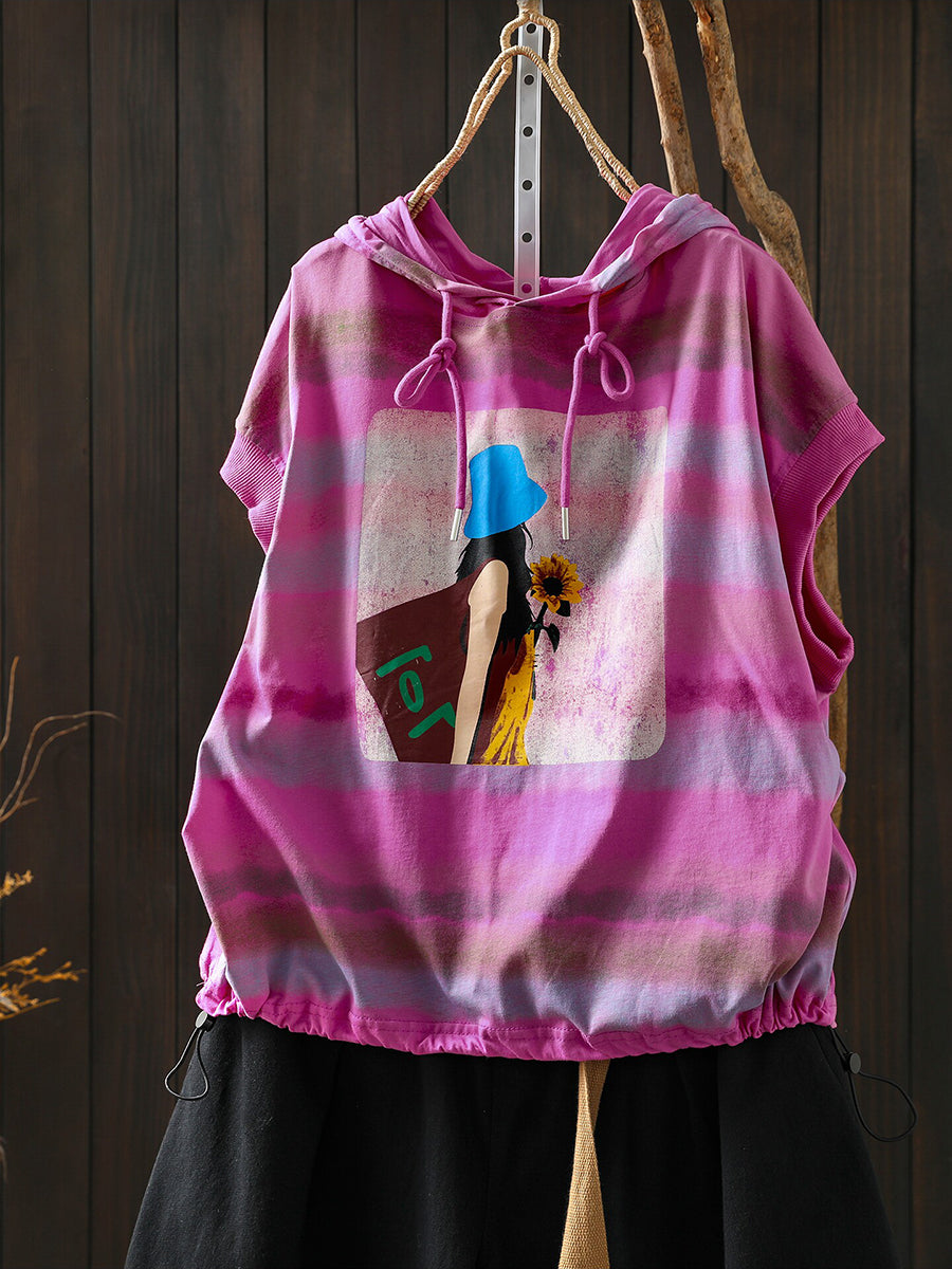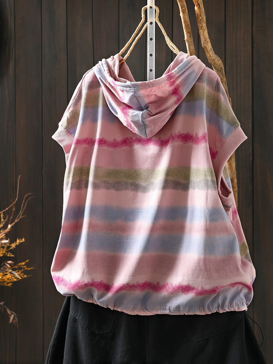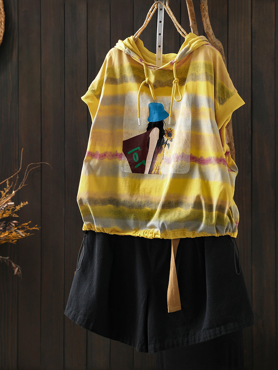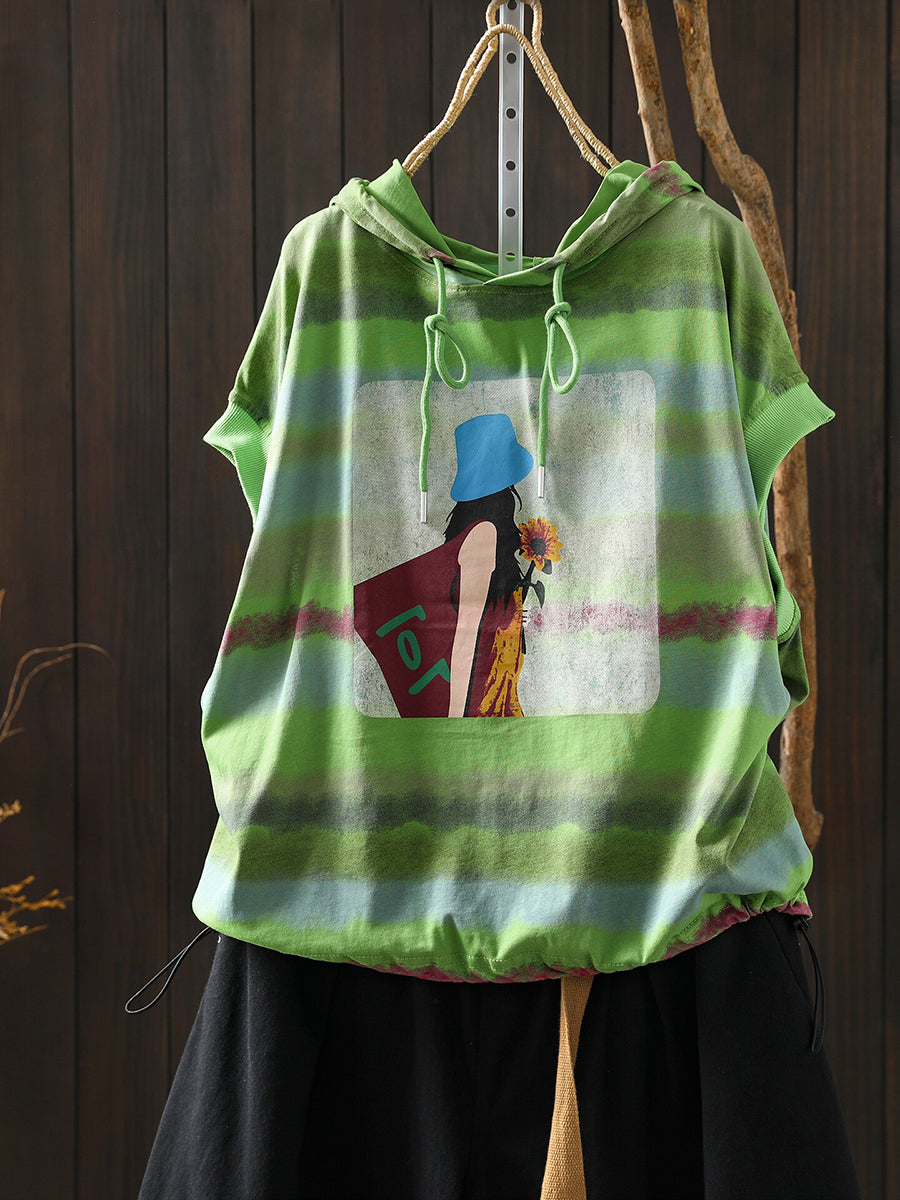 Women Summer Artsy Stripe Cotton Hoodie