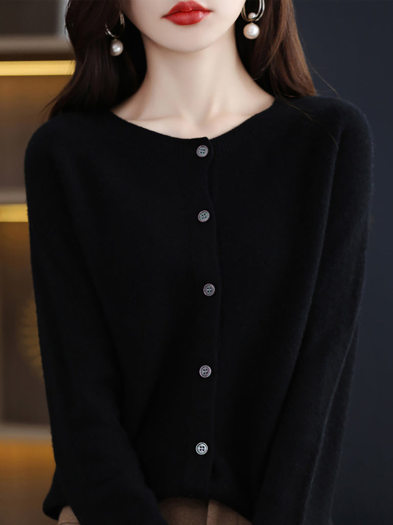 Women Autumn Wool O-Neck Cardigan Knit Sweater